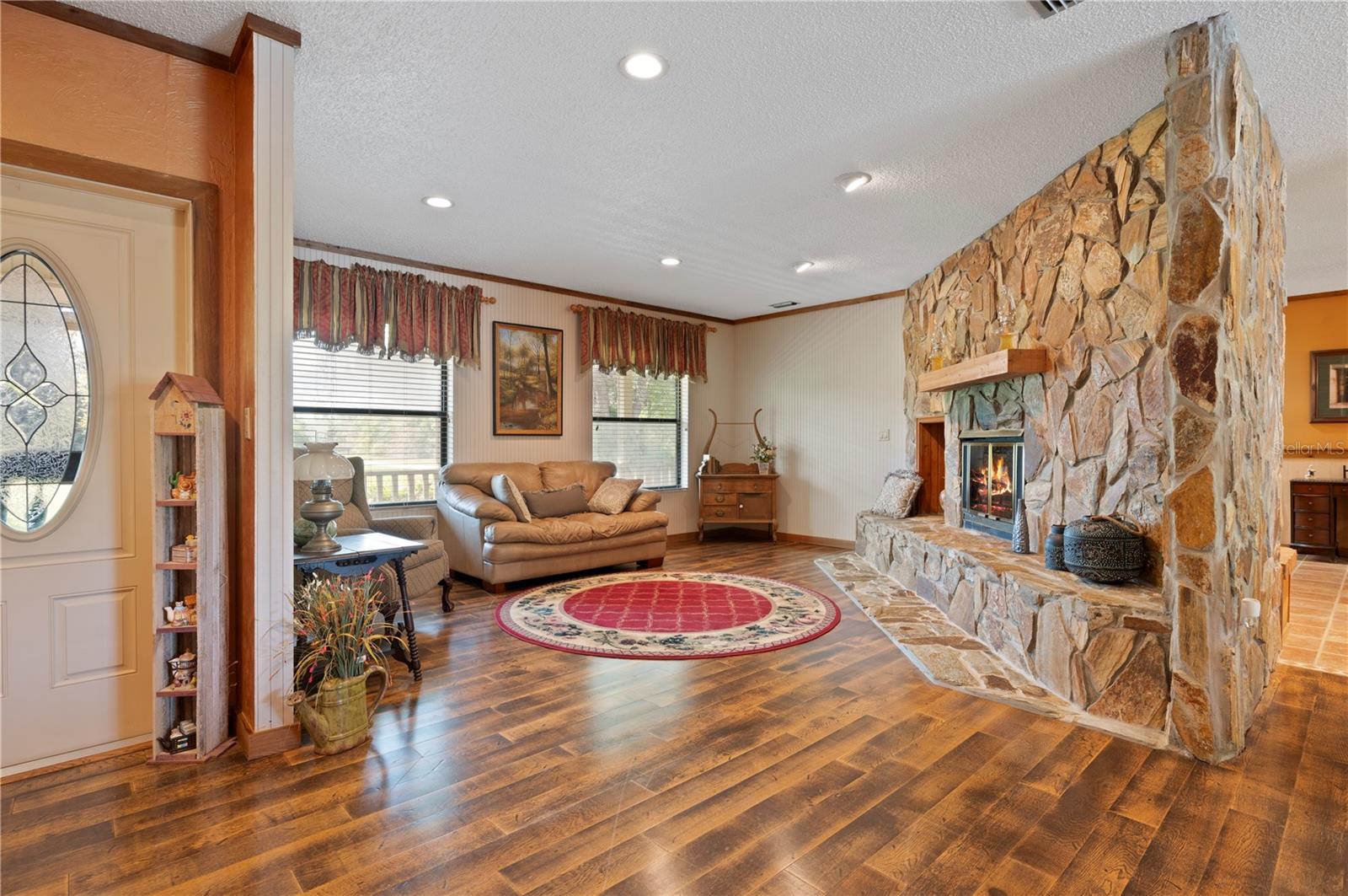 Esta propriedade não oferece apenas uma casa; Apresenta um estilo de vida. Esta impressionante casa de campo personalizada apresenta entrada fechada em 2,58 acres. This Home presents 5 Bedrooms, 3 1/2 Baths, Welcoming Covered Front Porch directs you to the Double Door Entry which opens into the Foyer, Formal Living with Double sided Wood Burning Fireplace, Formal Dining Room with French Doors leading to the Screened Lanai and Pool Area, Handsome Family Room, Spacious Kitchen featuring the Double Sided Fireplace with Seating, Glass front upper Cabinets, enjoy the Center Cook Island with Gas Cooktop, Built in Oven and Microwave, Bancadas de granito, bar de café da manhã e recanto de café da manhã, suíte primária espaçosa com vaidades duplas, banheira de imersão, grande no chuveiro com acesso à área da piscina. Há um escritório em casa/sala de artesanato separado com acesso à varanda da frente, deck de tijolos na Lanai coberta de grandes dimensões com cozinha de verão, com vista para a piscina, desfrute de uma família e amigos divertidos neste espaço ao ar livre. Garagem de 2 carros anexada com entrada lateral, dentro da lavanderia com pia de utilidade. O quintal possui uma passarela de pedra e fogo, dependência com teto de metal oferece estacionamento e oficina cobertos, além de uma conexão de 30 ampadelagem e 50 amp. Os jardins são lindamente paisagísticos, com carvalhos graciosos e você terá acesso de Bermont e acesso adicional à parte traseira da propriedade da Happy Hollow Road. A casa tinha um novo telhado a partir de junho de 2023 e a propriedade fica na zona de inundação X. Você estará a uma curta distância de carro de praias locais, ótimos refeições, compras, tênis, pickleball e campos de golfe tornam essa propriedade ideal para apreciar o estilo de vida da Flórida. Além disso, fácil acesso a parques públicos com trilhas para bicicletas e caminhadas e rampas de barcos, fornecendo acesso a muitas hidrovias, como os rios Paz e Myakka, o lindo porto de Charlotte e o Golfo do México. Acesso rápido à I-75 da I-75 com Sarasota e Tampa ao norte e Fort Myers e Nápoles ao sul. Esta é a casa do país que você esperou, convidamos você a fazer um passeio e fazê -lo.