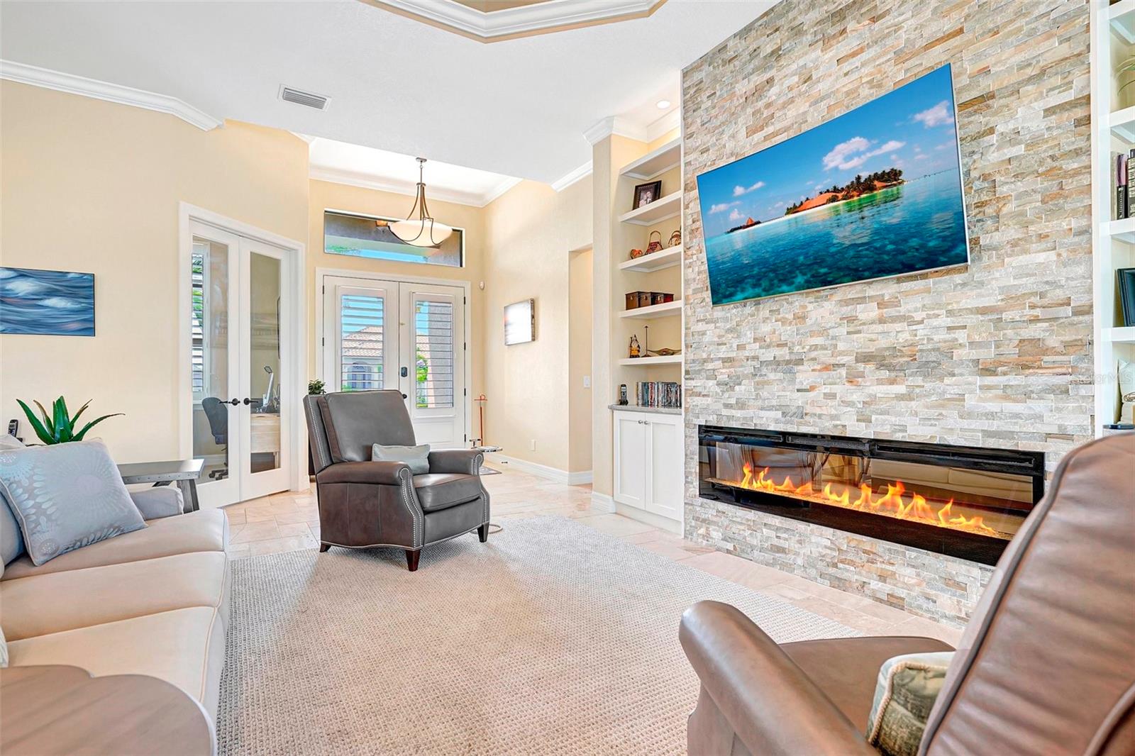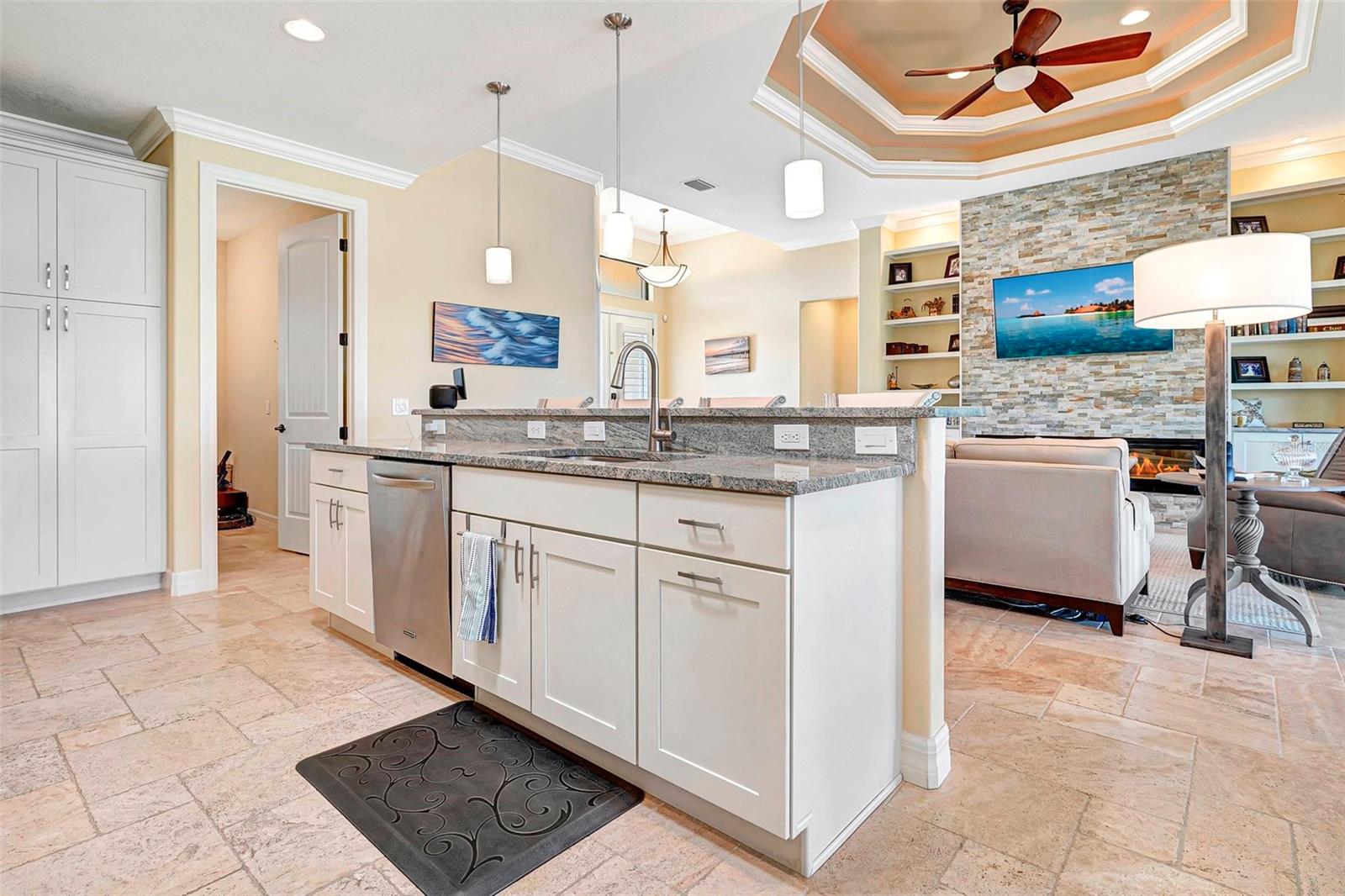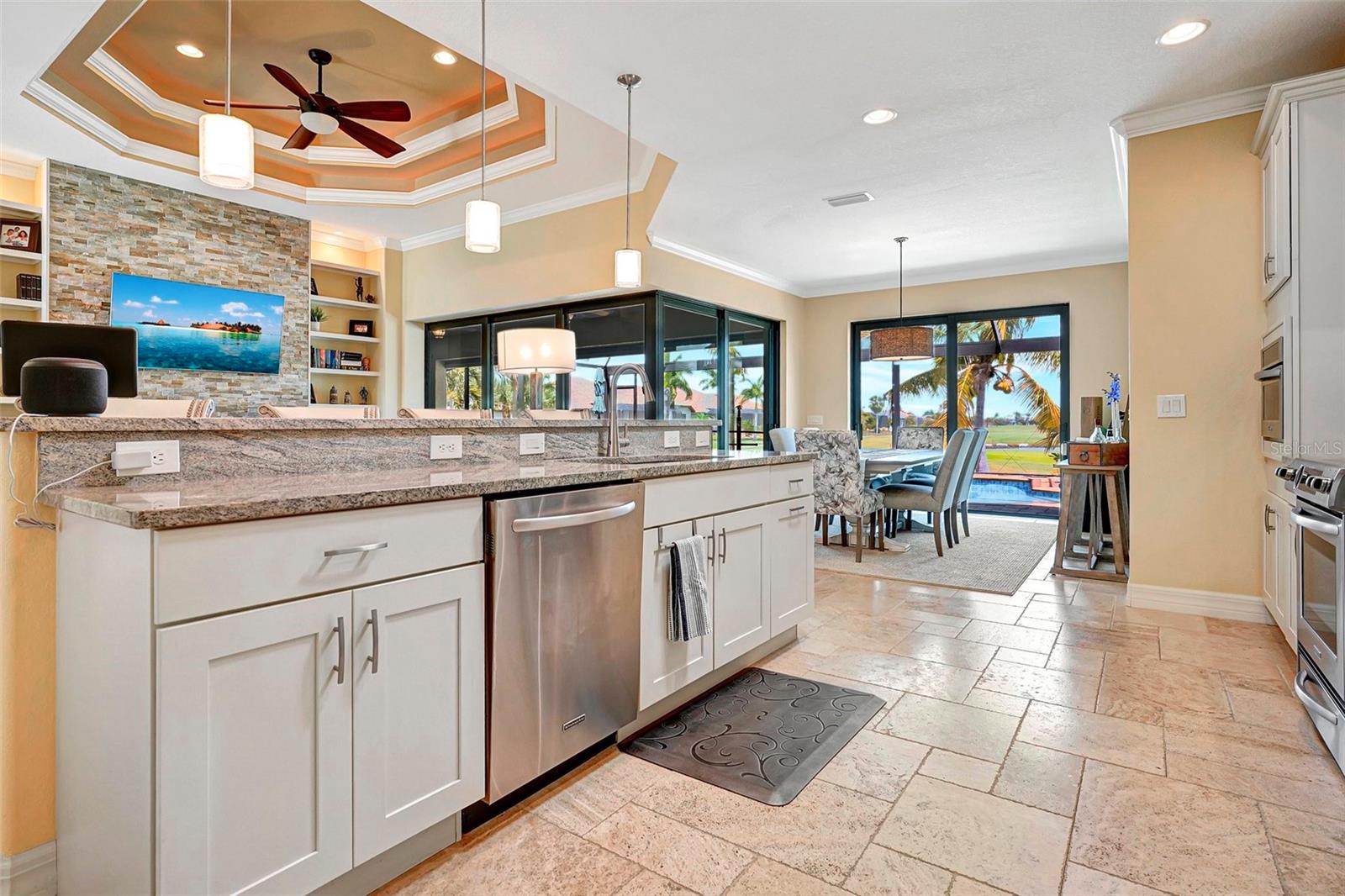 *** Redução de preços *** Agora é a hora de fazer com que esta casa personalizada de bom gosto no St. Andrews seja o seu próprio! Apresentando tetos de bandeja dupla com iluminação ambiente, portas de bolso de borda zero, molduras de coroa personalizadas, detalhes em clarabóias tubulares, piso de ladrilhos com arestas de travertino, detalhes em clarabóias tubulares, persianas de plantações. A planta é aberta e espaçosa, tornando esta casa perfeita para entretenimento. A cozinha aberta possui armários de madeira personalizados, balcão de granito e atualizações de aparelhos de aço inoxidável, com vista para a grande sala com uma unidade de parede de pedra cinzelada embutida e lareira projetada contemporânea como ponto focal. Aproveite a lanai espaçosa enquanto prepara uma refeição deliciosa na sua cozinha ao ar livre. Relaxe na piscina no estilo spa e lagoa com seu sistema de iluminação ambiente com o cenário do campo de golfe. A/C substituído no final de 2023.