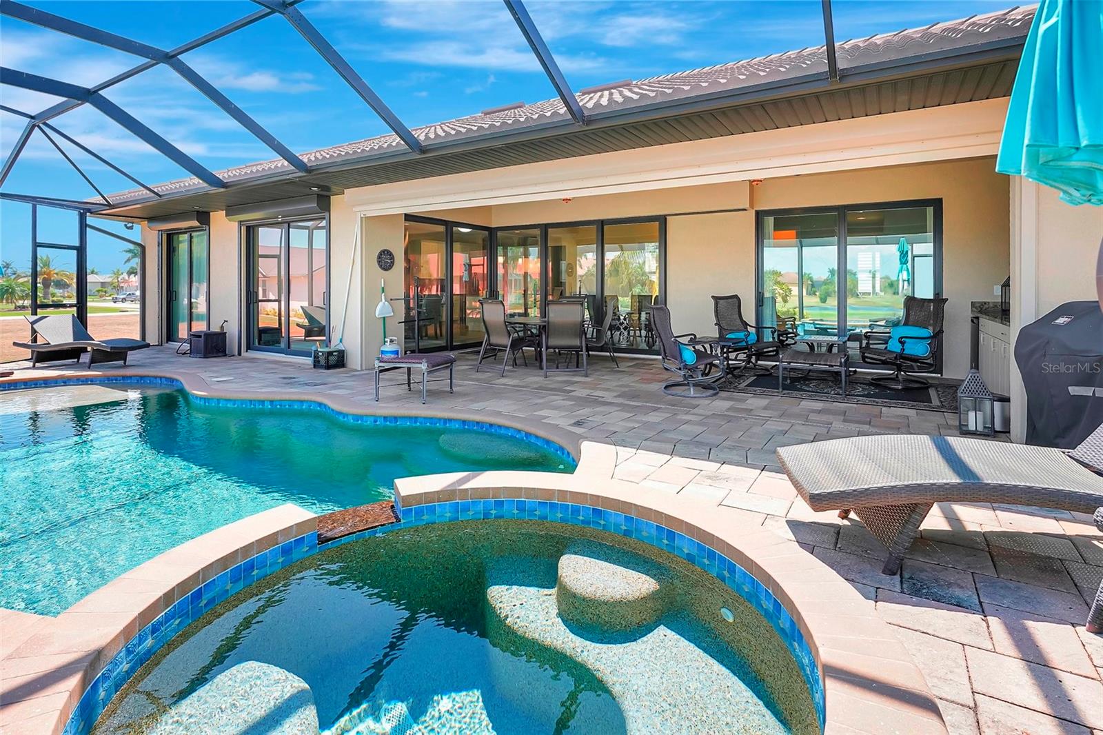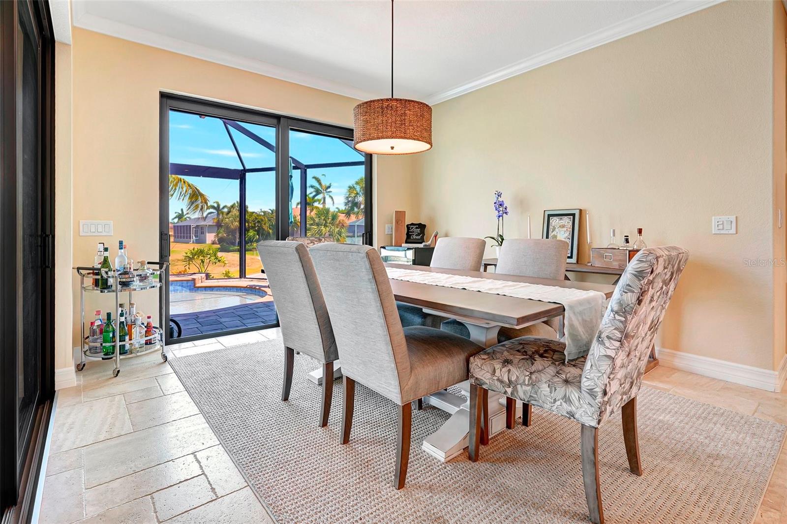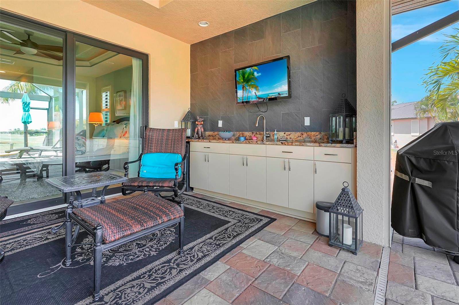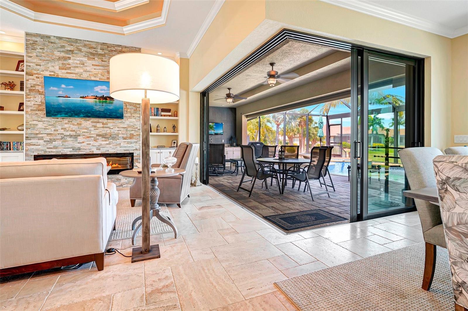 *** Redução de preços *** Agora é a hora de fazer com que esta casa personalizada de bom gosto no St. Andrews seja o seu próprio! Apresentando tetos de bandeja dupla com iluminação ambiente, portas de bolso de borda zero, molduras de coroa personalizadas, detalhes em clarabóias tubulares, piso de ladrilhos com arestas de travertino, detalhes em clarabóias tubulares, persianas de plantações. A planta é aberta e espaçosa, tornando esta casa perfeita para entretenimento. A cozinha aberta possui armários de madeira personalizados, balcão de granito e atualizações de aparelhos de aço inoxidável, com vista para a grande sala com uma unidade de parede de pedra cinzelada embutida e lareira projetada contemporânea como ponto focal. Aproveite a lanai espaçosa enquanto prepara uma refeição deliciosa na sua cozinha ao ar livre. Relaxe na piscina no estilo spa e lagoa com seu sistema de iluminação ambiente com o cenário do campo de golfe. A/C substituído no final de 2023.