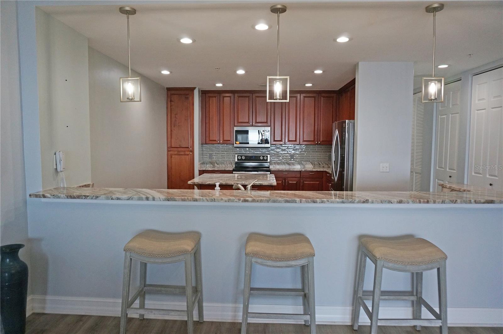 Vistas de haror fabulosas! Impressionante unidade de 3 quartos e 3 banheiros na desejável Comunidade fechada ao estilo resort de Vivante em Punta Gorda Isles. Um FOB permite que você ligue para o elevador que o leva ao quarto andar e se abre diretamente nesta bela unidade impressionante. Você entra no grande hall de entrada e continua na grande sala. Vistas incríveis do porto da grande sala, cozinha e quarto principal. Esta unidade leve e brilhante tem uma verdadeira planta aberta e dividida do quarto, com grande sala, cozinha bem decorada, lanai exibido, dentro da roupa. A espaçosa sala grande se abre para a cozinha, tem uma grande área de jantar, tetos altos e portas de vidro deslizantes que levam ao Lanai. A cozinha possui lindos balcões de granito, backsplash de ladrilhos, armários de madeira com puxadores, barra de café da manhã, ilha com armazenamento adicional, geladeira inoxidável, forno/alcance, lava -louças, microondas embutidas. A cozinha foi atualizada em 2021. Passos da cozinha são um armário com uma peça de mobiliário de bar seco. A lavanderia interna oferece uma lavadora, secadora, prateleiras e pia com gabinete. A suíte do quarto principal é o seu oásis privado com vistas para a água, acesso à lanchonete, teto da bandeja, dois armários e banheiro privativo com pias duplas, balcões de granito, armários de madeira, banheira de jardim jato e chuveiro. Os banheiros de hóspedes e dois banheiros adicionais estão do lado oposto da unidade, oferecendo privacidade para você e seus convidados. Ambos os quartos são de tamanho generoso, têm armários. Um quarto tem uma cama Murphy e banheiro privativo com vaidade de madeira, balcões de granito e combinação de banheira/chuveiro. O terceiro quarto também tem um closet e o banheiro do Hall tem uma vaidade de madeira, balcões de granito e combinação de banheira/ chuveiro. Seu espaço de vida se estende através da grande sala até a Lanai 17x15 com vistas expansivas. Esta unidade possui um espaço de estacionamento atribuído ao prédio e espaço de armazenamento. Os utilitários são água da cidade e esgoto. Outras características incluem prateleiras de madeira em todos os armários, vidro de impacto, piso de tábua de vinil de luxo na grande sala, cozinha e quarto principal, azulejos nos banheiros e carpete nos quartos de hóspedes. As atualizações em 2021-2022 incluem o piso LVP e o tapete, persianas de plantações nos quartos, várias novas luminárias, A/C, nova tinta interior, ótimo espaço no armário. Community amenities at Vivante include TWO heated pools (one is a 2 lane lap pool) and the other is a resort style infinity edge pool), 6 har tru tennis courts, cabana with grills and a 12,000 SF upscale two floor clubhouse with state of the art fitness center, media room, cyber lounge, billiard room, game/car and craft rooms, steam room, sauna, spa services for manicures, pedicures, massages E mais, o clube com bar para entretenimento, calçadas e trilhas para caminhada de tijolos pavimentados, muitas atividades e muito mais! Os edifícios são belos estilo mediterrâneo e os terrenos têm paisagismo tropical exuberante. Caminhe até o Ponce de Leon Park e apenas alguns minutos até a aldeia dos pescadores, o golfe e o histórico centro de Punta Gorda, restaurantes, cuidados médicos, parques à beira -mar, pilares de pesca, rampas de barcos, caminhadas e caminhadas, galerias de arte, eventos e muito mais. Este é o estilo de vida da Flórida no seu melhor!