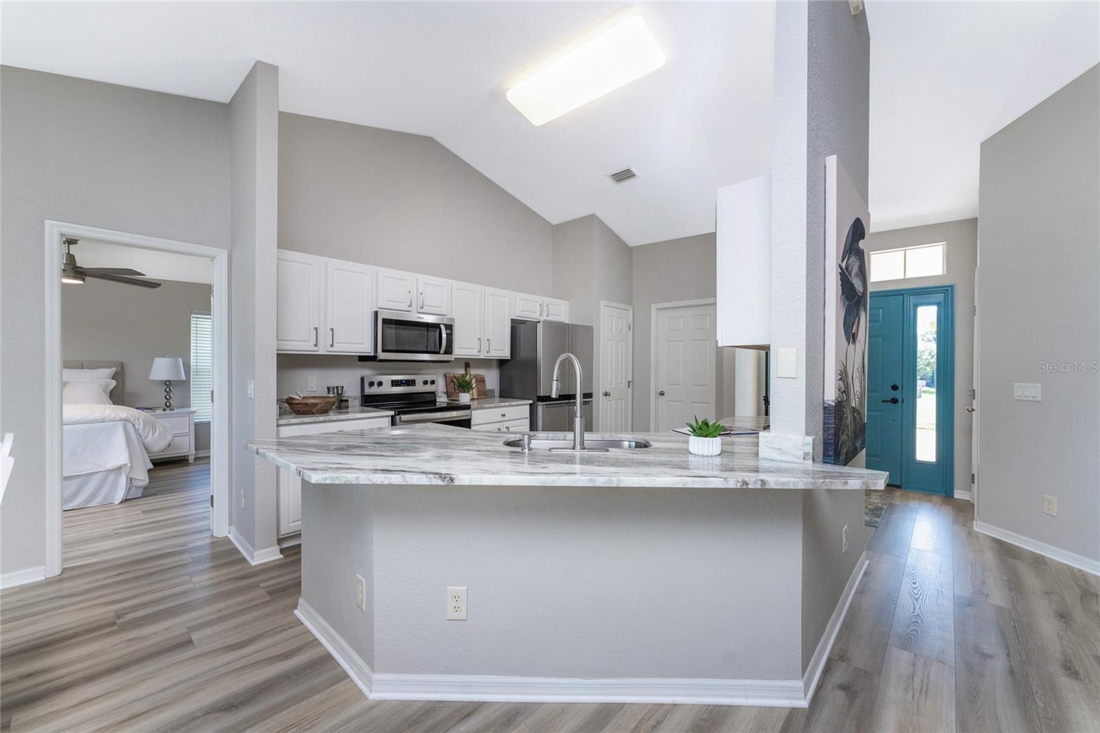 Lindamente renovado e uma linda casa de mão! É certo- basta trazer sua mala e começar a viver o sonho !! Este movimento em casa pronta possui uma planta baixa com 4 quartos e 2 banheiros e uma garagem de 2 carros. Novo piso de prancha de vinil de luxo de 20 mil por toda parte, novos aparelhos de aço inoxidável, belas bancadas em granito na cozinha e banheiros, uma nova iluminação e um interior recém-pintado. Não há projetos para fazer aqui !! Existem 2 TVs (uma na sala de estar e 1 no quarto principal) com cabo e internet, tudo configurado e funcionando. A casa está pronta para uso como Airbnb, VRBO ou para profissionais de viagem. O telhado de telha arquitetônica foi substituída em 2022 e o AC foi substituído em 2020. A comunidade Deep Creek em Punta Gorda está localizada perto da I-75, onde Myers e Sarasota estão a apenas 45 minutos! As praias de Englewood e Venice estão a apenas 30 minutos. A casa "não está" localizada em uma zona de inundação. Os utilitários são esgoto público e água da cidade. Ligue para sua consulta para ver esta casa única hoje !!