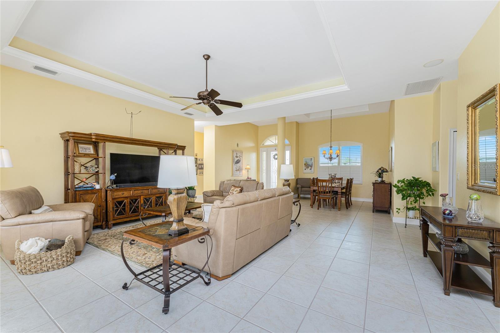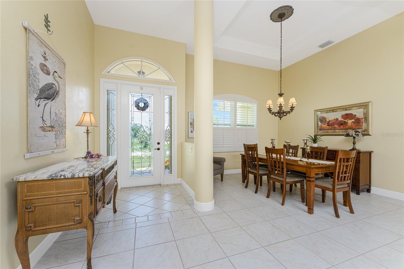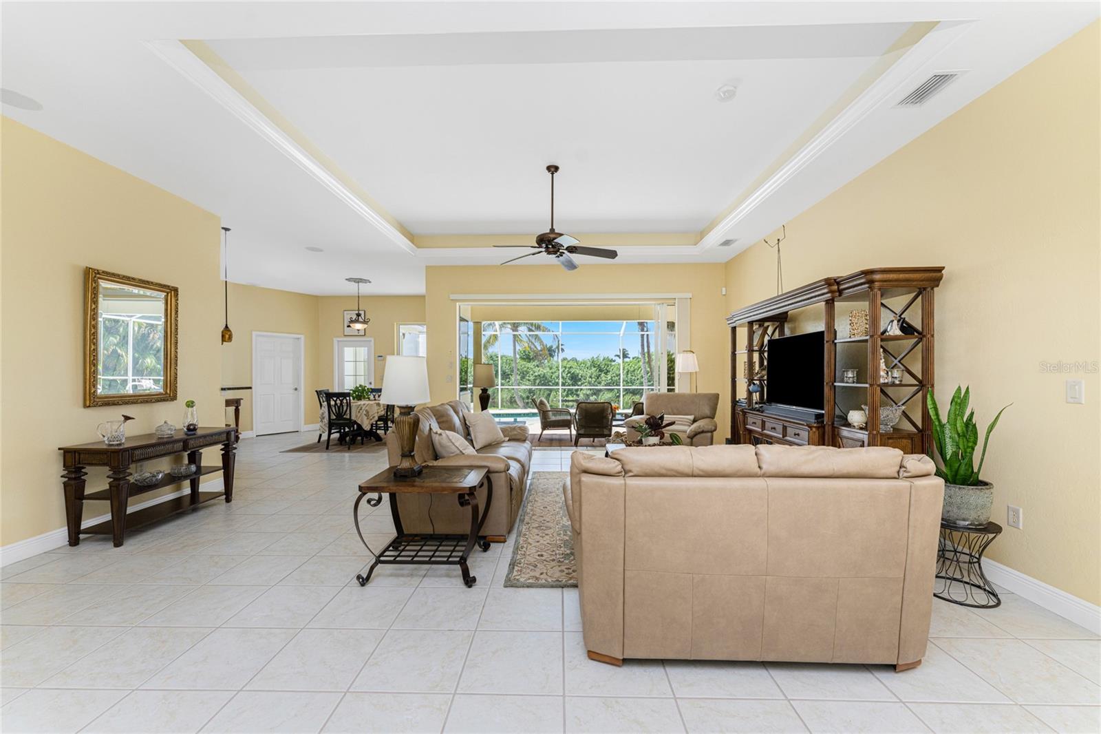Impressionante casa com piscina de 3 quartos e 2,5 banheiros com garagem anexa para 3 carros localizada no campo de golfe Twin Isles em uma desejável escritura restrita BURNT STORE ISLES. VISTAS parciais para o CAMPO DE GOLFE do terceiro lago verde e grande do campo de golfe na parte traseira da casa. Vista do 10º fairway da frente da casa. Esta casa iluminada e iluminada oferece uma planta de quarto aberta e dividida com hall de entrada, sala grande, sala de jantar separada, cozinha bem equipada e lavanderia interna. A espaçosa Sala Grande possui piso de cerâmica, teto alto e portas de vidro deslizantes para o Lanai. A Sala de Jantar tem teto alto, piso de cerâmica e grande janela com venezianas. A cozinha possui armários de madeira de altura escalonada com sancas, balcões de granito, balcão, despensa, torneira de água quente instantânea, bom balcão e armários. Os eletrodomésticos são de inox: micro-ondas embutido, forno embutido, cooktop com exaustor, geladeira francesa. A área de jantar tem vista para a piscina através do vidro do aquário e tem uma porta para a varanda. Há uma lavanderia interna com lavadora, secadora, tanque e armários. A espaçosa suíte Master possui teto falso, portas de vidro deslizantes para a varanda, DOIS closets e banheiro privativo com pias duplas, armários brancos, balcões de granito, banheira de hidromassagem e box amplo. Existem dois quartos de hóspedes adicionais de tamanho generoso. Um quarto tem armário duplo embutido, portas francesas para a varanda e lavabo, que também é banheiro de piscina. O outro quarto de hóspedes tem um armário duplo embutido e atualmente é usado como arrumos. O banheiro de hóspedes tem armários brancos, balcões de superfície sólida e box amplo. Seu espaço de convivência se estende até a Lanai com piscina aquecida de água salgada, área coberta e muito deck para banhos de sol. As árvores oferecem muita privacidade. Outras características incluem: janela de popa na porta da frente, venezianas, piso de cerâmica nas áreas de estar, carpete nos quartos, tetos altos, venezianas incluindo veneziana elétrica para a porta da frente, janelas de impacto na frente da casa, novo bomba de piscina. ***NOVO TELHADO DE TELHA 2021*** NOVO A/C 2020*** Alguns móveis são negociáveis - os proprietários fornecerão a lista. HOA é opcional. Os serviços públicos são esgoto urbano e água. *** SEM INUNDAÇÕES OU DANOS DE FURACÕES *** Esta casa fica a um quarteirão da entrada do Twin Isles Country Club e a 5 minutos do centro histórico de Punta Gorda, lojas, restaurantes, cuidados médicos, parques à beira-mar, rampas para barcos, cais de pesca, caminhadas e ciclovias, galerias de arte, mercados de agricultores de fim de semana, Centro de Eventos Charlotte Harbor, Vila dos Pescadores, eventos e muito mais! Esta bela casa é perfeita para entretenimento e é a casa dos seus sonhos na Flórida. Não perca esta casa excepcional em um condomínio fantástico.