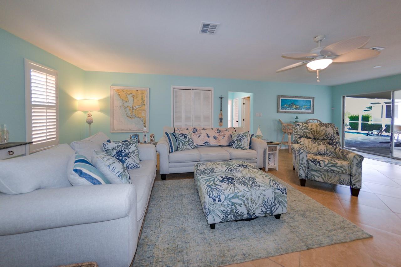 Bem-vindo ao seu pedaço do paraíso! Esta convidativa casa à beira-mar com 3 quartos e 2 banheiros é a combinação perfeita de conforto e charme costeiro. NOVO TELHADO instalado (2023). Entre e absorva a vibração descontraída. A luminosa sala de estar, com venezianas, flui facilmente para a área de jantar, completa com um controle deslizante de bolso que se abre para vistas deslumbrantes da piscina e do canal - perfeita para receber amigos e familiares! A cozinha está equipada com uma bancada para café da manhã e uma área de jantar bem iluminada. Há uma janela de passagem útil para a varanda, facilitando as refeições ao ar livre. Logo ao lado da cozinha, a espaçosa sala familiar é perfeita para reuniões, proporcionando amplo espaço para relaxamento e diversão. A suíte master é o seu refúgio privado. Você apreciará a grande porta deslizante de vidro que se abre para a varanda, ideal para saborear seu café da manhã enquanto aprecia a bela vista. O banheiro privativo possui pias duplas, vaso sanitário privativo, box amplo e armários duplos. A planta dividida garante privacidade aos seus convidados. Os quartos de hóspedes são espaçosos e oferecem ampla iluminação natural com grandes janelas e controle deslizante. O banheiro de hóspedes dispõe de banheira/chuveiro de hidromassagem e acesso direto à piscina. Do lado de fora, a piscina aquecida (instalada em 2022) é um oásis encantador, completa com uma proteção solar e muito espaço no deck para relaxar ou se divertir - tudo protegido para seu conforto. Desfrute de refeições ao ar livre na varanda coberta. Os entusiastas da náutica irão apreciar o cais privado com elevador de 7.000 libras (ambos instalados em 2021), completo com eletricidade e água. Um curto passeio de barco com acesso a um veleiro leva você ao porto de Charlotte e ao belo Golfo do México. Esta casa possui piso de cerâmica elegante, oferecendo durabilidade e fácil manutenção. Outras atualizações incluem novo aquecedor de água (2022), sistema de água Kinetico (2022), novo A/C (2021), novas janelas de impacto (2021). Esta casa está pronta para você aproveitar. Os proprietários podem ingressar na Burnt Store Isles Association opcional para obter vantagens adicionais da comunidade. Ótimo para conhecer novos amigos. Perto de rodovias, centro histórico de Punta Gorda, Vila dos Pescadores, Sunseeker Resort, restaurantes, lojas, campos de golfe, trilhas para bicicletas e caminhadas, parques à beira-mar com quadras de pickleball e tênis, cais de pesca e muito mais. Não perca esta joia costeira – agende sua exibição hoje e comece a viver o estilo de vida à beira-mar que você sempre sonhou!