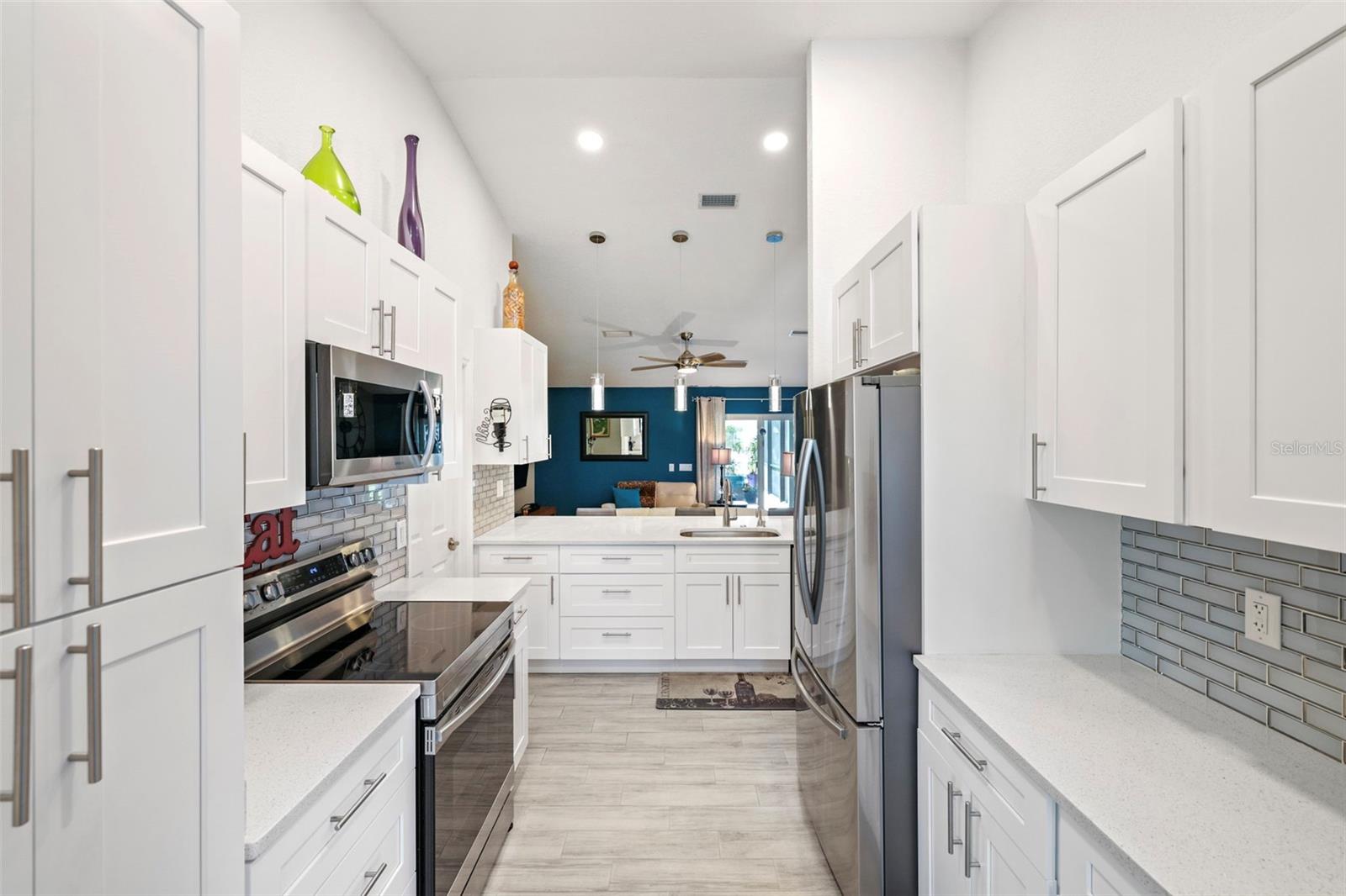 Esta impressionante casa de piscina de dois quartos de 4 quartos é lindamente remodelada por dentro e por fora. Descubra o charme desta residência atualizada profissionalmente na estimada comunidade de golfe Deep Creek. Sentado em um beco mole de grandes dimensões, você desfrutará de um novo paisagismo tropical, exterior bem pintado e apelo ao meio-fio convidativo. Interior brilhante e espaçoso. Desfrute da luz natural que flui através do interior recém -pintado, complementado pelo piso de tábua de tábuas de madeira falsa de luxo e tetos dramáticos abobadados. A planta aberta aumenta a sensação de espaço e luxo. Cozinha gourmet: O coração da casa é uma cozinha completamente renovada, com armários adicionais para armazenamento adicional. Os recursos incluem bancadas elegantes de quartzo, armários shaker brancos novinhos em folha, luminárias modernas, aparelhos de aço inoxidável, incluindo um microondas embutido, fogão de cerâmica e um backsplash doce para reunir tudo isso com iluminação recuada. Também dispensador de água quente e descarte de lixo para um bônus adicional. O recém -exibido em Lanai com persianas de tempestades em Lanai foi instalado em 2023, tornando este oásis ao ar livre o retiro perfeito no quintal. Desfrute de uma piscina brilhante aquecida, mangueira exuberante, uma árvore de limão, uma árvore de laranja e pátio adicional adicionado para grelhar e relaxar na piscina. O quintal privado foi projetado para um prazer ao ar livre. A Blue Energy Solar possui um contrato de arrendamento opcional atualmente, que diminui sua conta elétrica tremendamente. Para dois adultos, a conta elétrica de agosto era de apenas US $ 130 por mês. Que grande economia e oportunidade para qualquer comprador. O quarto principal possui amplo espaço no armário, um ventilador de teto e um banheiro renovado em suíte com bancadas de quartzo e novos armários. Todos os quartos são espaçosos e têm armários de quarto de tamanho agradável com o piso de ladrilhos de prancha de madeira falsa moderna Outros recursos incluem o teto substituído em 2021, um novo A/C em 2021, janelas de impacto/furacão mais recentes da casa e um aquecedor de água mais recente. A propriedade tem um maravilhoso apelo ao meio -fio no centro do beco sem sacado, tornando este quintal um lote perfeito no coração de Deep Creek. Que bela casa em um local privilegiado. Desfrute de uma proximidade de fazer compras, refeições requintadas e belas praias. Esta propriedade excepcional convida você a experimentar o melhor da vida moderna. Ligue agora para agendar sua turnê privada e exclusiva!