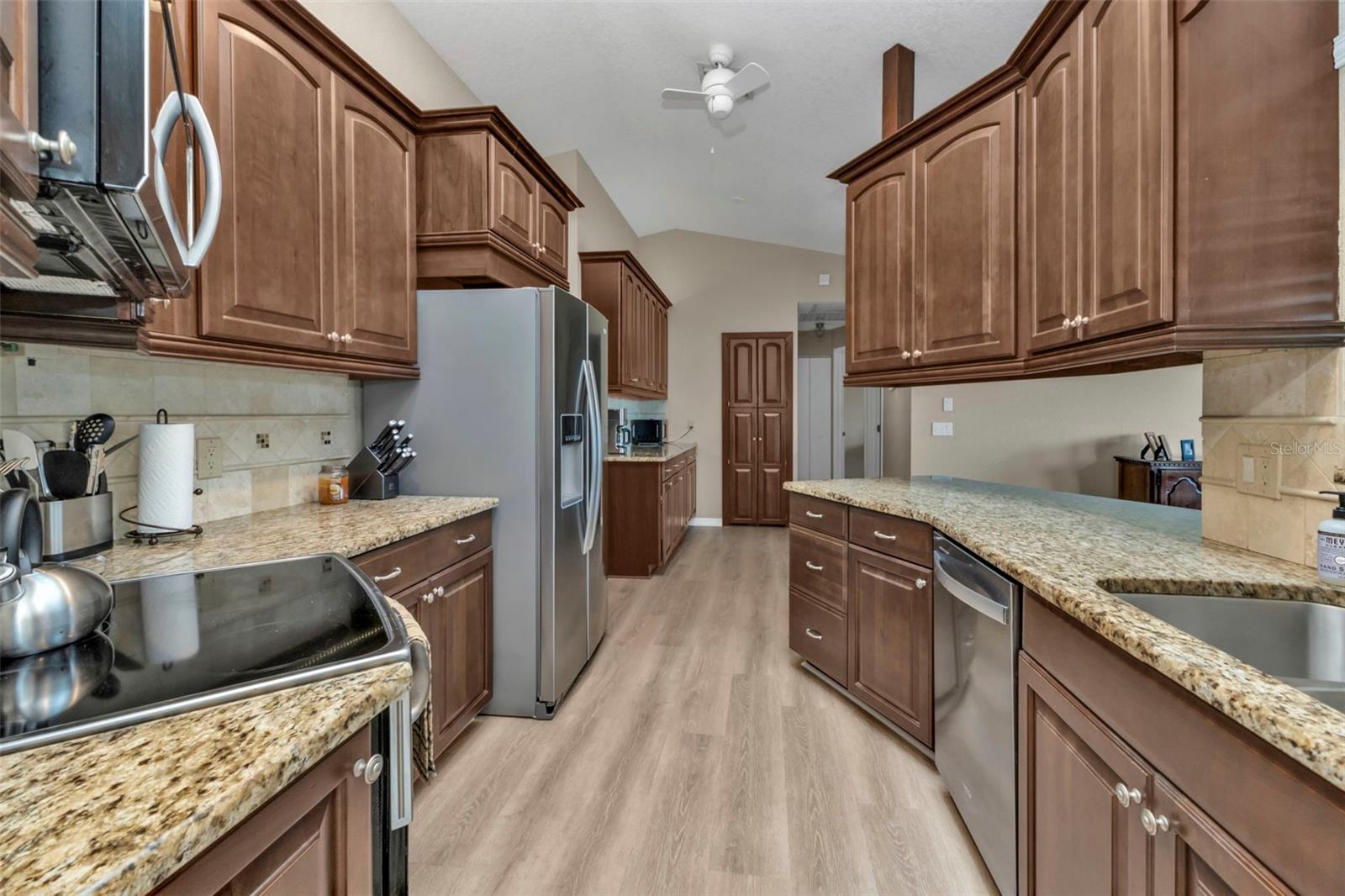 Bem-vindo ao oásis dos seus sonhos na Flórida - uma casa meticulosamente atualizada com 3 quartos e 2 banheiros, onde o design moderno encontra o máximo conforto e paz de espírito inabalável. Situada numa zona não inundada altamente desejável, esta propriedade permaneceu intocada pelas tempestades passadas, oferecendo uma rara combinação de beleza e segurança. Entre no paraíso dos chefs, onde elegantes eletrodomésticos de aço inoxidável, um forno de condução de última geração e impressionantes bancadas de granito preparam o cenário para a excelência culinária. Uma clarabóia cuidadosamente posicionada inunda a cozinha com luz natural, enquanto uma espaçosa despensa garante que tudo tenha o seu lugar. Este espaço é tão prático quanto elegante, pronto para acomodar desde refeições íntimas até confraternizações animadas. O luxuoso piso de pranchas de vinil flui perfeitamente por toda a casa, combinando estética sofisticada com durabilidade incomparável. Cada janela foi atualizada para vidro de alto impacto, garantindo eficiência energética e segurança durante todo o ano, enquanto a porta da garagem com proteção contra furacões adiciona outra camada de proteção contra tempestades. Ambos os banheiros são impecavelmente projetados, com elegantes pisos de cerâmica e armários de linho convenientes para armazenamento. A suíte principal é um verdadeiro retiro, com dois closets grandes e um banheiro privativo projetado para impressionar. Relaxe na banheira de imersão ou refresque-se no box amplo separado, perfeito para relaxar no final do dia. As portas francesas abrem para uma ampla varanda coberta - um cenário perfeito para entretenimento ou relaxamento tranquilo. A conveniente janela de passagem da cozinha facilita as refeições ao ar livre. O quintal é um santuário privado, totalmente fechado com encantadoras cercas de ferro, oferecendo segurança e vistas pitorescas. Esta casa vai além da estética – ela foi projetada para oferecer conforto e longevidade. Um novo teto foi instalado em 2023, enquanto um moderno sistema de ar condicionado, atualizado em 2021, garante conforto confiável durante todo o ano. Localizada em uma área segura contra tempestades, esta propriedade oferece uma rara sensação de segurança juntamente com seus muitos recursos luxuosos. Desde seus interiores meticulosamente projetados até seus espaços externos serenos, esta casa oferece a melhor combinação de estilo, funcionalidade e tranquilidade. Esteja você se divertindo, relaxando ou simplesmente aproveitando o estilo de vida da Flórida, cada detalhe foi cuidadosamente considerado para aprimorar sua experiência. Não perca a oportunidade de tornar sua esta casa excepcional, onde a elegância atemporal encontra qualidade incomparável em cada canto.