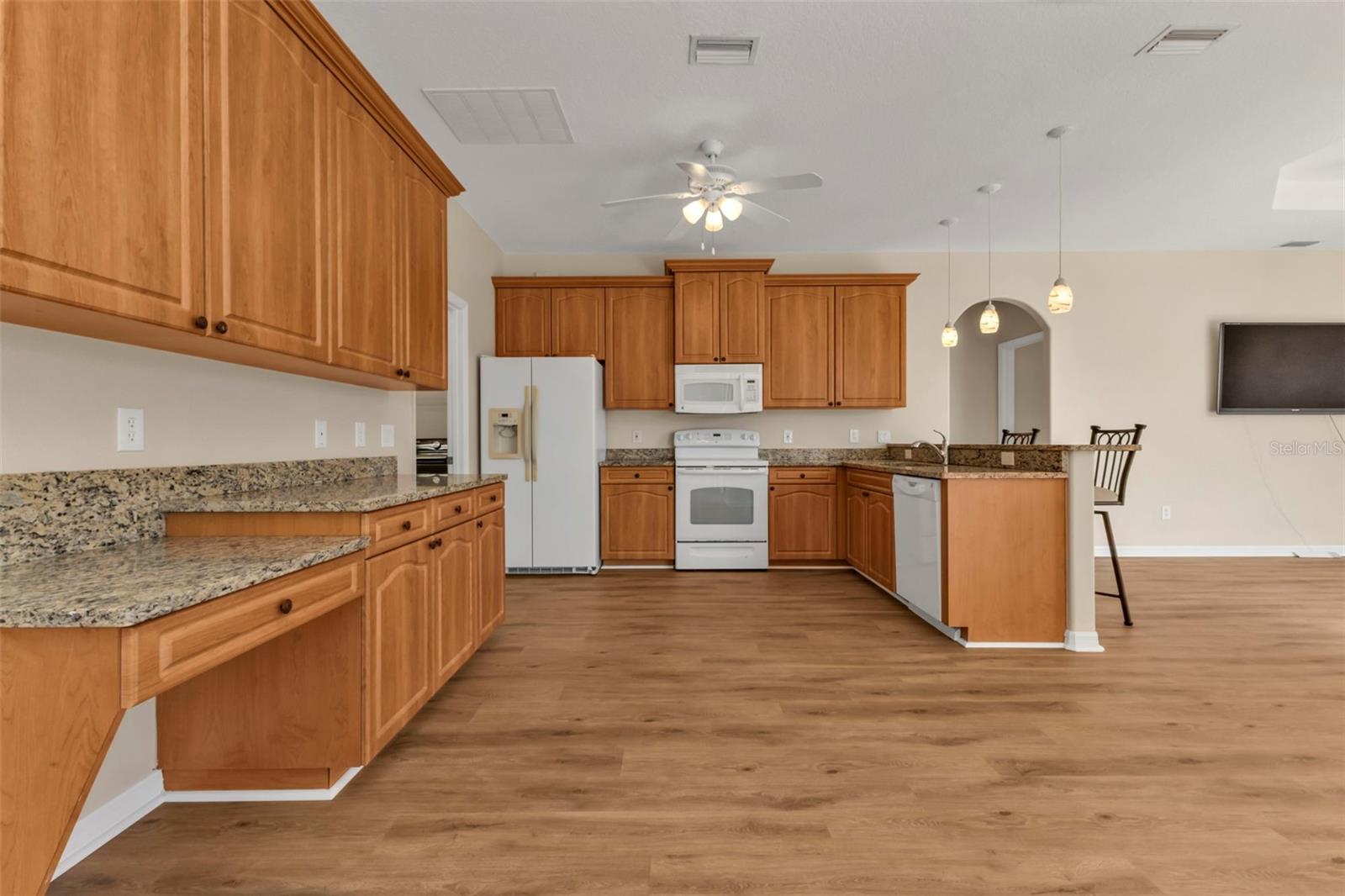 Fabulous Deep Creek Pool Home! Novo telhado, tinta nova e piso atualizado! Nenhum dano de tempestades recentes. Bairro alto e seco. Esta casa está em um lote espaçoso com bastante quintal e uma garagem enorme com espaço para vários carros! Esta casa apresenta um conceito aberto com tetos altos, incluindo até 14 pés na sala de estar principal, com portas de vidro deslizantes, levando à sua área de lanai e piscina. A sala de estar está conectada à área de jantar e ambos os quartos fluem perfeitamente para a cozinha com uma sala familiar adicional além! A cozinha possui bancadas em granito e armários amplos para bastante sala de armazenamento! Todos os aparelhos estão incluídos. A suíte primária fica em um lado da casa e tem acesso privado à área de Lanai/piscina exibida. Há também um banheiro privativo e caminhar em armários. Os quartos estão do outro lado da casa e um banheiro adicional para seus convidados tem uma combinação de chuveiro/banheira. Esta casa tem uma ótima planta e está se movendo pronta! Deep Creek é um bairro de golfe residencial com comodidades, incluindo um parque com quadras de tênis e banheiros. Perto de tudo, incluindo acesso rápido à I-75. Certifique -se de clicar nos links completos da turnê virtual para obter detalhes! Ligue hoje com qualquer dúvida e para uma exibição particular!