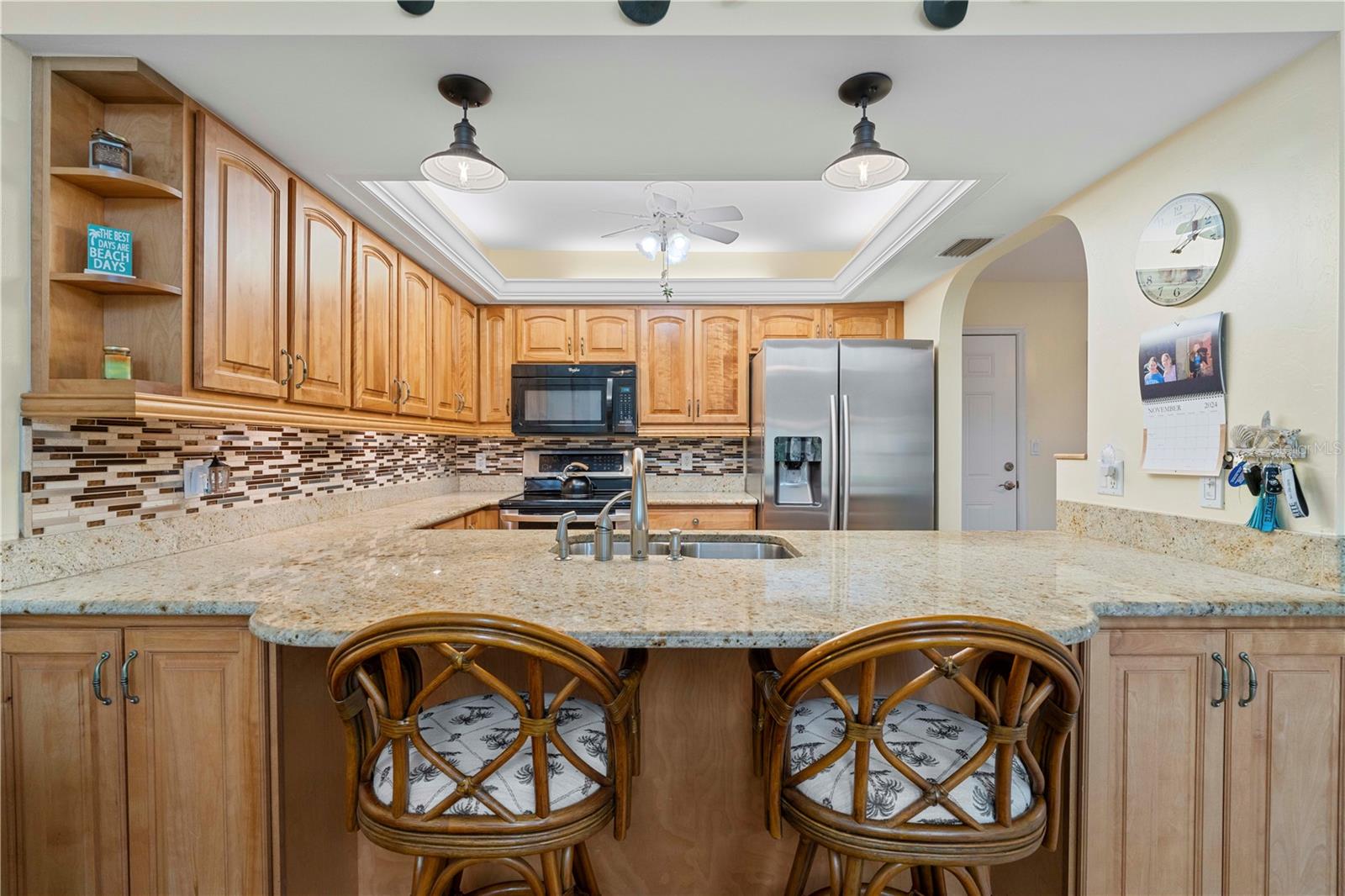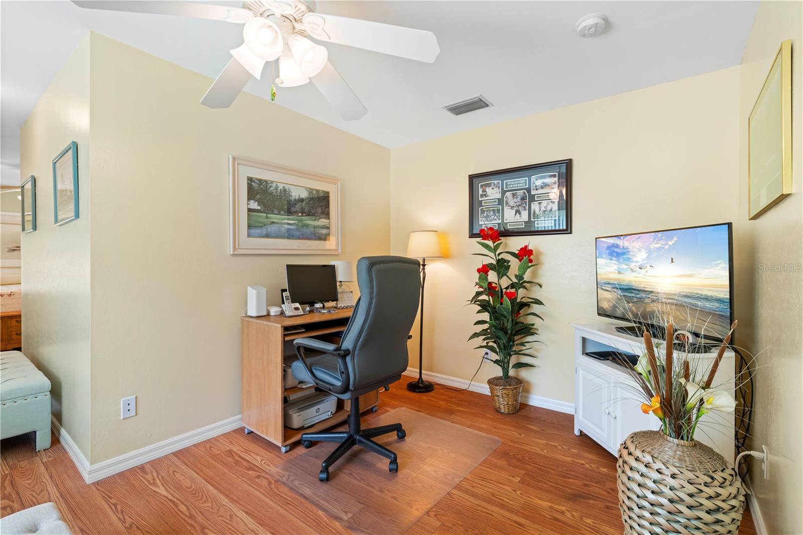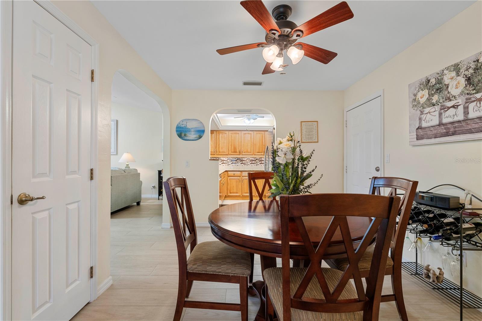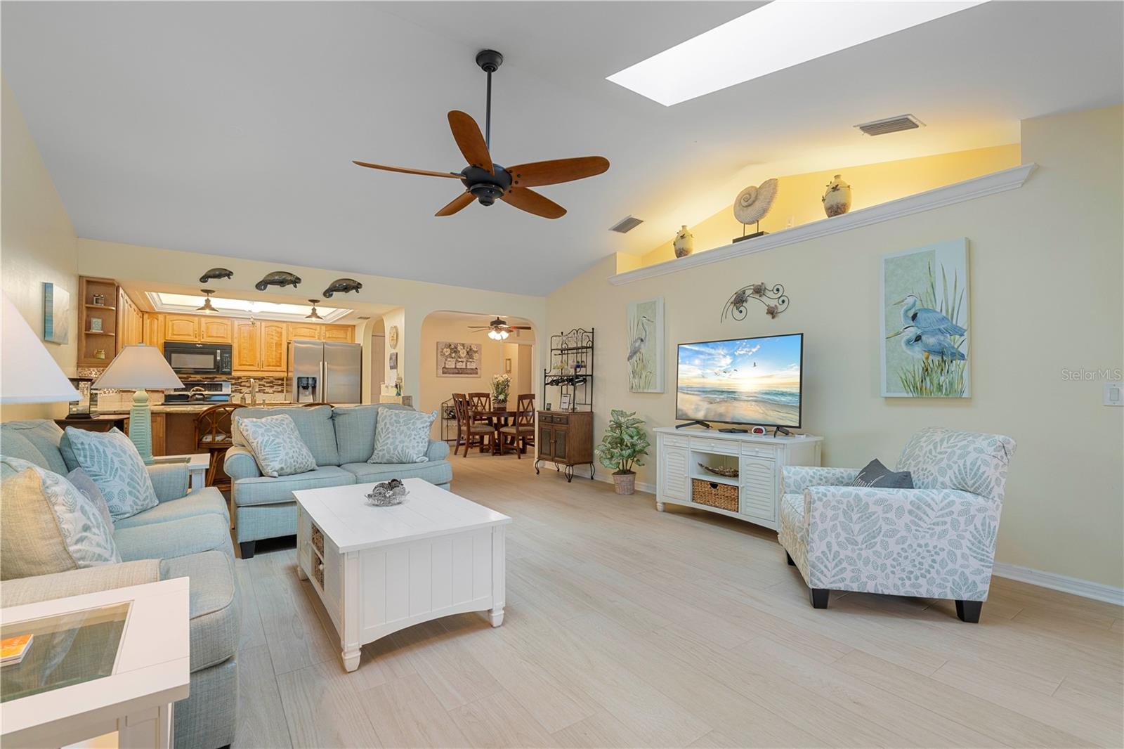 Turn-Key, unidade final da Pine View Villas em Heart of Deep Creek com Gerador de Casa e Proteção de Hurricane-Confira esta espaçosa villa de unidade final com garagem de 2 carros anexada em Pine View Villas, uma comunidade de mais de 55 anos em Deep Creek. O condomínio possui piso plano aberto e brilhante com cozinha atualizada, sala grande, área de jantar formal e lanai fechado. Os detalhes arquitetônicos incluem tetos de catedral, clarabóias e prateleira de exibição iluminada em Great Room, além de pisos atualizados por toda parte, incluindo pisos de ladrilhos de porcelana, com aparência de madeira na área principal da área de estar e pisos laminados com aparência de madeira nos quartos. A cozinha possui balcões de granito e armários de madeira, além de aparelhos atualizados, sob iluminação do gabinete e uma barra de café da manhã que abre para a grande sala. O layout modificado inclui dois quartos grandes, além de um escritório em casa/den anexo à suíte master. Ambos os quartos oferecem banheiros atualizados e privados. Lanai de ladrilhos tem vista para o espaço de verdura parecido com um parque atrás do condomínio. Uma porta de tela retrátil do outro lado da garagem combinada com uma entrada exibida e a Lanai Open permite a maravilhosa brisa cruzada quando aberta. O condomínio foi meticulosamente mantido e está em condição de mudança. Proteção de furacões fornecida por uma mistura de janelas de impacto, obturador rolante e obturador de acordeão externo em Lanai. Inclui um gerador de 12kW de 12kW de combustível duplo (propano e gás) com conexão na garagem. Novo aquecedor de água, novembro de 2024. Itens de chave em venda incluídos na venda-a maioria dos móveis, conjunto de utensílios de 8 peças com pratos, xícaras, copos e vários utensílios, além de roupas de cama e toalhas. Mobiliário Listagem disponível mediante solicitação. As comodidades do condomínio incluem uma piscina no solo com spa anexada. Deep Creek é uma comunidade crescente e restrita de ações que possui um campo de golfe semi-privado, playground, quadra de tênis, quadra de basquete e quilômetros de calçadas. Viva o sonho da Flórida aqui. Marque uma consulta hoje.
