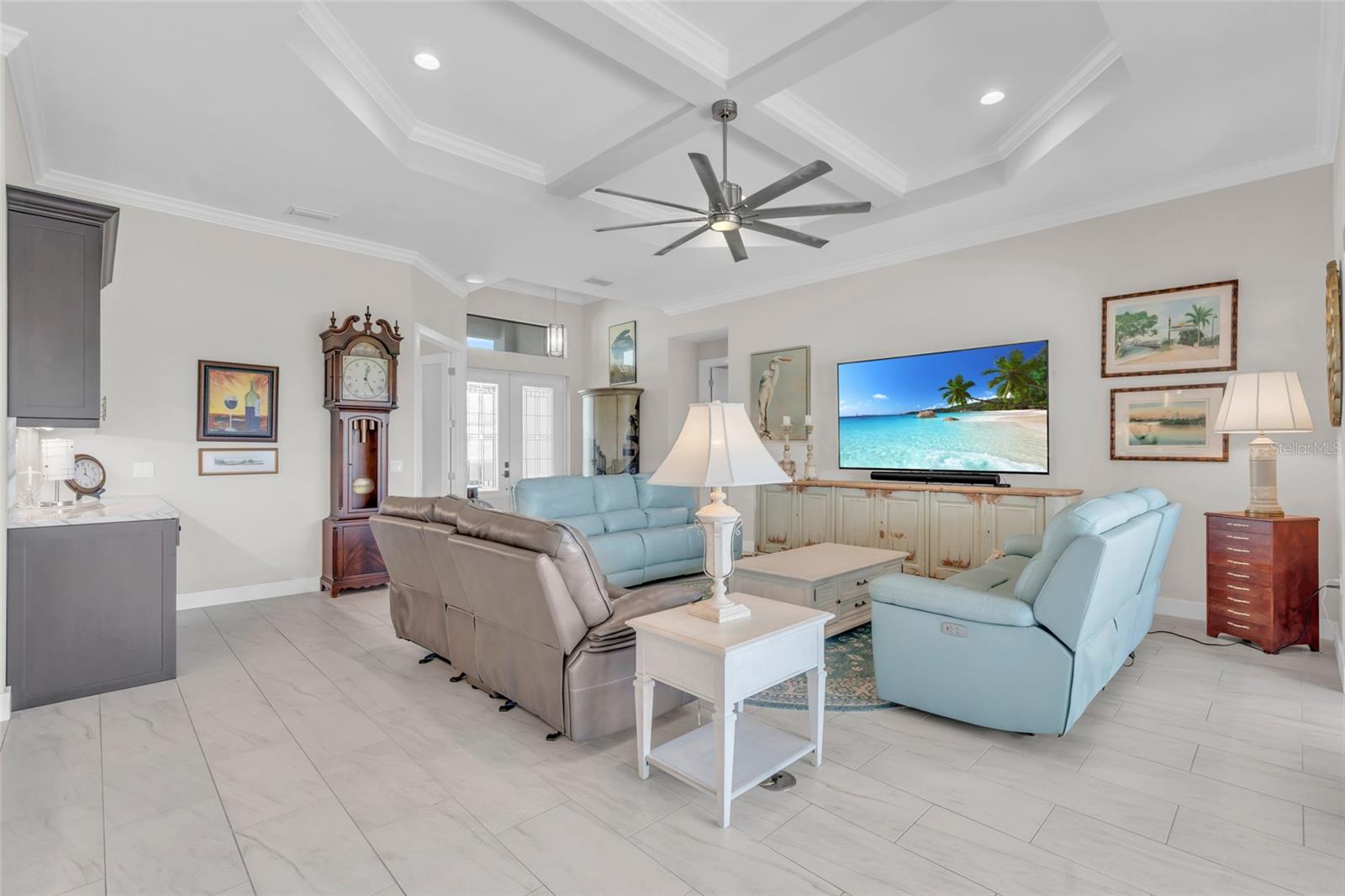 Esta residência excepcional, situada no buraco 13 do campo de golfe Twin Isles, oferece uma mistura cativante de design contemporâneo, acabamentos de alta qualidade e vistas pitorescas do sudoeste para um pôr do sol inesquecível. A partir do momento em que você chega, a ampla calçada e passarela, o paisagismo exuberante, as elegantes portas duplas de vidro e as venezianas em estilo das Bahamas criam uma primeira impressão cativante. Com uma grande planta aberta, esta casa de três quartos e escritório construída em 2020 apresenta janelas e portas de vidro de impacto e tetos altos em caixotões com sancas elegantes. Um controle deslizante de canto zero conecta perfeitamente a sala de estar ao oásis ao ar livre, onde você sem dúvida passará inúmeras noites relaxando enquanto o sol se põe sobre a grande tela da janela panorâmica. A ampla área de entretenimento ao ar livre apresenta uma bela piscina de água salgada aquecida com transbordamento, acabamento Pebble Tec, salões convidativos na piscina, além de controles Pentair, todos com vista para o amplo campo de golfe. Você vai adorar relaxar com os amigos ou jantar ao ar livre sob a ampla varanda coberta com acesso conveniente à piscina. A cozinha do chef é um sonho culinário, com abundantes superfícies de trabalho/entretenimento e armazenamento. Balcões de pedra de alta qualidade e backsplash adicionam um toque especial a esta cozinha matadora, enquanto os eletrodomésticos GE Profile, incluindo uma geladeira de 48 ”, fogão e forno duplo embutido atendem a todas as suas necessidades culinárias. O entretenimento é muito fácil com um bar dedicado com refrigerador de vinho, ilhas duplas com assentos para café da manhã e uma despensa grande e oculta. Em toda a casa, você encontrará um rico esquema de cores neutras, piso de tábuas de cores claras, iluminação personalizada, sancas, venezianas e portas de núcleo sólido. O escritório dedicado, acessado através de portas francesas, inclui um impressionante sistema de escritório personalizado integrado. Prepare-se para se surpreender com a enorme garagem para 4 carros 22x40 com ar condicionado, piso em epóxi e muito espaço para reparos e arrumação! A luxuosa suíte master é um retiro sereno com tetos planos, persianas motorizadas, acesso à varanda privativa, closets duplos e armazenamento adicional embutido. A atraente banheira tipo spa oferece pias divididas, grande banheira de imersão e box amplo personalizado. O layout de quartos divididos garante privacidade aos hóspedes, com duas suítes de tamanhos generosos... uma com acesso direto à varanda e banheiro privativo e a segunda com banheiro privativo com closet. Uma impressionante despensa completa esta casa incrível com um enorme armazenamento para mantê-lo organizado. Janelas de impacto mais uma veneziana motorizada, instalada em 2023, permitem que você passe férias com tranquilidade. Burnt Store Isles é uma comunidade de golfe e passeios de barco com escritura restrita, oferecendo grande proximidade do centro de Punta Gorda, da Vila dos Pescadores, de pesca e passeios de barco de classe mundial e de belos parques.