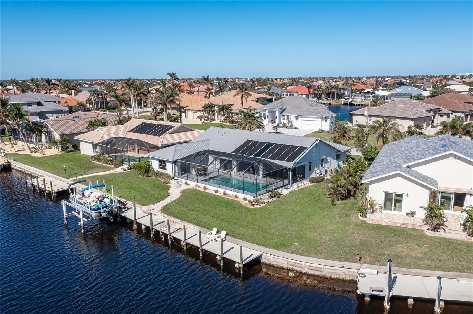 1 de apenas 3 casas à venda diretamente no canal perímetro exclusivo, sem casas na água e 111 pés de orla! Comece a viver seu sonho da Flórida aqui. Graças à exposição ao sul, você pode apreciar o nascer do sol colorido e o pôr do sol que pintam os céus sobre o canal. Esta casa personalizada de 3 camas/2 banheiros, a beira -mar da Fero Construction em Punta Gorda Isles, tem tudo para começar a apreciar o estilo de vida da Flórida. Quase todos os cômodos da casa apresentam uma piscina e uma visão de canal, permitindo que você aproveite a atividade ao longo do canal do perímetro, que inclui uma infinidade de tráfego de barcos, caiaques frequentes e vida marinha, incluindo golfinhos, lontras, aves nativas e peixe -boi ocasional! A privacidade prevalece sem vizinhos diretamente atrás de você, graças à visão da reserva protegida de manguezais/natureza. Os detalhes arquitetônicos incluem tetos de catedral, piso Coretec LVT em todas as principais áreas de estar (azulejos em banhos e vinil na lavanderia) e várias portas de vidro deslizantes que se estendem ao espaço para o lanai. Cozinha grande c/ilha central e amplo gabinete/balcão possui filtração de água, área de bebida com geladeira embutida, barra de café da manhã, sob iluminação do gabinete e uma área de café da manhã adjacente. A planta baixa dividida apresenta um retiro espaçoso do proprietário com acesso privado às vistas de Lanai, piscina e canal, um closet de grande porte e banho de suíte com pias duplas, chuveiro de vidro e azulejo, banheira de canto, clarabóia e particular WC. Uma porta de bolso separa os quartos dos hóspedes da área principal, proporcionando privacidade a todos. Os quartos de hóspedes compartilham um grande banheiro de hóspedes. Um quarto de hóspedes oferece acesso à Lanai com uma piscina e vista para o canal, enquanto o outro quarto tem um grande closet para espaço de armazenamento adicional. Do lado de fora, o Lanai inclui uma piscina no solo, aquecida (bomba solar e calor), deck sol e área de estar/jantar coberta, onde você pode aproveitar ao máximo o estilo da Flórida, a vida interna/externa. Uma doca de concreto estendida de 85 pés com elevador de barco de 10.000 lb fica a poucos passos da porta dos fundos. Mantenha seu barco atracado no seu quintal. Há muito espaço para caiaques e outros brinquedos aquáticos ou até mesmo um barco adicional. As conexões de água e elétrica estão disponíveis no cais. Ótima pesca disponível na doca ou um dia passado no seu barco. Dependendo do seu destino pretendido, esta propriedade oferece o melhor dos dois mundos com acesso a águas abertas por meio de Ponce Outlet ou Buckley's Pass em cerca de 15 minutos ou menos. Alguns dos muitos benefícios de serem situados no canal do perímetro incluem a privacidade que oferece, uma excelente vista, tráfego de barcos frequentes e assentos na primeira fila para o desfile de barcos de férias iluminados. Outras comodidades incluem uma garagem de dois carros anexada, proteção de furacões em toda a casa, lavanderia interior grande com armazenamento adicional e exuberante paisagismo tropical ao redor da casa. As atualizações incluem o teto de metal de 5 V, replominado em 2022 W/PEX Tiping, novos fãs contemporâneos em Great Room, Cozinha e Suíte do Proprietário. O lar foi meticulosamente mantido. Marque uma consulta hoje.