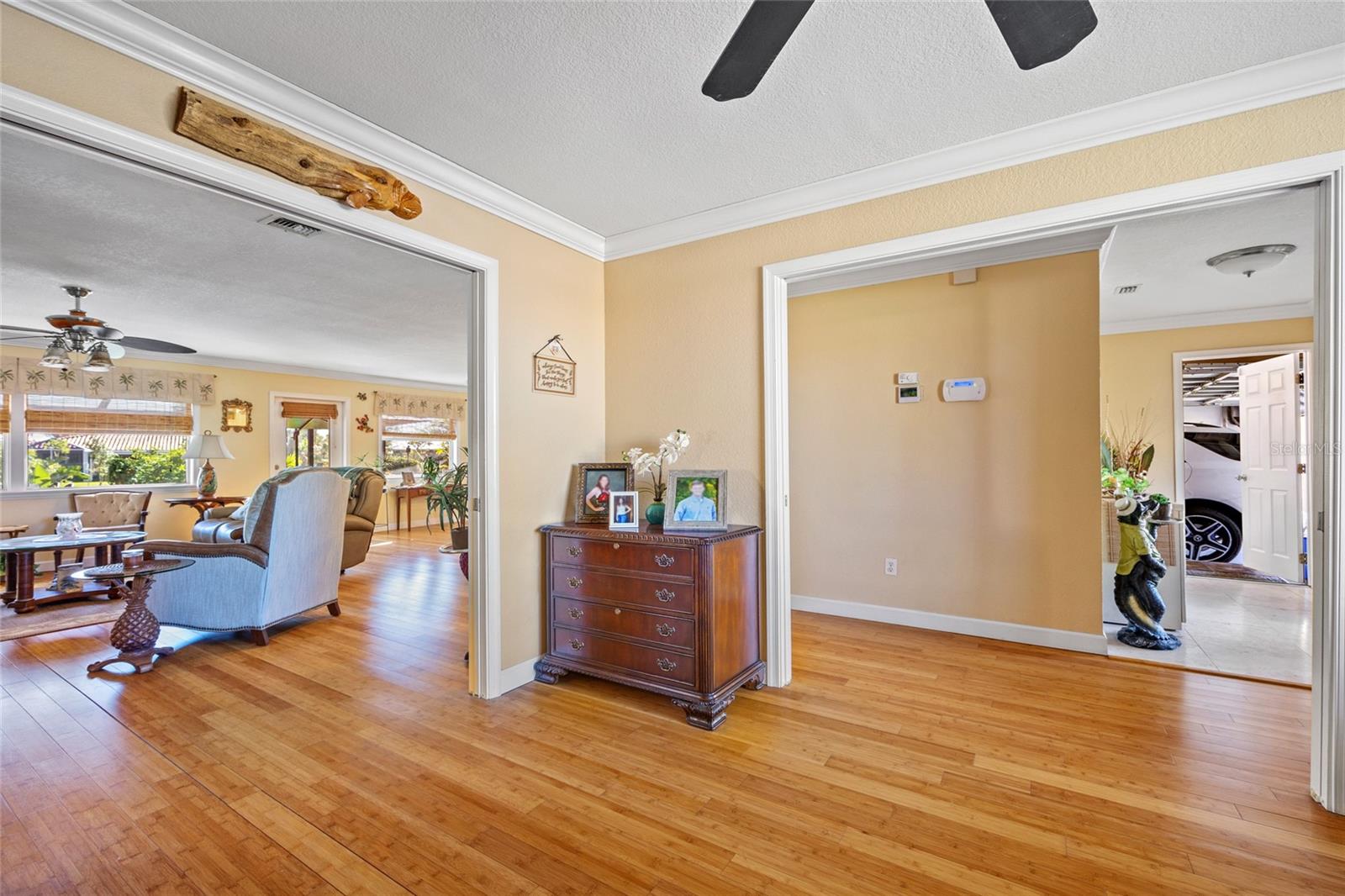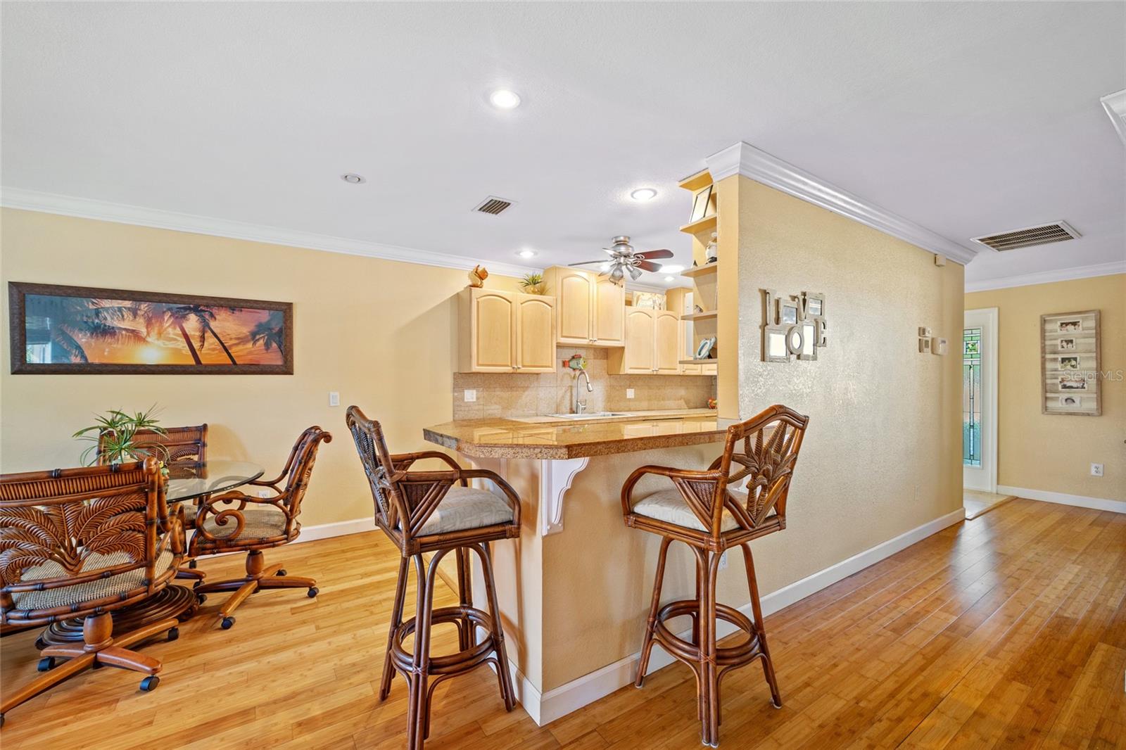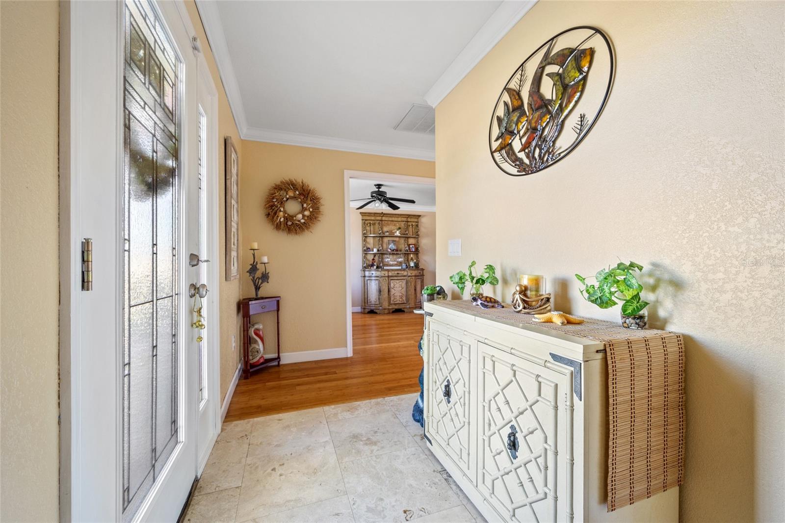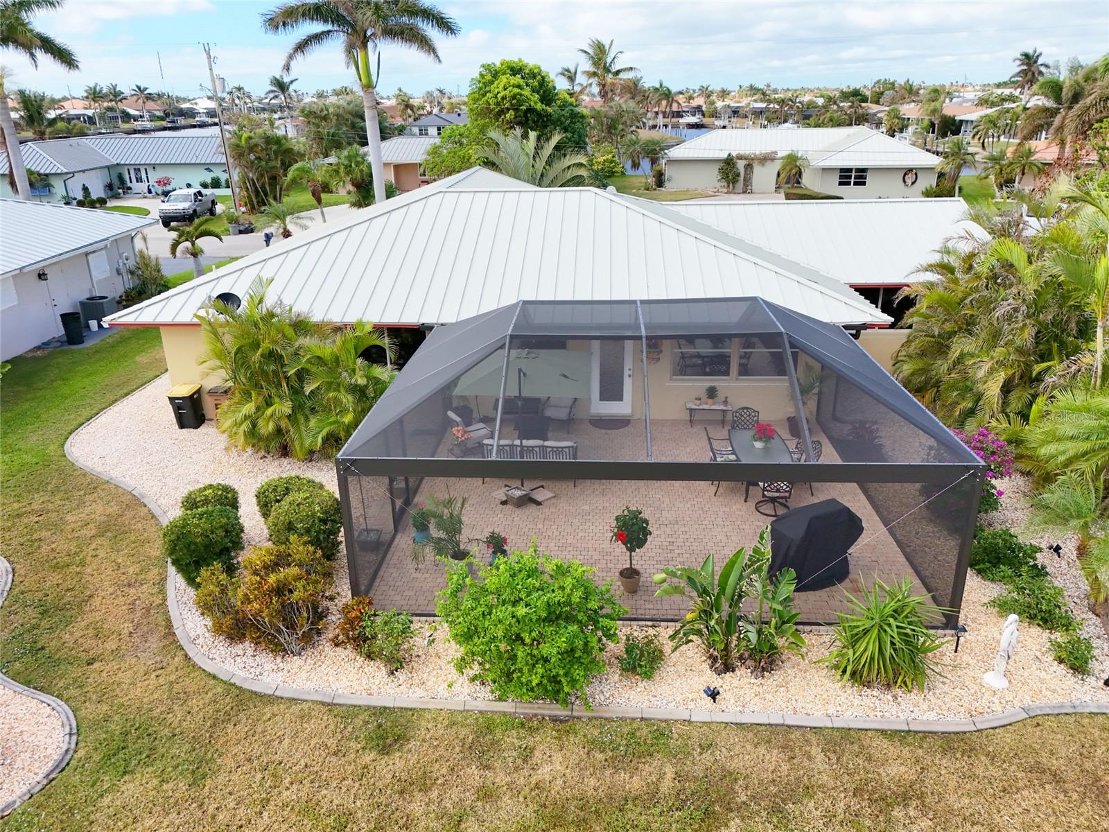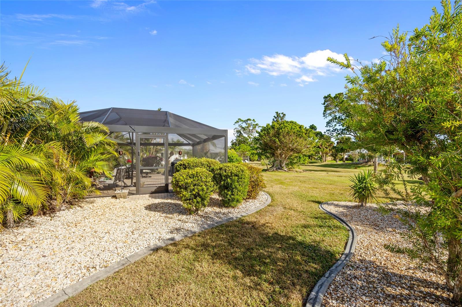 PRONTO PARA MUDAR! Esta casa meticulosamente mantida com 2 quartos, 2 banheiros e garagem para 2 carros situada nas Ilhas Punta Gorda é uma joia que você não vai querer perder! Aproveite o novo recinto com telas panorâmicas na varanda de 25' x 27', completa com pavimentação, vista para o cinturão verde, paisagismo exuberante e exposição oriental para observar o belo nascer do sol. Entre para descobrir uma planta aberta adornada com sancas e uma decoração neutra que complementa o piso de bambu e travertino. A sala de jantar formal, que também pode servir como escritório ou escritório, possui duas portas deslizantes e acesso conveniente ao banheiro de hóspedes. A sala de estar aberta e a área da cozinha fluem perfeitamente para a varanda, tornando-a perfeita para entretenimento. A cozinha possui armários elevados, balcões de azulejos e backsplash, balcão para café da manhã e uma área de jantar casual. A suíte principal bem iluminada oferece banheiro privativo com pias duplas, combinação de banheira de hidromassagem/chuveiro e closet. A planta dividida garante privacidade a todos, com quarto de hóspedes com muita luz natural, closet e acesso ao banheiro. As atualizações recentes incluem um novo telhado de metal em 2023, novo A/C em 2022, novo aquecedor de água quente em 2020, amaciante de água substituído em 2022 e a casa foi reformada em 2017. A casa também inclui persianas anti-furacão, varanda frontal coberta , e oficina na garagem. Segundo o vendedor, a propriedade não sofreu nenhuma inundação devido às tempestades. Localizado em uma popular comunidade de golfe e passeios de barco, você está a poucos minutos do Yacht Club, da Vila dos Pescadores e do centro histórico de Punta Gorda. Mergulhe na vibrante cena artística, eventos comunitários, entretenimento, pesca de classe mundial, passeios de barco, restaurantes sofisticados e belos parques. Além disso, desfrute de fácil acesso às praias do golfo SWFL. Não perca a chance de fazer desta casa excepcional seu novo retiro na Flórida! Agende sua exibição privada hoje mesmo!