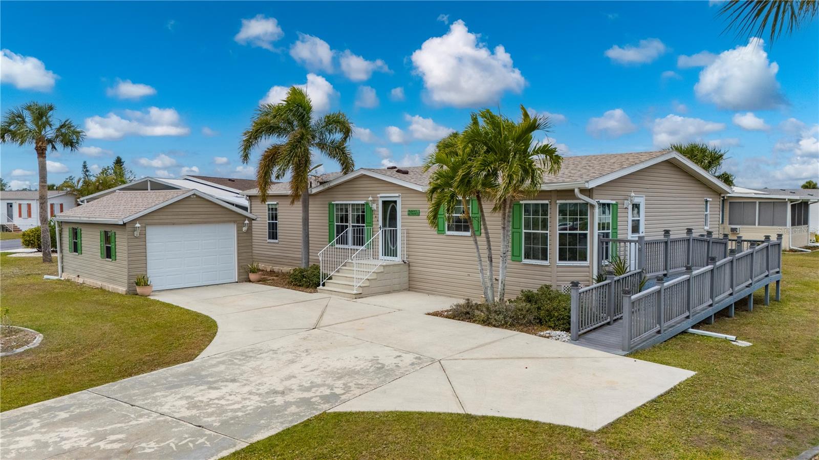 Port Charlotte Village foi eleita a comunidade de casas pré-fabricadas nº 1 em 2024. * NÃO ESTÁ NA ZONA DE INUNDAÇÃO * Bem-vindo a esta bela e espaçosa casa de 3 quartos e 2 banheiros com garagem individual, situada em um terreno de grandes dimensões em um bairro procurado com mais de 55 anos. comunidade com um HOA baixo. Ao se aproximar, você notará a ampla entrada de automóveis e uma rampa conveniente para fácil acesso. No interior, esta casa oferece uma impressionante planta aberta com muito espaço para se espalhar. A cozinha enorme é o sonho de qualquer chef, com armários abundantes, balcão e uma área de café da manhã bem iluminada, perfeita para refeições casuais. A grande sala de jantar flui perfeitamente para a ampla sala de estar, tornando-a ideal para entretenimento. Cada quarto é de tamanho generoso, oferecendo conforto e privacidade, enquanto a suíte principal inclui amplo closet e banheiro privativo. O armazenamento é abundante em toda a casa, com armários e armários cuidadosamente projetados para atender a todas as suas necessidades. As atualizações recentes incluem um novo telhado (2023), sistema HVAC (2023) e uma entrada de automóveis recém-lavada à pressão (2025). A garagem individual para 1 carro oferece armazenamento adicional ou espaço para oficina, e o belo jardim paisagístico apresenta um encantador lago privado, adicionando um toque sereno ao gramado da frente. Esta casa está perfeitamente localizada a uma curta distância das comodidades da comunidade, incluindo caixas de correio, pista de corrida para cães, piscina, quadras de bocha, shuffleboard e Tanner Hall. Com seu interior espaçoso, atualizações modernas e localização privilegiada, esta casa é um achado raro. Não perca a chance de torná-lo seu!