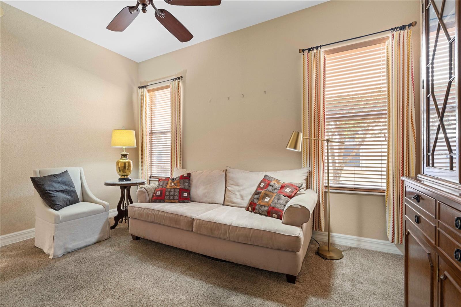 Ilha Burnt Store Condomínio com Visualização de Campo de Golfe! Confira este condomínio de luxo, 3 camas/2 banheiros com garagem privada de 2 carros e vistas do 8º Fairway of Twin Isles Golf Course. A unidade possui um piso plano aberto com grande sala, área de jantar formal e cozinha gourmet. Muitos detalhes arquitetônicos, incluindo pisos de ladrilhos em toda a área de estar, tetos altos com moldagem por coroa, portas de vidro deslizantes desaparecendo, além de uma grande sala de lavanderia/sala de lama. Great Room se abre para Lanai estendendo o espaço para fora. O Lanai tem vista para o 8º Fairway, bem como um grande lago de campo de golfe. Desfrute de assistir enquanto os golfistas passam atrás do condomínio ao longo do dia. A cozinha gourmet possui balcões de granito, armários de painel elevados, despensa de canto e bar de café da manhã em abrangência. A suíte master tem vistas para o Golf Course, além de um banheiro mestre em forma de spa, com pias duplas, WC particular, chuveiro de vidro/azulejo e closet de grandes dimensões. O design do quarto dividido apresenta grandes quartos de hóspedes. Um quarto de hóspedes apresenta um grande closet. A lavanderia possui lavadora e secadora de tamanho normal, além de ser uma sala de lama com acesso à garagem. A garagem de dois carros anexada possui uma sala de armazenamento embutida na parte traseira da garagem para obter ainda mais armazenamento. A associação no Twin Isles Country Club é opcional e fornece acesso ao campeonato de golfe de 18 buracos no quintal, no Clubhouse Restaurant & Lounge, uma grande piscina e várias quadras de tênis. O TICC também hospeda vários grupos sociais, ligas de tênis e happy hours. Faça um trabalho rápido de suas tarefas, dada a principal localização do condomínio perto de Burnt Store Marketplace - você pode até caminhar até o Publix, Home Depot e vários restaurantes. O condomínio foi meticulosamente mantido e está em condição de mudança. Marque uma consulta hoje.