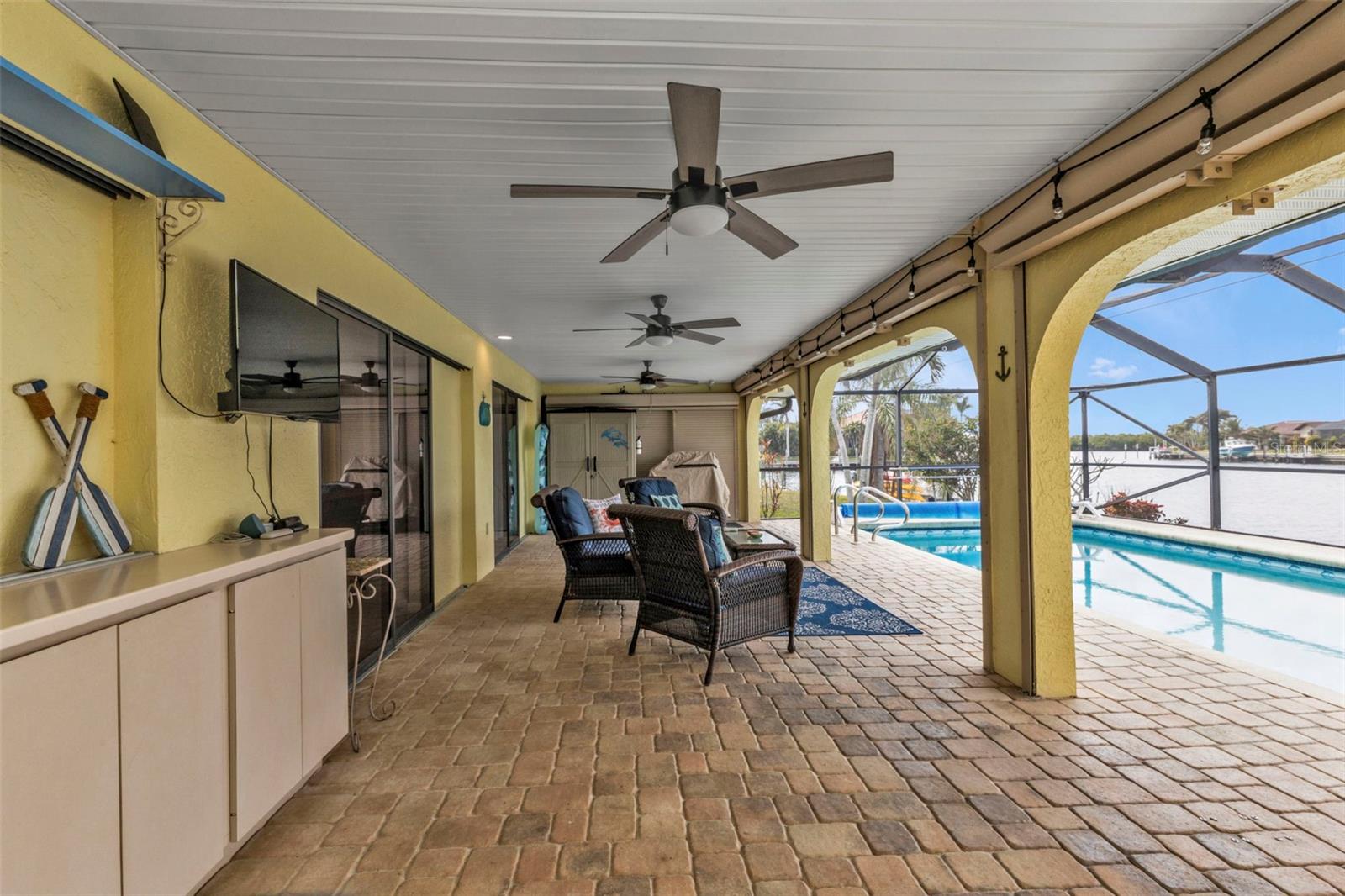 Bliss à beira -mar com vistas deslumbrantes. Prepare-se para se surpreender com esta casa de garagem de 3 quartos, de 3 quartos, de 2 banheiros e 2 carros, oferecendo impressionantes vistas de água ampla de canais de veleiros que se cruzam, a poucos minutos do porto de Charlotte. Esta residência lindamente atualizada combina luxo moderno com o charme da vida à beira -mar da Flórida. Entre para descobrir o piso de ladrilhos por toda parte, tinta fresca e novos aparelhos modernos carregados com recursos extras, incluindo um cooktop de indução. A casa é brilhante e convidativa, com tetos de catedral, 3 clarabóias e portas de vidro deslizantes que enchem o espaço com luz natural. A área de estar e jantar aberta flui perfeitamente para o coração da casa - uma cozinha brilhante e elegante que fica ao lado da sala da família. A cozinha possui armários de painel elevados, bancadas de quartzo espumante, uma barra de café da manhã e uma janela de passe para o lanai-perfeita para entretenimento. A planta baixa de quartos garante a privacidade, com dois quartos de hóspedes e um banho convenientemente localizado no lado oposto da casa. O segundo banheiro também oferece acesso direto ao Lanai para maior conveniência. A suíte master é um retiro próprio, com acesso privado de Lanai, armários e um luxuoso banho de banheiro privativo completo com pias duplas, uma banheira gratuita deslumbrante com seu próprio mini aquecedor de água do tanque e um separado banho. Pensado para a paz de espírito, a casa inclui janelas de impacto, persianas de furacões na Lanai e porta da frente e painéis de furacões claros para proteção adicional. As atualizações recentes incluem um novo sistema HVAC (2019), aquecedor de água de alta eficiência (2021) e a garagem é preparada para um carregador de EV. Saia para o seu oásis privado, onde as portas de vidro deslizantes se abrem para uma extensão expansiva, coberta e selecionada com persianas elétricas. Relaxe na piscina com aquecimento solar enquanto encharcou as vistas panorâmicas dos canais de acesso ao veleiro. Com 107 pés de paredão de concreto, uma doca de concreto e um elevador de barco, esta casa é realmente o paraíso de um velejador. Localizado a apenas 6 km da Vila de Fisherman, o histórico centro de Punta Gorda, Gilchrist Park e uma variedade de opções de compras, refeições e entretenimento, esta casa está perfeitamente situada para desfrutar do melhor da vida da Flórida. Não perca a chance de possuir esta jóia à beira -mar - faça o seu show particular hoje!