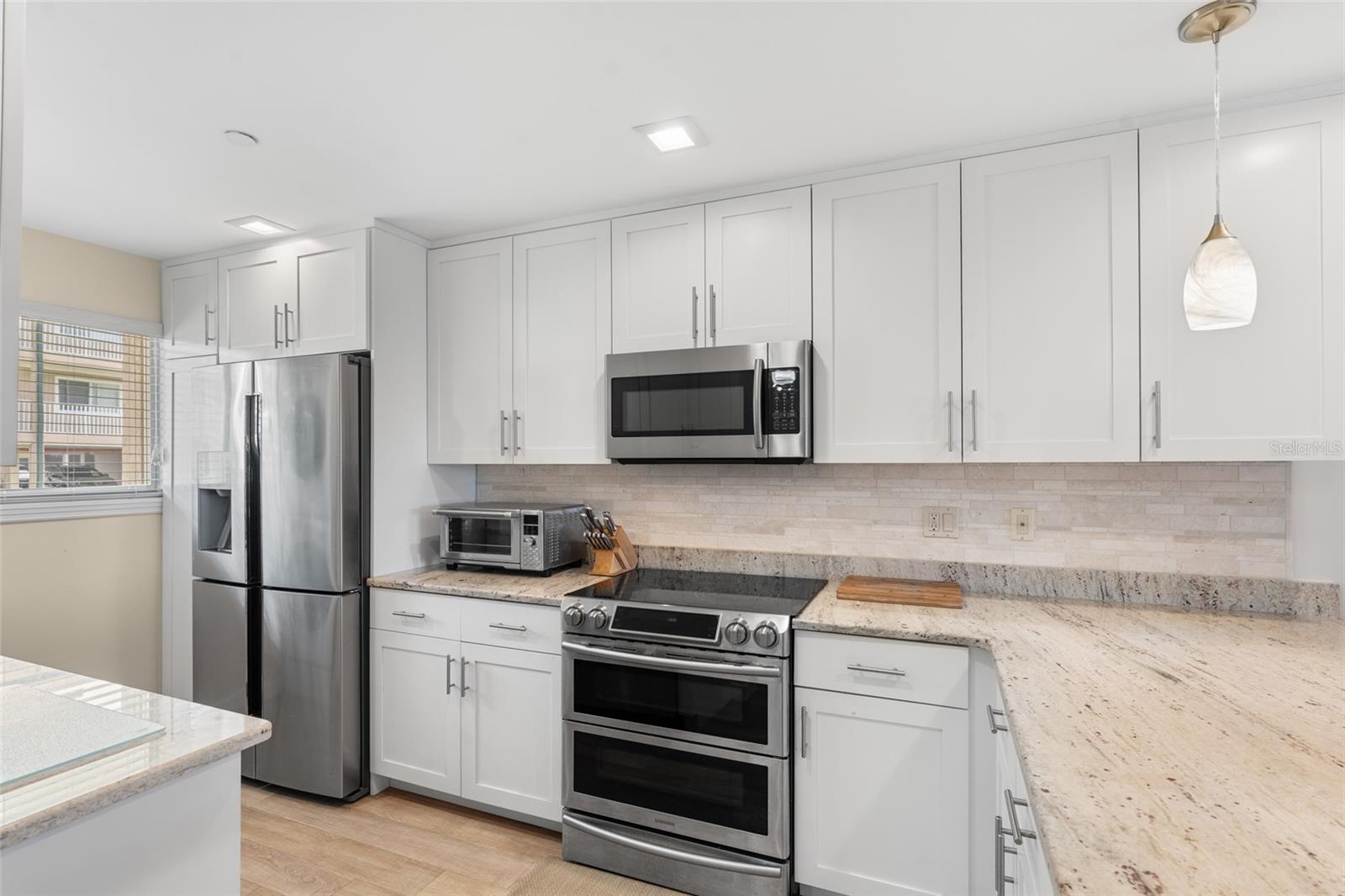 PRESSA!! Atualmente, este é o único condomínio em Charlevoi no mercado no primeiro edifício desejado que oferece vistas ocidentais, pôr do sol e porto. Se isso não for suficiente, o condomínio tem uma reforma de interiores de ponta, combinada com a melhor localização de percaladas em Punta Gorda! Verdadeiramente o principal condomínio do mercado em Charlevoi. Remodel de piso a teto inteiro nos últimos cinco anos-US $ 75.000+. Nenhuma atualização cara é necessária aqui! Ao entrar, você será recebido por uma remodelação lindamente executada que mostra qualidade evidente. Aluguel para possuir e contratar termos de escritura são AVAIALBLE! As atualizações incluem pisos de vinil de luxo contínuos por toda parte, unificar a planta (sem carpete), tetos planos e uma reforma completa da cozinha, com um backsplash de pedra natural, bancadas de granito, armários personalizados com portas/ gavetas de fechamento macio, iluminação pingente e receptas, despensa e atualização de aplicações de aço sem aço. Os banhos remodelados oferecem vaidades modernas com balcões de quartzo, arredores de ladrilhos e portas de chuveiro de vidro personalizadas no banho do proprietário. Os recursos domésticos inteligentes incluem um termostato de ninho, estação de carregamento USB, tomadas elétricas atualizadas e todas as novas iluminação/ventiladores e acessórios. Significant mechanical updates have been completed, including electric, remote-controlled HURRICANE SHUTTERS on the lanai (a $13,000+ upgrade-light filtering & sound blocking), A/C & HVAC (2020), water heater (2024), roof (2023 - association), and washer/dryer (2020), complemented by fresh, soothing paint colors throughout. A fantástica planta de frente para trás tem vista para o espaço verde a leste, enquanto as costas oferecem vistas do porto e do pôr do sol à noite. Desfrute de uma curta distância de tudo! Passeie até o histórico centro de Punta Gorda e explore lojas, cafeterias, salões e restaurantes de classe mundial e bares de classe mundial. O Tiki e o Harborwalk da TT estão a poucos passos de sua Lanai, conectando -se a 48 quilômetros de caminhos cênicos que levam à vila de Fisherman, parques à beira -mar, cais de pesca, pontes pitorescas do porto e muito mais. As portas deslizantes triplas são abertas para o Lanai 19'x8 ', expandindo o layout espaçoso para 1.267 pés quadrados de espaço de estar. A cozinha possui uma barra de café da manhã com vista para as áreas de estar e jantar, criando o plano perfeito para entretenimento. Ambos os generosos quartos da suíte são espaçosos, com a suíte do proprietário oferecendo dois armários (um walk-in, além de um grande armário de linho no banho particular. O armazenamento é abundante neste condomínio, com sete armários por toda parte. Charlevoi é uma comunidade de mais de 55 anos com excelentes comodidades, incluindo uma piscina de colo comunitária aquecida/resfriada, fitness center, shuffleboard, sala de oficina e sala de biblioteca/jogo. A associação é bem gerenciada com um plano de reserva de 30 anos. Este condomínio inclui dois espaços de estacionamento: um espaço coberto e entregue e um espaço atribuído a poucos passos de sua Lanai. Os condomínios de Charlevoi misturam perfeitamente a conveniência da cidade com um ambiente encantador. Não perca a chance de viver o sonho do centro da cidade! Veja fotos para obter informações e suplementos adicionais para obter uma lista de atualizações.