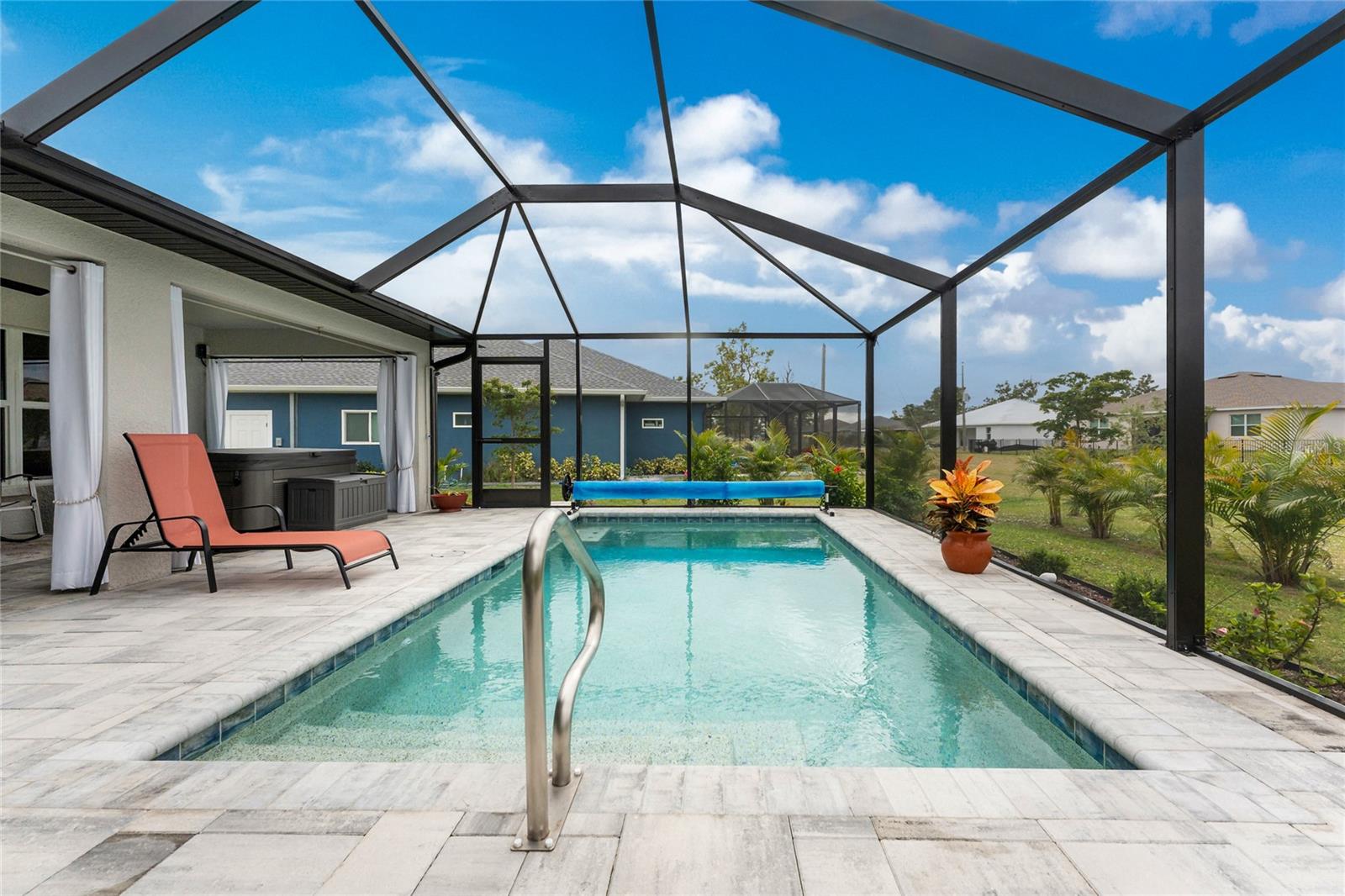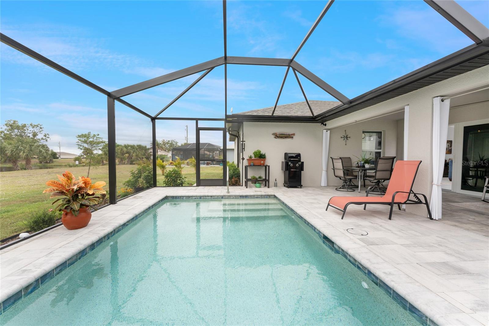 Bem-vindo a esta piscina lindamente projetada de 3 quartos e 2 banheiros, com a banheira de hidromassagem aninhada na encantadora comunidade Burnt Store Village, construída em 2023. Oferecendo 1.643 pés quadrados de espaço de estar, esta casa apresenta um piso aberto convidativo que combina sem problemas a cozinha, as áreas de estar e as áreas de estar-pertencentes a entretenimento e vida cotidiana. A cozinha do chef possui bancadas em granito, armários amplos e um bar de café da manhã com vista para a espaçosa sala de estar. Aproveite a paz de espírito que vem com janelas resistentes ao impacto, proporcionando segurança, eficiência energética e luz natural abundante em toda a casa. Retire -se para a sua piscina privada e exibida em Lanai, o local ideal para relaxar, desfrutar de vistas serenas da lagoa e assista ao pôr do sol de tirar o fôlego. A planta baixa de quartos divididos garante a privacidade, com a suíte primária oferecendo um banho de banho e armários aquáticos. Dois quartos adicionais e um segundo banho completo oferecem muito espaço para a família e os hóspedes. Comece suas manhãs na varanda da frente, o lugar perfeito para desfrutar de um nascer do sol e uma xícara de café. Situado em um bairro tranquilo, a Burnt Store Village oferece trilhas para caminhada, um parque e uma atmosfera amigável da comunidade - todos a poucos minutos de compras, jantares, campos de golfe, marina de loja queimada, vila de pescadores, porto de Charlotte e o aeroporto de Punta Gorda. Não é necessário seguro contra inundações. Não perca esta casa incrível - faça o seu show hoje!