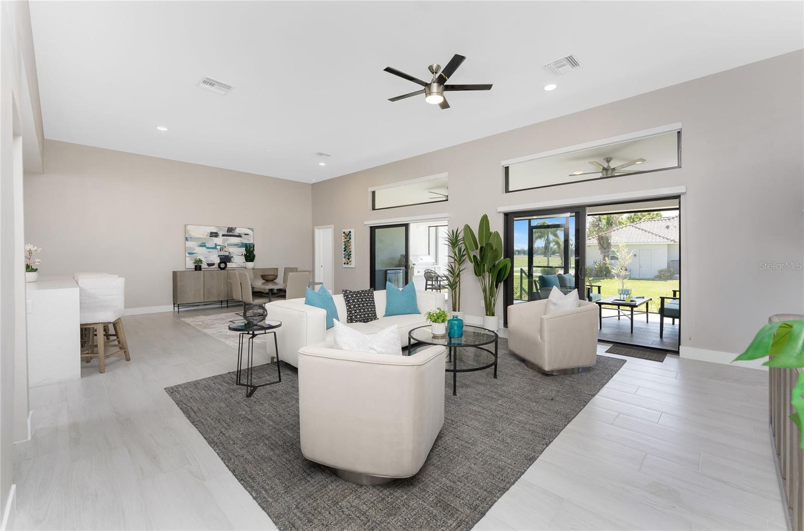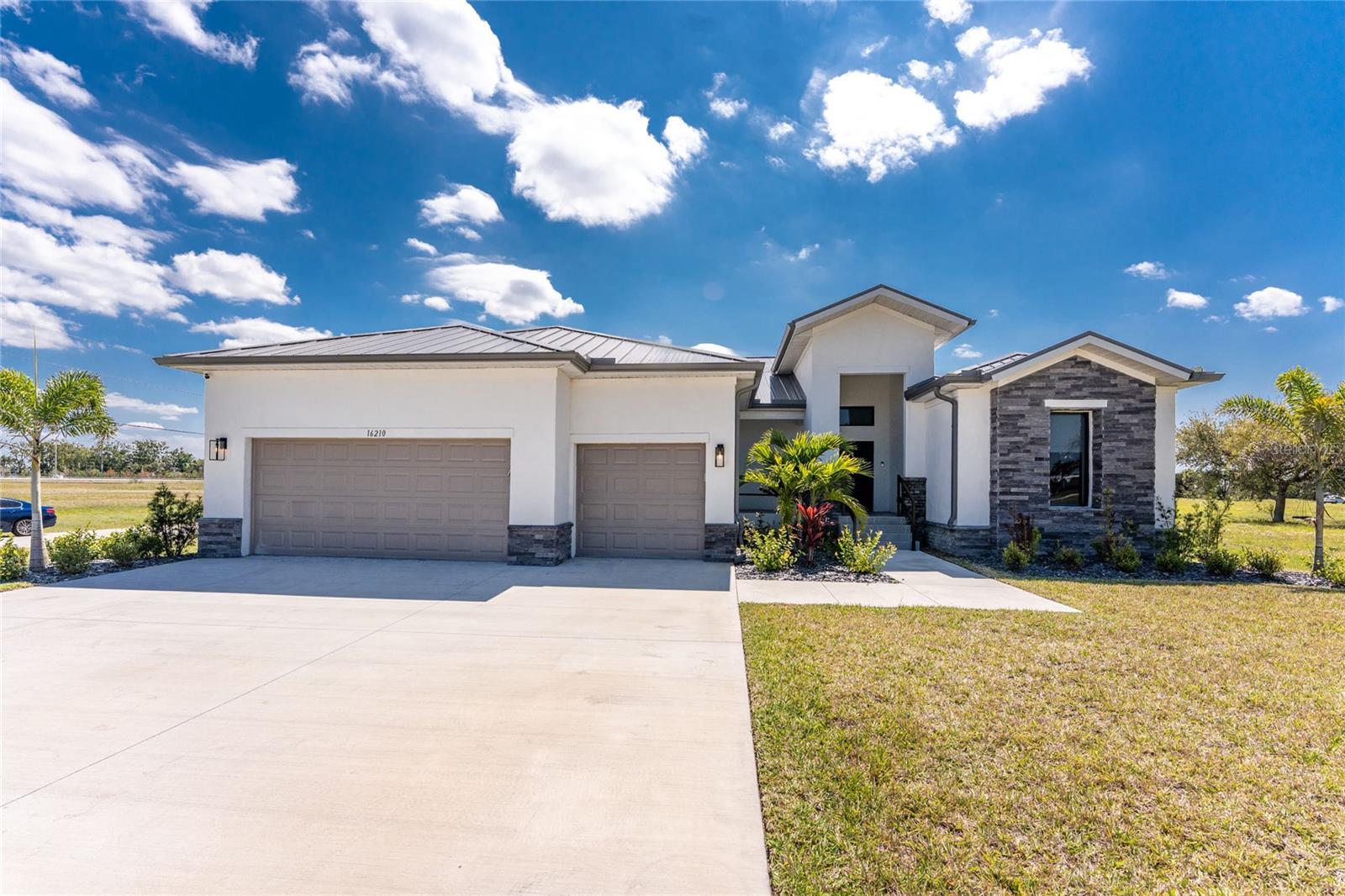 Este novo modelo de casa está pronto para "você" se mudar - com recursos de alta qualidade que você não encontrará em nenhum outro lugar! Ao se aproximar, você notará a impressionante fachada de pedra, o imponente telhado de metal e os leitos rochosos com uma agradável paisagem tropical. Passe pela porta da frente, onde dois conjuntos de portas deslizantes resistentes a impactos recebem luz natural abundante, enquanto os tetos altos de 12 pés e o desejável plano aberto proporcionam um excelente espaço de entretenimento para amigos e familiares! A ampla cozinha do chef em estilo europeu possui uma ampla ilha de quartzo com borda em cascata, backsplash completo, eletrodomésticos de aço inoxidável Whirlpool, incluindo forno de parede e fogão e uma despensa ampla. Vitrines de vidro complementam a cozinha impressionante e permitirão que você adicione um pouco de elegância às suas peças de servir favoritas, enquanto os entusiastas do vinho terão orgulho de exibir sua coleção de vinhos na adega fechada em vidro. A suíte principal é um verdadeiro retiro, oferecendo um dramático banheiro privativo tipo spa, com impressionantes azulejos de mármore que proporcionam um cenário rico para pias duplas, banheira vitoriana, box de vidro e um espaçoso closet. Saia para o seu espaço ao ar livre através de portas deslizantes de impacto para descobrir a varanda de azulejos com tela, com espaço para várias áreas de estar e finalizada com uma cozinha de verão. Três quartos de hóspedes e dois banheiros de hóspedes acomodarão confortavelmente sua família e visitantes, e podem acomodar confortavelmente um escritório ou sala de ginástica. A garagem anexa para três carros diferencia esta casa da concorrência, com piso em epóxi e tomada EV. A tecnologia patenteada da ONX Homes proporciona tranquilidade por meio de recursos resistentes a tempestades, como paredes de concreto isoladas construídas para suportar ventos de 175 mph, fundação de concreto reforçado com parede de tronco, janelas duplas resistentes a impactos, treliças LGS e muito mais. As casas ONX também são construídas com a sustentabilidade em mente, ostentando aparelhos com classificação Energy Star, isolamento térmico, sistema HVAC inteligente e uma tomada EV integrada. Localizados dentro da comunidade restrita de Burnt Store Lakes, os moradores têm acesso ao lançamento comunitário de caiaque, parque com pavilhão, playground e mesas de piquenique - um ótimo local para uma festa com os vizinhos. A Marina Burnt Store fica a apenas um passeio de carrinho de golfe, onde um campo de golfe público, dois restaurantes e uma marina de águas profundas o aguardam!