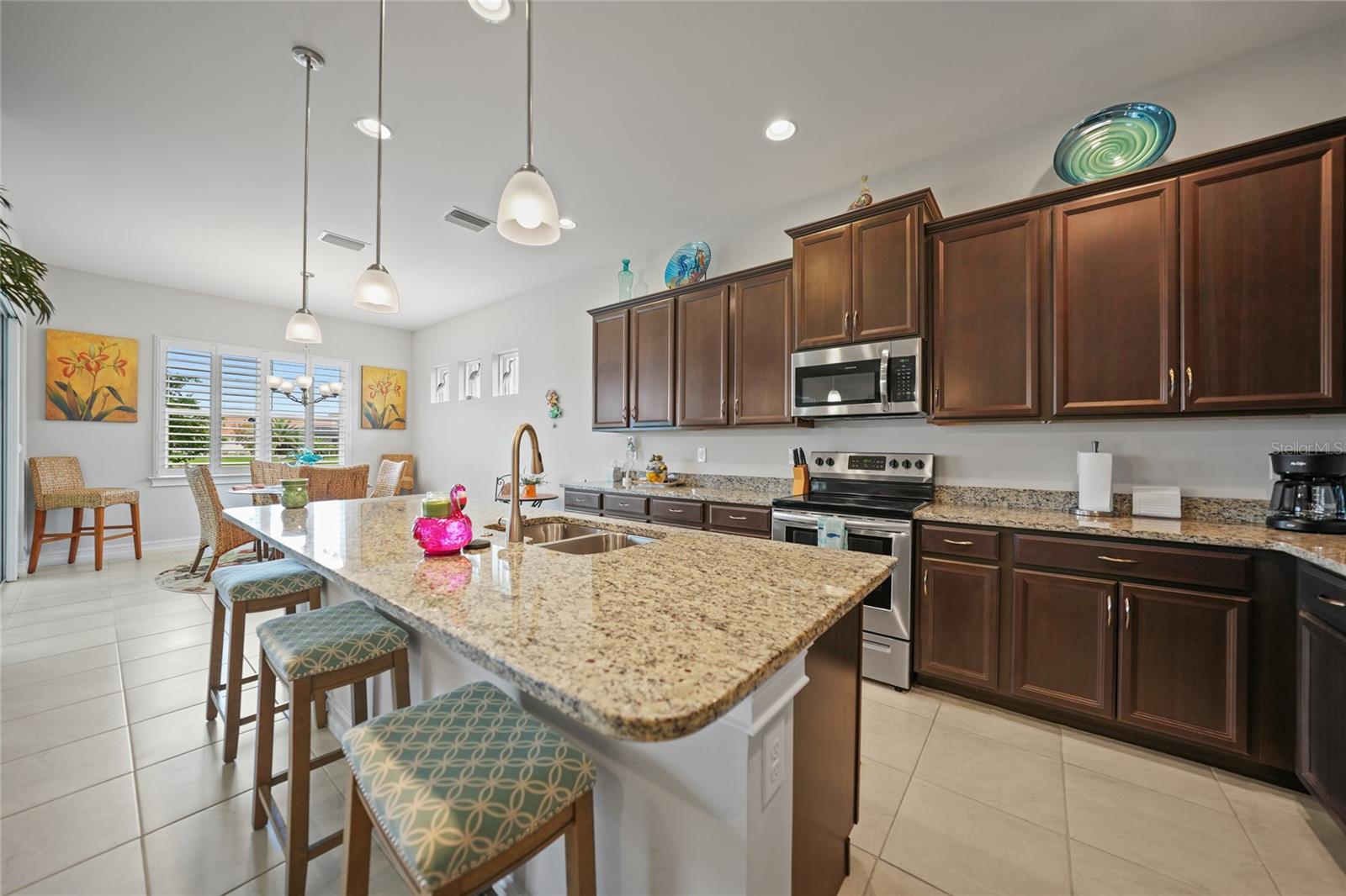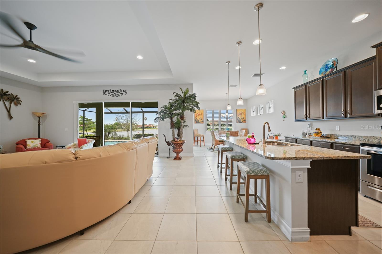 Esta espaçosa casa de 3 quartos e 2 banheiros com uma bela piscina oferece pôr do sol de tirar o fôlego diretamente sobre a piscina e a vista serena do lago. Aninhado na comunidade fechada desejável do River Club South, você desfrutará de vistas deslumbrantes da vida selvagem e da beleza natural. Ao entrar, você é imediatamente recebido por uma grande planta aberta que flui perfeitamente da sala de estar para a sala de jantar e a cozinha, enquanto possui tetos altos e vistas desobstruídas da piscina e do lago. O chef da sua família adorará a cozinha expansiva, com bancadas em granito, armários amplos, utensílios de aço inoxidável e uma grande ilha com assentos. Logo na cozinha, você encontrará duas despensas espaçosas e uma generosa lavanderia. A sala de estar considerável é perfeita para entretenimento, com portas deslizantes que levam ao Lanai e oferecem vistas impressionantes do lago. A planta cuidadosamente projetada coloca o quarto principal para a máxima privacidade, localizada na sala de estar. O banheiro da suíte inclui persianas, tetos altos, chuveiro de stand-up, banheiro privativo, vaidades duplas com bancadas em granito, um grande armário de linho e um espaçoso closet. Os quartos secundários, situados perto da entrada da frente, apresentam ventiladores de teto, amplo espaço no armário e persianas de plantações. O banheiro de hóspedes, convenientemente localizado entre os dois quartos, oferece uma única vaidade e uma combinação de banheira/chuveiro. Saia para o amplo Lanai, onde você encontrará uma piscina de água salgada aquecida cercada por belas pavimentadoras de concreto, perfeitas para relaxar e divertir. As características adicionais da casa incluem armazenamento de garagem aérea, uma garagem rolada, tons de Kevlar roll-down na Lanai e persianas de furacões de metal e acordeão. A taxa HOA cobre a Internet, o serviço básico de TV, a rega do sistema de aspersão, a cobertura morta e a manutenção semanal do gramado. O River Club South oferece comodidades fantásticas, incluindo uma piscina comunitária, playground, sala de reuniões e sala de exercícios. Localizado perto do Sunseeker Resort, Fisherman's Village e Historic, no centro de Punta Gorda, com ótimas opções de compras, refeições e entretenimento. Com fácil acesso à I-75, você estará a uma curta distância de carro de Sarasota, Tampa, Fort Myers e Nápoles. Não perca esta oportunidade incrível! Programe sua exibição particular hoje.