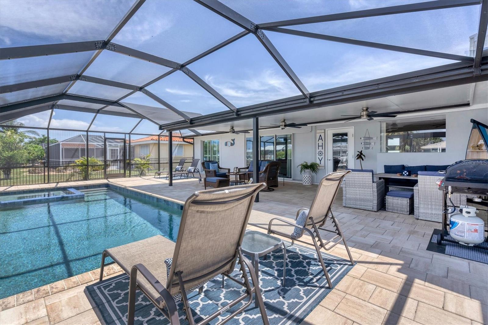Ilhas de Punta Gorda.... PARCIALMENTE MOBILIADO - Casa linda e atualizada com vistas incríveis e 10 minutos de acesso à água para Charlotte Harbour. Planta aberta com vista para o mar de quase todos os quartos. A cozinha possui ilha grande, balcão elevado, eletrodomésticos em aço inox e grande despensa. A cozinha é aberta para a sala com lareira e zona de bar com adega refrigerada. Controles deslizantes extra grandes da sala de estar se abrem para uma varanda espaçosa, perfeita para viver ao ar livre. Relaxe na sua piscina privada aquecida e spa. Quarto principal com persianas, banheiro privativo e closet. Os controles deslizantes principais se abrem para Lanai/piscina e bela vista do canal e nascer do sol incrível. A grande unidade circular permite muito estacionamento e acesso à garagem. Novo telhado de metal 2023, Novo gabinete de tela 2023, Novo telhado Lanai com ventiladores 2023. Pintura fresca exterior 2023 e Interior 2024. Novo HVAC instalado 2024. Ótima localização perto do centro de Punta Gorda Esta casa é imperdível!