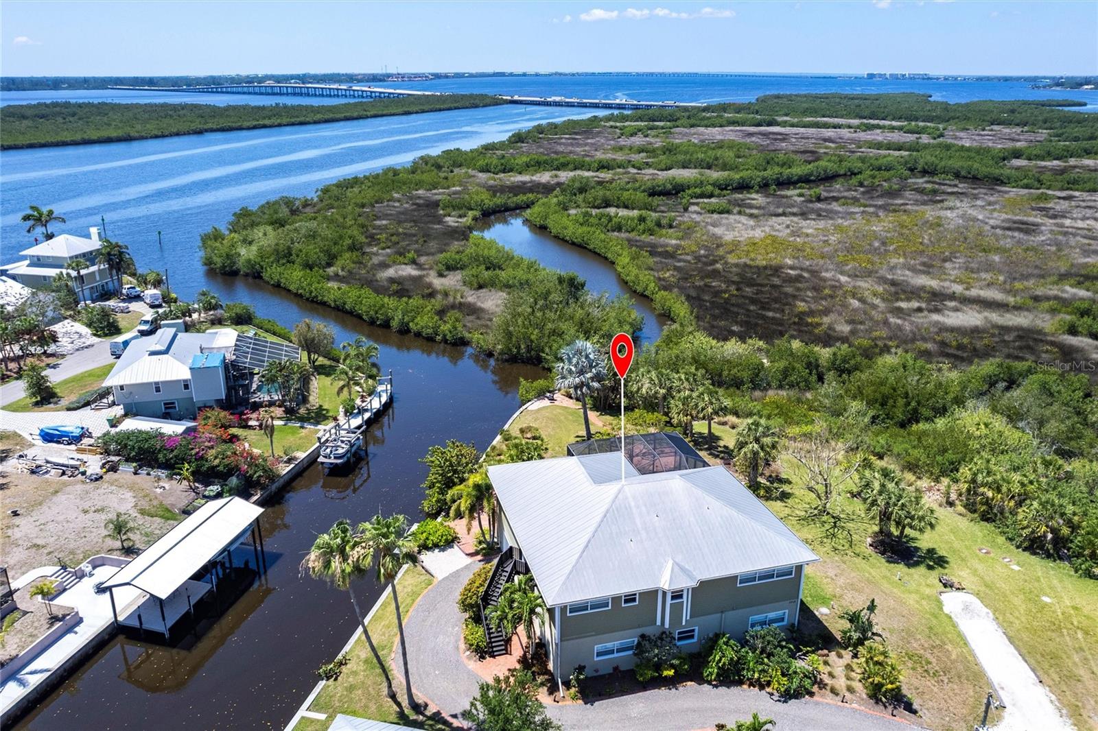 Lot de canto de grandes dimensões, aninhado no rio Serene Peace com 208 pés de paredão; Esta propriedade lindamente projetada oferece quase 3.300 pés quadrados de espaço acabado e sem inundações. A residência principal possui 3 quartos espaçosos (mais sala flexível) e 2,5 banheiros, enquanto uma suíte privada de sogro apresenta seu próprio quarto, banheiro, cozinha completa e área de estar-perfeita para hóspedes ou vida multigeracional. Esta casa personalizada mostra atenção excepcional aos detalhes. Desde o momento em que você entra, é recebido por vistas deslumbrantes à beira-mar, graças a um design de conceito aberto que combina perfeitamente a vida interna e externa. Tetos de volume crescentes e janelas amplas inundam o espaço com luz natural, criando um ambiente brilhante e arejado. Uma varanda espaçosa tem vista para a área da piscina e se estende até a água tranquila além. O coração da casa é a cozinha cuidadosamente projetada, com armazenamento abundante, um conjunto de aparelhos de aço inoxidável-incluindo um fogão a gás, forno embutido e microondas-uma ilha de preparação central com assentos, bancadas de granito, backsplash de ladrilhos correspondentes. Um espaço de jantar formal/informal oferece flexibilidade para refeições diárias ou entretenimento. Para maior conveniência, a lavanderia está localizada perto da cozinha e inclui um idiota para a garagem - perfeita para transportar facilmente mantimentos ou lavanderia entre os pisos. O layout de quartem divididos, bem projetado, oferece privacidade ideal. A luxuosa suíte primária é um verdadeiro retiro, completo com carpete macio, um teto de bandeja elegante e vários armários, incluindo um generoso walk-in. O banheiro privativo é igualmente impressionante, com uma banheira de imersão relaxante, uma vaidade estendida com pias duplas e um espaçoso chuveiro com uma porta de vidro sem moldura. Dois quartos adicionais são confortavelmente dimensionados e compartilham um banheiro de hóspedes completo bem equipado. Saia de um lanai coberto de tijolos com ventiladores de teto, uma cozinha de verão totalmente equipada e vistas pitorescas da piscina e spa aquecidos-um espaço ideal para relaxar e apreciar a beleza natural do rio Peace. As portas francesas se abrem para uma sala versátil que pode servir como um quarto ou escritório privado adicional, completo com sua própria sala de utilidade anexada com conexão de lavanderia. Para maior conveniência, também há um banho de bilhar separado e acesso direto à suíte do sogro. Desfrute do nascer do sol e do pôr do sol de tirar o fôlego sobre a serena reserva de 18 acres-um local incrível para assistir peixes-boi e golfinhos em seu habitat natural. A casa também possui telhado de metal, janelas de impacto e persianas para os controles deslizantes, garagem de dois carros de A/C de grandes dimensões com bancada de trabalho e iluminação atualizada, lareiras independentes, a escada em espiral conecta os espaços ao ar livre, tanque LP no solo, duas áreas de pátio, com fogo e muito mais. A propriedade também possui uma doca, oferecendo acesso rápido e fácil de barco à vila de Fisherman, Charlotte Harbor e ao Golfo do México. Se você está jantando à beira da vila de Fisherman ou no luxuoso resort Sunseeker, ambos estão a apenas um passeio de barco de 5 a 10 minutos. ** Por favor, aproveite o tour virtual interativo 3D associado a esta listagem junto com um link para uma música que o vendedor escreveu sobre a propriedade **