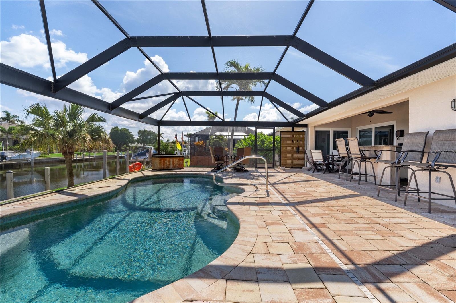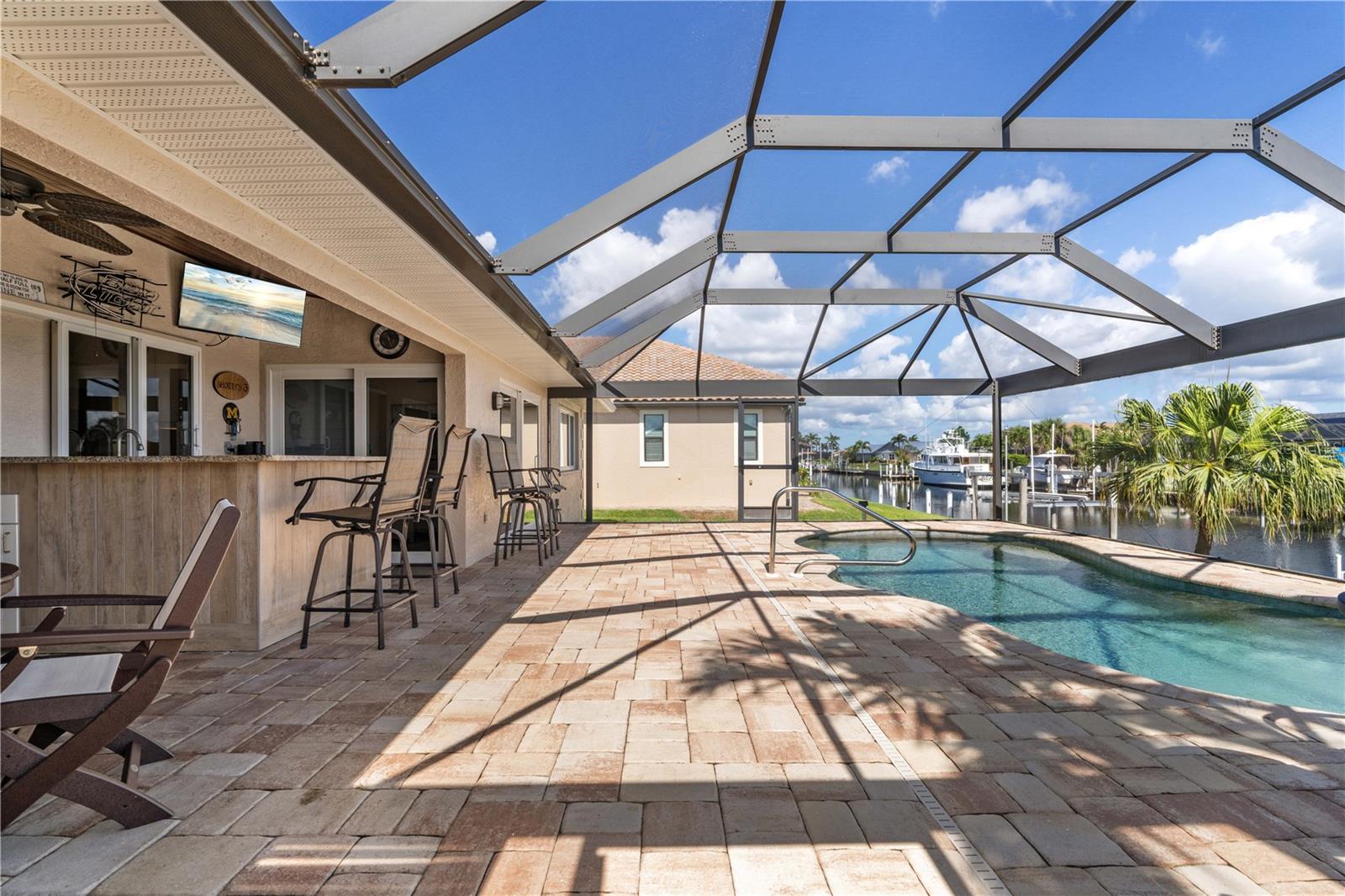ACESSO A VELEIRO ATUALIZADO NAS ILHAS DE PUNTA GORDA COM ACESSO RÁPIDO A VELEIRO - NOVO TELHADO 2025 - Esta casa à beira-mar, completamente renovada, com 2 quartos/2 banheiros, está em condições de se mudar. Oferecendo 80 pés de paredão com uma doca de 45 pés nos fundos, o acesso de barco é tão impressionante quanto a casa. No interior, o interior foi totalmente remodelado com atenção a cada detalhe. O layout apresenta uma sala de estar e sala de jantar formal em forma de L, além de uma sala familiar separada com cozinha moderna conectando tudo. As características arquitetônicas incluem tetos de catedral, piso de mármore em todas as principais áreas de estar e madeira projetada no quarto principal, portas de núcleo sólido com novas ferragens, luminárias contemporâneas e ventiladores de teto, além de venezianas nas janelas. A cozinha apresenta balcões de granito, armários de madeira maciça, eletrodomésticos de aço inoxidável (incluindo forno de convecção), além de iluminação sob o armário que ilumina suavemente o backsplash de azulejos. Da sala de estar formal e área de jantar adjacente à sala de estar ao lado da cozinha, todos os cantos deste layout são inundados de luz natural graças às grandes janelas e portas de vidro deslizantes. A casa foi projetada para entretenimento interno/externo perfeito com portas de vidro deslizantes que se abrem da sala de jantar e da sala de família para a varanda. A suíte master é um retiro privado, completo com acesso direto à varanda, banheiro privativo reformado e closet grande. O layout dos quartos divididos oferece privacidade aos proprietários e hóspedes. Uma porta de celeiro separa a cama e o banheiro dos hóspedes do quarto familiar, aumentando a privacidade oferecida aos hóspedes. Do lado de fora, a varanda de tijolos circunda a piscina subterrânea aquecida de água salgada. A gaiola da piscina com moldura garante que a vista do canal permaneça desobstruída. Amplo quarto na varanda para desfrutar deste espaço ao ar livre. Uma cozinha de verão com balcão de granito permite que você se divirta com estilo. A poucos passos da porta dos fundos fica a doca de concreto de 45 pés com elevador para barco. Conexões de água e elétrica estão disponíveis no cais. O Backyard é perfeitamente adequado para velejadores ávidos que esperam mais do que apenas um lugar para atracar - garantindo que seu barco esteja pronto para sua próxima aventura - seja um dia de pesca, um cruzeiro para almoçar em um restaurante local à beira-mar ou até mesmo um cruzeiro ao pôr do sol. Outras comodidades incluem proteção contra furacões em toda a casa com janelas e controles deslizantes resistentes a impactos e um painel de Kevlar protegendo a porta da frente, bem como uma garagem anexa para dois carros com espaço para armazenamento. NOVO TELHADO contratado para ser instalado em meados de setembro de 2025. Não perca a oportunidade de possuir esta casa à beira-mar atualizada e pronta para morar. Marque uma consulta hoje.