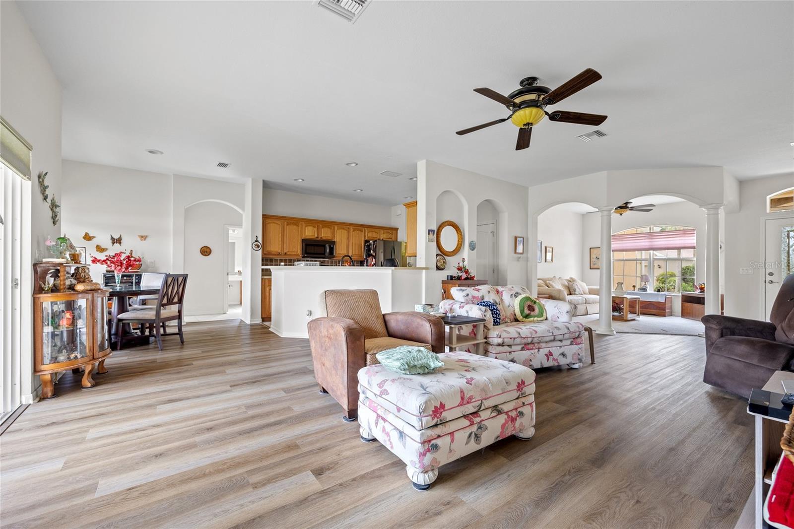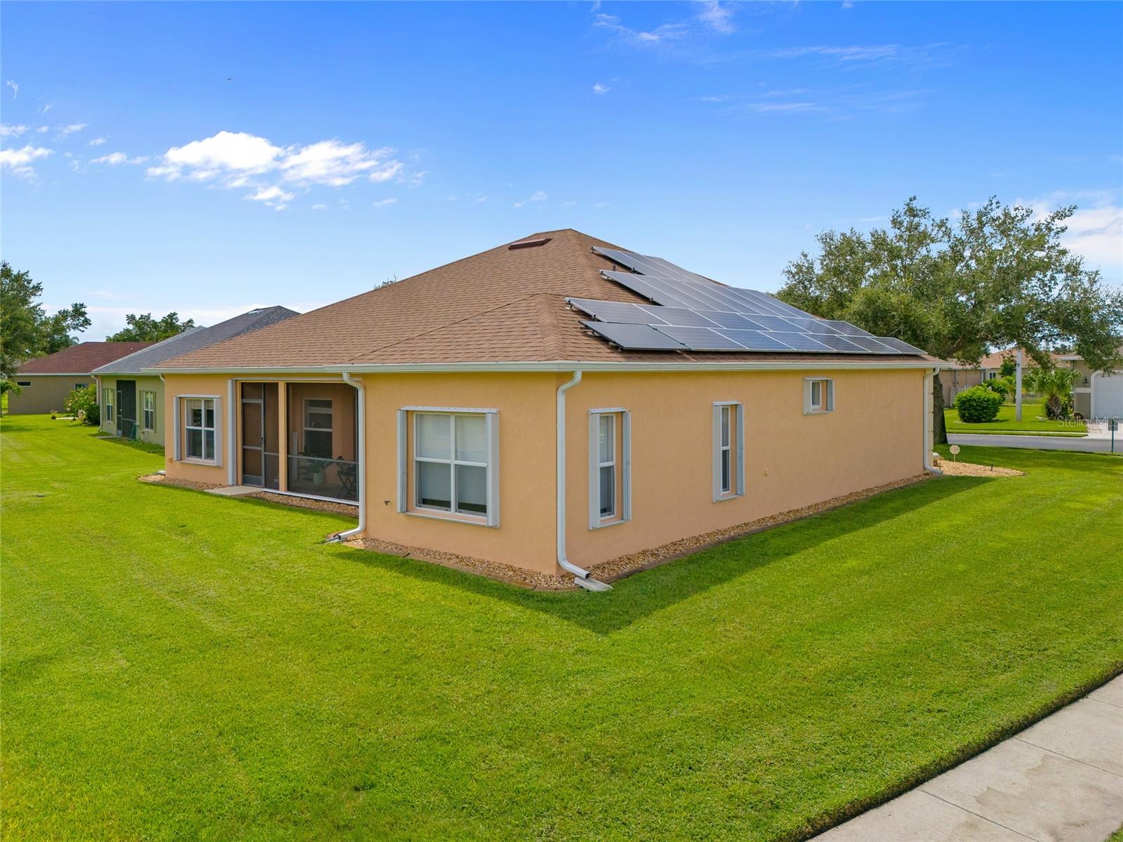 LOTE DE CANTO! ESPAÇOSA CASA DE 3 QUARTOS MAIS DEN, 2 BANHEIROS, GARAGEM PARA 2 CARROS LOCALIZADA NO COMUNIDADE FECHADA DE SUNCOAST LAKES. O vendedor está disposto a vender mobilado. Máxima tranquilidade com venezianas contra furacões, telhado mais novo, AC mais recente, gerador de reserva automático Kohler 20k para toda a casa com tanque próprio de 250 galões enterrado e sistema solar próprio de 7,82 kW instalado em 2019 e pago. Planta baixa aberta com 2.025 pés quadrados de área de estar, tetos altos e muito espaço para viver em família ou receber hóspedes, e ADA acessível por toda parte. Entre em uma sala de estar e jantar com grande controle deslizante, ampla iluminação natural, decoração neutra e entradas em arco. A cozinha oferece armários de madeira, eletrodomésticos de aço inoxidável e balcão para café da manhã, criando um espaço perfeito para entretenimento. O generoso quarto principal tem tetos altos, amplo closet e controle deslizante para a varanda. O banheiro privativo dispõe de pias duplas e box amplo. Dois quartos de hóspedes são de bom tamanho e compartilham um banheiro completo. Volte para a varanda com tela para relaxar à sombra. Os recursos adicionais incluem piso de vinil de luxo mais recente e detector de calor na garagem conectado ao sistema de alarme. Bairro muito bem conservado, limpo e tranquilo que aceita animais de estimação, perfeito para caminhar e correr. As comodidades do Suncoast Lakes incluem acesso fechado, piscina comunitária, parque/playground, água para irrigação, TV a cabo e lixo. Localização central, perto de golfe, lojas, escolas e a cerca de 8 km do centro histórico de Punta Gorda, com eventos comunitários, entretenimento, pesca e passeios de barco. Não perca esta oportunidade! Agende sua exibição privada hoje mesmo!