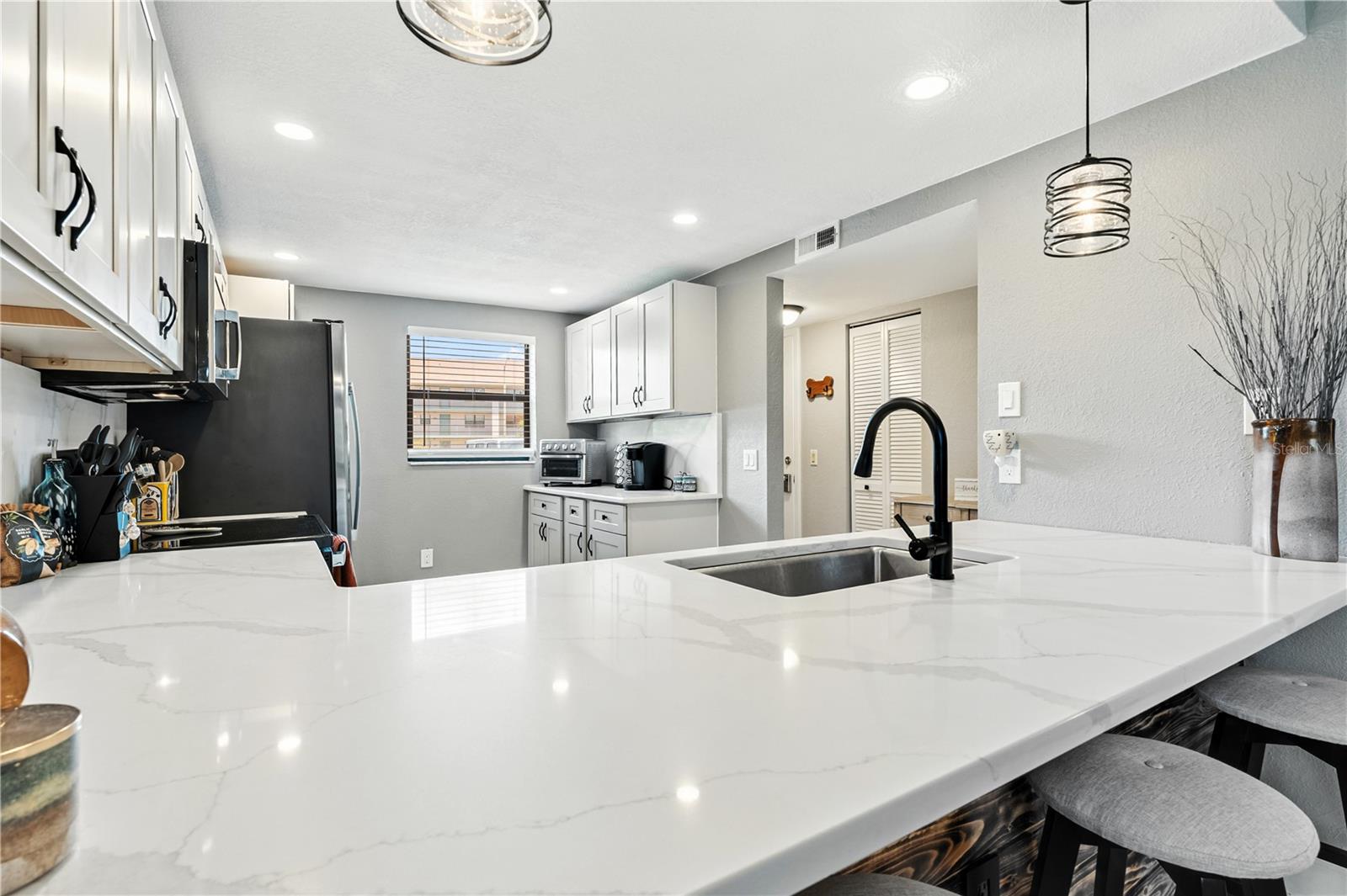 Mova -se pronto !!!! Bem-vindo a este condomínio de unidade final de 2 quartos e 2 quartos e 2 banheiros com vistas verdes, oferecendo valor e conforto excepcionais. A planta de conceito aberto e o quarto dividido combina as áreas de estar e jantar, criando um espaço convidativo perfeito para relaxar ou divertir. Sem tapete por toda parte - desfrute de pisos e ladrilhos elegantes de tábua de vinil de luxo (LVP) para facilitar a manutenção e uma sensação moderna. Os recursos de cozinha bem equipados e atualizados: Uma barra de café da manhã Muito espaço no gabinete Bancadas atualizadas Todos os aparelhos são 2023 e incluídos A espaçosa suíte primária se orgulha: Um closet Uma área de vaidade de private Um chuveiro renovado O segundo quarto é igualmente espaçoso e é atendido por um banho de hóspedes completo com uma combinação de banheira/chuveiro. Saia para o seu Lanai particular com vistas para a reserva, perfeita para o café da manhã ou o relaxamento da noite. Recursos adicionais incluem: Lavanderia interior com lavadora e secadora em tamanho real Novo telhado instalado em fevereiro de 2023 Desfrute de uma série de comodidades comunitárias, incluindo: Grande piscina aquecida TENNIS TRICUPTOS Shuffleboard Área da grelha Clubhouse Estacionamento no local para barco/trailer/caminhão de trabalho Localizado a poucos minutos da I-75, Walmart, campos de golfe e uma variedade de opções de compras e refeições-este condomínio oferece conveniência e estilo de vida.