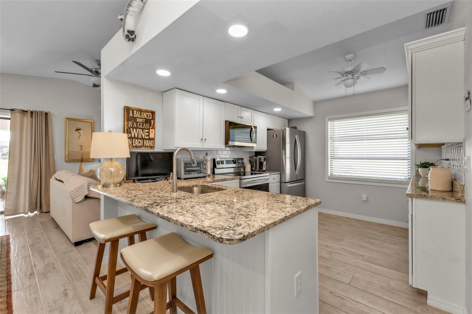 Bem a tempo do melhor clima que a Flórida tem a oferecer! Linda casa de Deep Creek, com excelente posição para oferecer um gramado grande e verde e verde no quintal, tornando -o certo para entretenimento e relaxamento. Deep Creek é um bairro restrito e procurado. Todas as casas são bem paisagísticas e convidativas. Esta casa tem todos os atributos de uma nova casa com muitas atualizações. Foi reformado profissionalmente de cima para baixo. Possui três quartos de bom tamanho e dois banheiros completos, com vaidades brancas com tampos de mármore e belas ladrilhos de porcelana para complementar. A cozinha possui armários de agitadores brancos, bancadas de granito e novos aparelhos de aço inoxidável. A casa possui um piso plano aberto, com controles deslizantes na área da sala da família e o quarto principal, levando ao grande lanai com todos os novos rastreamentos e suportes. Há uma garagem de dois carros com muito espaço de armazenamento. O telhado tem 6 anos e há um novo HVAC instalado há um mês. Não em uma zona de inundação.