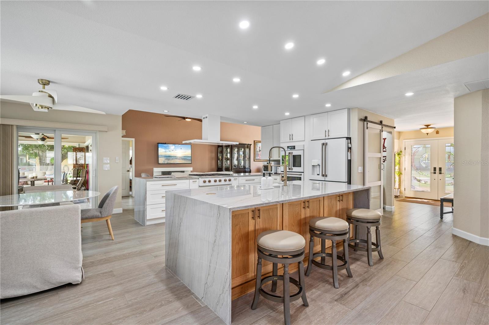 MUDANÇA PRONTA! Algumas casas têm quartos. Este tem destinos - uma cozinha construída para festas, um pátio feito para o pôr do sol e uma área de piscina que transforma fins de semana comuns em miniférias. Distribuída por quase meio acre de beleza paisagística com vistas pacíficas do cinturão verde, esta joia de Deep Creek combina calor, elegância e mais de US$ 200.000 em atualizações atenciosas. Entre pelas portas de entrada dupla para uma área de estar repleta de luz, com lareira elétrica e fácil acesso à área de jantar. Belo piso de tábuas e tetos altos de até 3,6 metros de altura melhoram o espaço geral da casa. O ponto focal divertido é a remodelação da cozinha de 2023 - com eletrodomésticos GE Café de última geração, armários de madeira maciça, balcões de quartzo, pia de casa de fazenda e despensa personalizada de 5'x10'. O fogão a gás impecável e o forno duplo de convecção com capacidade de fritadeira tornam cada refeição uma ocasião. Da cozinha, reúna-se na sala de família com bar personalizado adjacente com serviço de refrigerador de vinho, ou abra os controles deslizantes para a varanda protegida e as águas cristalinas da piscina recapeada. O layout de quarto dividido oferece privacidade para a suíte do proprietário, completa com closet duplo e banheira tipo spa, enquanto os hóspedes desfrutam de sua própria ala com acesso à piscina. Saia para a varanda ao ar livre completa com pérgula, forno de pizza a lenha e fogueira sem fumaça Breeo. Atualizações como janelas e portas causadas pelo impacto do furacão (2023), aquecedor de água a gás sem tanque, tratamento de água para toda a casa Halo (2023), encanamento reformado e pintura fresca 2023 por dentro e por fora garantem conforto e eficiência nos próximos anos. Tudo a poucos minutos da I-75, campos de golfe, lojas, restaurantes, da histórica Punta Gorda, da Vila dos Pescadores e do Aeroporto de Punta Gorda.