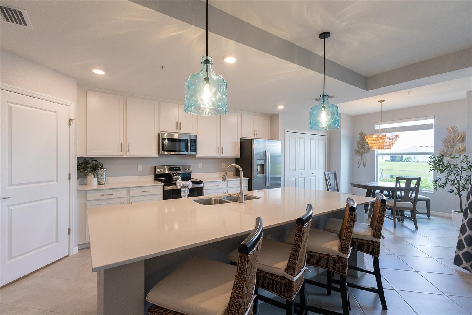 Viva o estilo de vida do Florida Resort – DEEDED GOLF incluído! Entre no Heritage Landing Golf & Country Club e em seu novo condomínio Veranda Diangelo pronto para uso - onde luxo, conveniência e diversão fazem parte da vida cotidiana. Esta casa nova e livre de manutenção vem com duas varandas privativas que oferecem vistas serenas do mar, nascer do sol vibrante e pôr do sol de tirar o fôlego em Punta Gorda. No interior, a planta aberta e cheia de luz é feita para relaxar e entreter. A cozinha gourmet brilha com bancadas de quartzo, iluminação pendente chique, armários shaker, uma grande ilha e duas despensas para todas as suas necessidades de armazenamento. A suíte principal acomoda facilmente uma cama king-size e possui dois closets, além de uma banheira inspirada em spa com penteadeira de quartzo, pias duplas e box amplo. Os hóspedes desfrutam de seu próprio quarto privativo e banheiro completo, enquanto a sala flexível funciona como escritório doméstico, sala de hobby ou terceiro quarto. Mude-se apenas com sua mala! Além da sua porta está um estilo de vida de classe mundial: Escritura de adesão de golfe a um dos campos mais desejáveis da SWFL Piscina estilo resort e bar tiki Pickleball, tênis, bocha Spa e centro de fitness com serviço completo Jantares requintados no clubhouse e eventos organizados pela comunidade ***O proprietário tem arrendamentos em vigor para fevereiro e março que devem ser honrados. A renda de $ 12.000 pelos dois meses de aluguel vai para o NOVO proprietário.***
