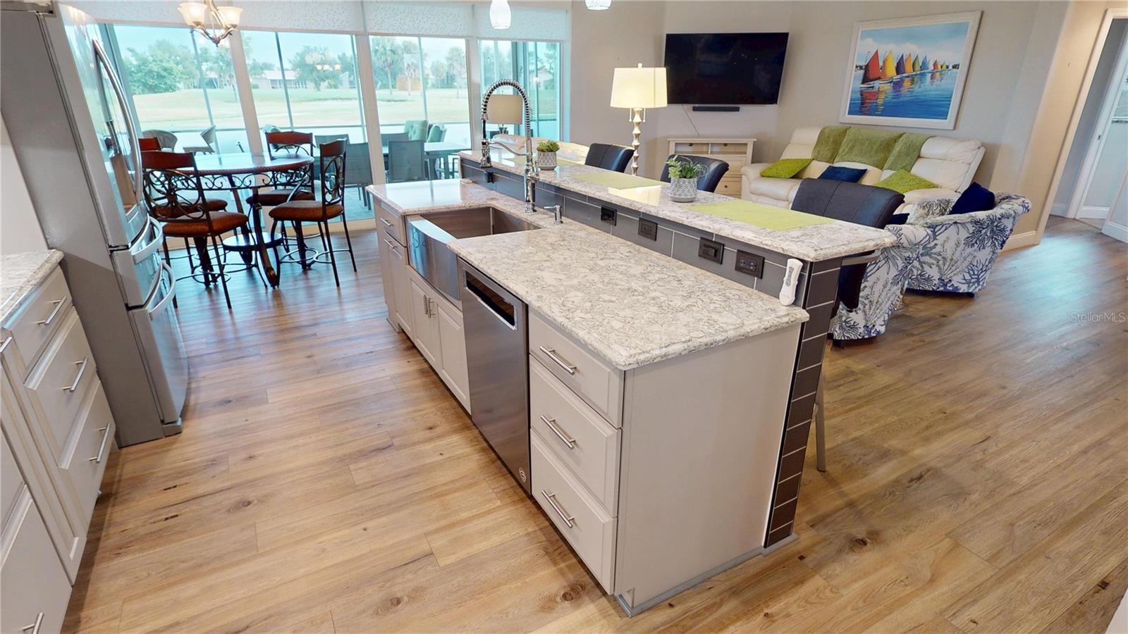 Luxo de movimentação Ready in Seminole Lakes Bem -vindo à sua casa lindamente atualizada no condomínio fechado de Seminole Lakes. Desde o momento em que você chega, o apelo convidativo define o tom com uma porta da frente alegre, exterior neutro, calçada de pavimentação, paisagismo fresco, nova freios e postagem de lâmpada atualizada e caixa de correio. Melhorias recentes incluem uma porta de garagem com classificação de furacões e teto mais recente, oferecendo tranqüilidade. No interior, você encontrará acabamentos neutros e pisos de vinil de luxo por toda parte. Com três quartos e dois banheiros, a casa foi totalmente remodelada nos últimos cinco anos. Todas as janelas e controles deslizantes são classificados por furacões, e o Lanai possui duas persianas elétricas para maior segurança. O primeiro quarto de hóspedes perto da entrada inclui um armário duplo personalizado e um banho remodelado com vaidade de quartzo - a banheira é o único recurso original. O segundo quarto de hóspedes, atualmente um escritório, fica em frente à área de jantar formal e adjacente à área de estar principal. No coração da casa, há uma cozinha personalizada com ricos armários de madeira, balcões de quartzo, aparelhos de aço inoxidável, pia da fazenda e torneira profissional. Prateleiras de retirada, gavetas profundas e uma estante de livros embutida maximizam o armazenamento e o estilo. A iluminação pendente aquece a barra de café da manhã, perfeita para refeições casuais. Fora da cozinha, uma despensa e lavanderia bem equipada adicionam funcionalidade com espaço adicional para despensa, balcões de quartzo, lavadora/secadora, pia de lavanderia e armazenamento abundante-resumindo a despensa ou a área de estadiamento de um mordomo ao divertir. A suíte primária é um retiro privado com armários e controles deslizantes personalizados para o Lanai. O banho remodelado possui balcões de granito, pias duplas, armários personalizados, um vaso sanitário de altura de conforto com bidê e um chuveiro romano com ladrilhos de cascata, cabeça de chuva, pulverizador de mão e banco embutido. A vida ao ar livre brilha aqui. O lanai exibido com pavimentadoras, malha sem ver e ventiladores de teto duplo tem vista para o 5º tee e um lago tranquilo. É o cenário perfeito para café da manhã ou vinho da noite. O Seminole Lakes oferece mais do que um lar - é um estilo de vida. Os moradores desfrutam de um campo de golfe executivo de 18 buracos, além de tênis, pickleball e bocha. Com taxas mensais baixas e segurança fechada, a comunidade é uma das mais procuradas de Punta Gorda. A poucos minutos do centro da cidade, US 41 e I-75, você terá fácil acesso a compras, refeições e atrações à beira-mar enquanto desfruta da paz de um bairro particular. Esta casa foi meticulosamente mantida, com uma lista completa de atualizações disponíveis para revisão. Vá para dentro e comece a desfrutar do estilo de vida da Flórida com o qual você sonha - aqui em Seminole Lakes.