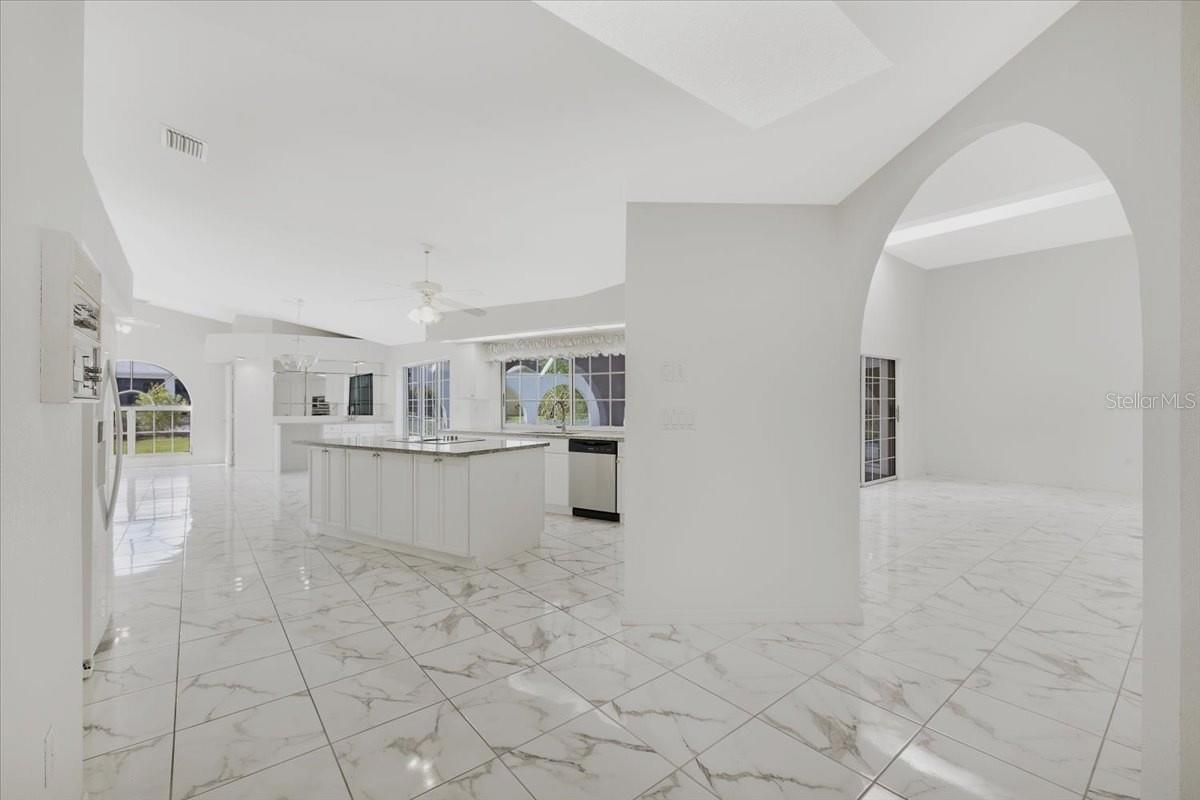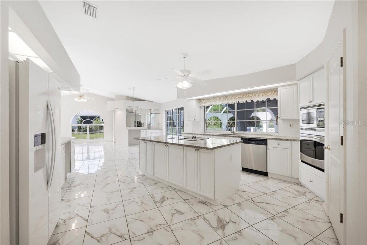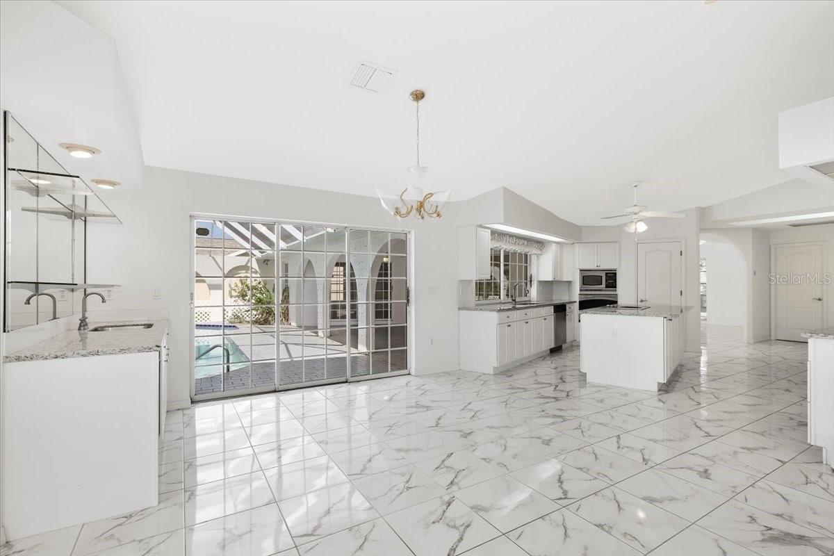 Bem-vindo a esta residência brilhante e arejada na comunidade altamente procurada e restrita a ações de Deep Creek. Oferecendo 2.943 pés quadrados de espaço de estar, esta casa lindamente decorada possui 3 quartos, 3 banheiros e uma garagem de 2 carros de grandes dimensões, perfeitamente situada em um lote tranquilo e sem saída com vistas serenas do cinturão verde. A partir do momento em que você chega, o apelo do meio -fio brilha com paisagismo exuberante, vegetação vibrante e uma varanda da frente arqueada clássica com entrada coberta. O exterior reflete o estilo atemporal da Flórida com acabamento de estuque, acabamento decorativo e uma garagem prolongada que leva à garagem. Grandes janelas frontais e uma entrada impressionante de arco duplo permitem que a luz natural derrame para dentro, definindo o tom para o que está por vir. Entre na expansiva sala de estar, onde tetos altos com clarabóias, lustres elegantes e pisos de ladrilhos com aparência de mármore criam uma sensação de grandeza. Portas de vidro deslizantes largas abertas para o lanai e a piscina, misturando a vida interna e externa sem problemas. O layout de conceito aberto continua na sala da família, na área de jantar e na cozinha. O espaço para refeições inclui um bar molhado embutido-ideal para entretenimento-enquanto a cozinha oferece uma ilha central com cozinheiro, forno inoxidável embutido e microondas, armários abundantes e espaço generoso. As portas de vidro deslizantes convidam uma luz ainda mais natural e fornecem acesso direto ao ar livre. A suíte primária privada possui entrada de duas portas duplas, carpete de pelúcia, acesso à piscina, closet, vaidade de pia dupla, chuveiro, banheira de imersão a jato, bidê e armário de linho. Os dois quartos de hóspedes compartilham um conveniente banheiro de Jack e Jill. Ao ar livre, uma lanai coberta espaçosa com ventiladores de teto tem vista para a área de piscina exibida, com uma piscina brilhante com cachoeira, decks de pavimentadora de tijolos e acesso a um banho de bilhar dedicado com chuveiro. Os destaques adicionais incluem lavanderia com lavadora e secadora, persianas de furacões, além de um novo telhado e clarabóias instaladas em 2023. Idealmente, localizada a poucos minutos de golfe, compras, jantar, entretenimento, I-75, instalações médicas e parques à beira-mar. ** Por favor, aproveite o tour virtual interativo 3D associado a esta listagem **