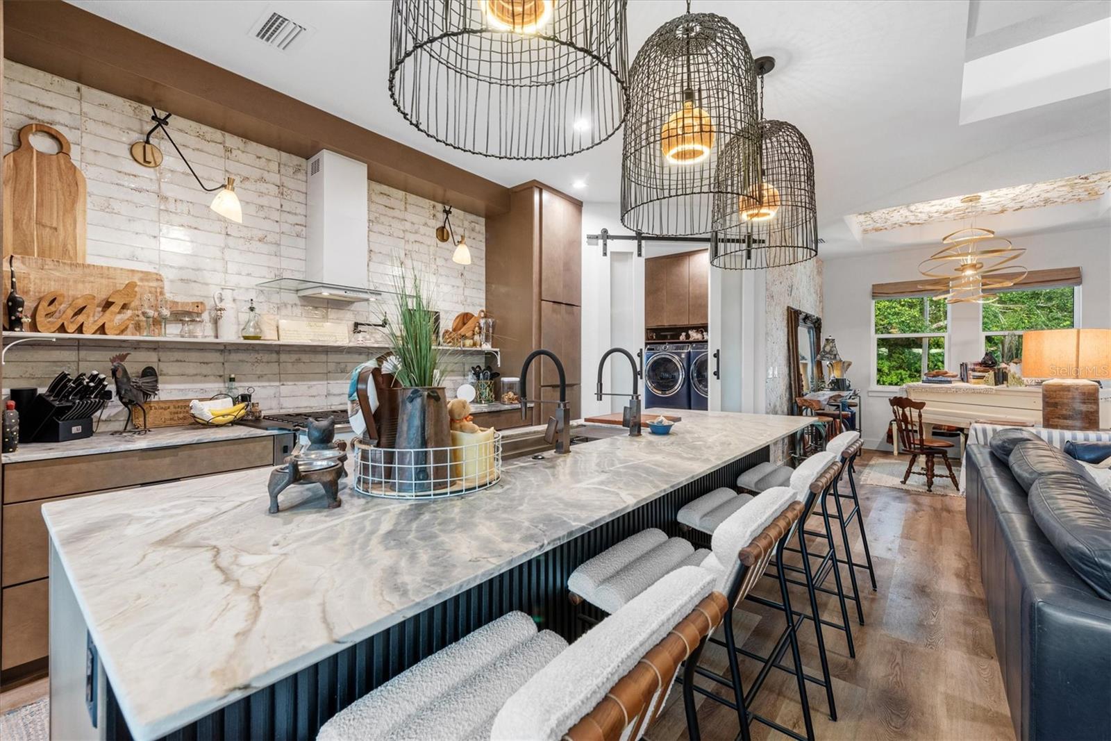 Uma obra-prima única na água! Bem -vindo ao 3001 Banyan Way, Punta Gorda, concluído em 2024, onde a arte arquitetônica encontra luxo intransigente. Situado em um estacionamento à beira -mar com vistas que se cruzam, 211 pés de paredão e pôr do sol notável, esta residência sob medida foi criada com todas as atualizações imagináveis para criar uma verdadeira casa de sonho de designer. Simplesmente deslumbrante! A partir do momento em que você chega, o apelo do meio -fio é inegável - cores externas ultra modernas e poderosas inspiram os sentidos. Um deleite visual são os muitos sotaques externos, incluindo a placa de acabamento Hardi e o revestimento de cimento, um amplo parede de contenção iluminado, garagem deslocada e conexão de breezeway com pilares inteligentes de feixe de madeira. Paisagismo profissional com iluminação de grife, uma garagem de pavimentação de três peças interligada e uma cerca de ferro com três portões de travamento emolduram a parte de trás da propriedade até o paredão. Entre na varanda da frente da réplica de Chicago, sob um teto de língua e abotove com iluminação embutida e através de uma impressionante porta de entrada de ferro. Lá dentro, todos os quartos contam uma história de artesanato e indulgência. A sala de estar atordoa com tetos de bandeja de gesso veneziano, vigas dramáticas, uma lareira linear de 100 polegadas e uma parede completa de características de quartzito. A cozinha gourmet é uma peça de exibição: bancadas de quartzito azul dolomita por toda parte, aparelhos brancos foscos da GE Café, incluindo uma faixa de propano de seis queimadores, duas geladeiras sob controle de balcão e ladrilhos de metrô de altura total com uma prateleira de quartzito. Uma despensa e a roupa adjacente funcionam como um bar e um espaço de preparação, com aparelhos inteligentes de Cobalt Blue GE, armazenamento embutido, uma gaveta de bebidas alcoólicas e um assento de janela iluminado por lustres. A suíte master é um santuário com acabamentos em gesso veneziano, design de teto personalizado e um banho semelhante ao spa, oferecendo uma banheira independente sob a luz do lustre, um chuveiro de caminhada com jatos corporais, pias de mármore duplo e paredes artísticas. Os quartos adicionais mostram a verdadeira individualidade, incluindo uma sala de música decorada com estuque de folhas douradas, uma parede de características sob medida e um lustre dramático. A vida ao ar livre chega ao nível do resort. Uma água de água salgada, piscina de Pebbletec aquecida com iluminação LED, é cercada por um amplo deck de entretenimento pavimentado. A varanda traseira coberta apresenta tetos de língua e ranhura, uma cozinha ao ar livre com grelha e pia, iluminação embutida, ventiladores de teto e portas de ferro francês duplas que convidam a vida interna/externa sem costura. Na borda da água, a doca composta é construída para o velejador grave, com energia da costa, um elevador de 12.000 libras e estacas de grandes dimensões prontas para uma estrutura de telhado. Desfrute de um passeio de barco de 15 minutos ao longo da via hidrográfica de Veneza até Alligator Creek, depois para o porto de Charlotte e o Golfo além. Todo detalhe é deliberado: o isolamento de espuma de pulverização por toda parte, aquecedor de água sem tanque, portas e janelas de impacto por furacões, persianas remotas, iluminação integrada ao beiral e paisagismo, a tábua de vinil de luxo de maior grau de luxo e piso de telha de pedra e um gerador de casa com conexão com conexão. A garagem isolada de 24'x24 de 24'x24 é uma maravilha em si, com pisos epóxi, mini-split a/c plug, plug, sistema de armazenamento e vistas de canal de enquadramento de janelas grandes. Esta residência é mais do que um lar - é uma declaração de gosto, design e estilo de vida. Misturando perfeitamente os materiais do Velho Mundo com sistemas de ponta, a 3001 Banyan Way é realmente uma jóia única. Minutos de todo esse Punta Gorda tem a oferecer, a Village do Fisherman, o Harbor Walk, o Punta Gorda Yacht Club e muito mais!