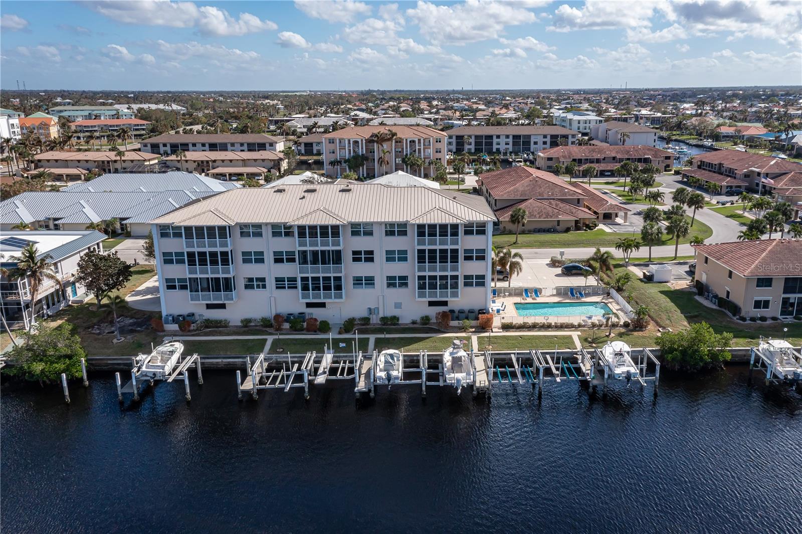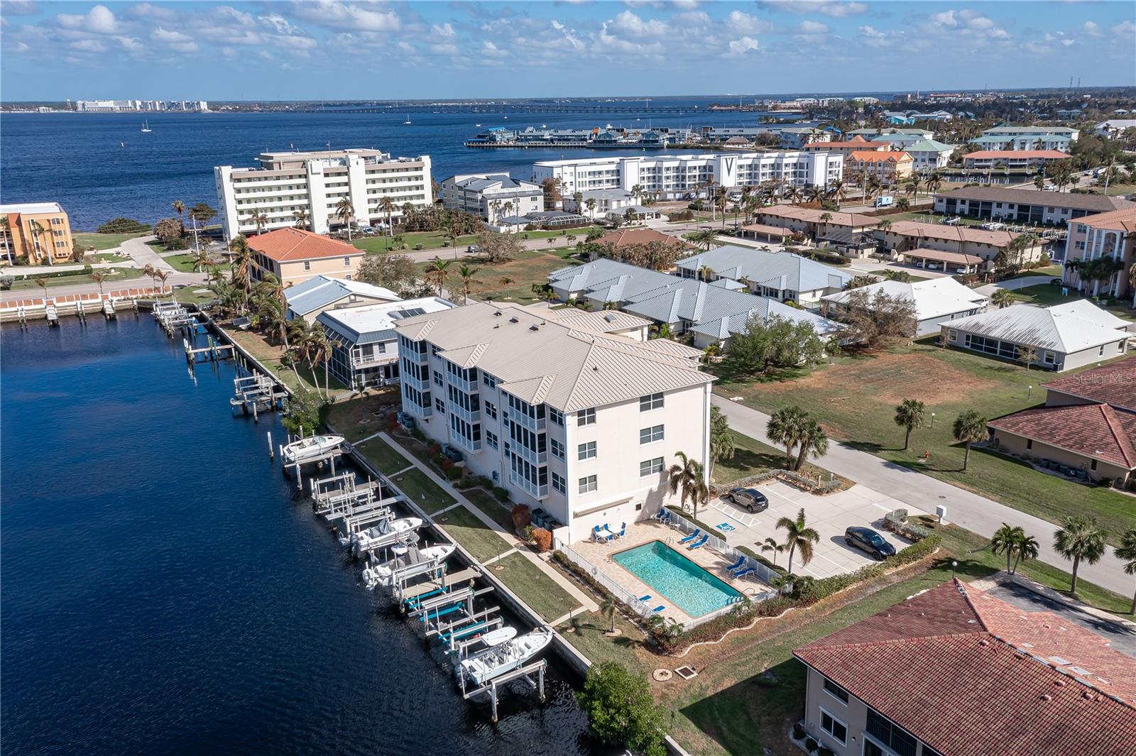 Condomínio espaçoso à beira -mar em PGI com doca de ação e acesso rápido a Charlotte Harbor! Este condomínio no Captain's Landing em Punta Gorda Isles tem tudo: uma ótima localização, doca de ações, vista para o canal e acesso rápido ao porto de Charlotte. A unidade possui um grande layout da sala com mais de 2.000 pés quadrados de espaço, dois quartos grandes, den com portas francesas, belos pisos de madeira, tetos altos, cozinha para comer e área de jantar formal adjacente. Janelas grandes e uma parede de portas de vidro deslizantes fornecem muita luz natural. Great Room se abre para o lanai exibido, estendendo o espaço para fora. Lanai tem piso de azulejos e barra embutida com geladeira de bebida com vista para a bacia do canal e docas abaixo. Pegue sua bebida favorita e desfrute do pôr do sol fabuloso sobre o canal todas as noites, graças à exposição traseira ocidental. A cozinha possui contadores de superfície sólidos, armários de painéis elevados + prateleiras decorativas no final dos armários. A suíte master tem uma grande janela de imagens com vista para o canal, um closet de grande porte e um grande banho mestre. O banho-mestre tem pias duplas, vaidade sentada e chuveiro de bloqueio de vidro. O quarto de hóspedes também possui um closet de grandes dimensões. A unidade possui muito espaço de armazenamento, além dos grandes armários, há um armário de linho no banho de hóspedes, um armário de casaco no vestíbulo e uma grande área de armazenamento na lavanderia, além de uma sala de armazenamento atribuída na garagem. O terceiro quarto possui portas francesas duplas e pode ser facilmente convertido em um escritório/covil, se desejar. A unidade vem com doca de ação nº 5. O Dock possui 10.000 lb de elevador de barco + água e conexões elétricas disponíveis. Desfrute de alguns dos melhores pesca e passeios diretamente do seu quintal. Outras comodidades incluem uma piscina aquecida e coberta, sob estacionamento do edifício. Espaço de estacionamento da Deeded #5 e espaço de armazenamento #5 vêm com a unidade. Aproveite a localização fabulosa - quilômetros de calçada conectam você à vila dos pescadores, Isles Yacht Club, Gilchrist Park, Hounds no Henry Dog Park e no centro histórico. Venha descobrir por que Punta Gorda é considerado uma jóia escondida na SW Florida.