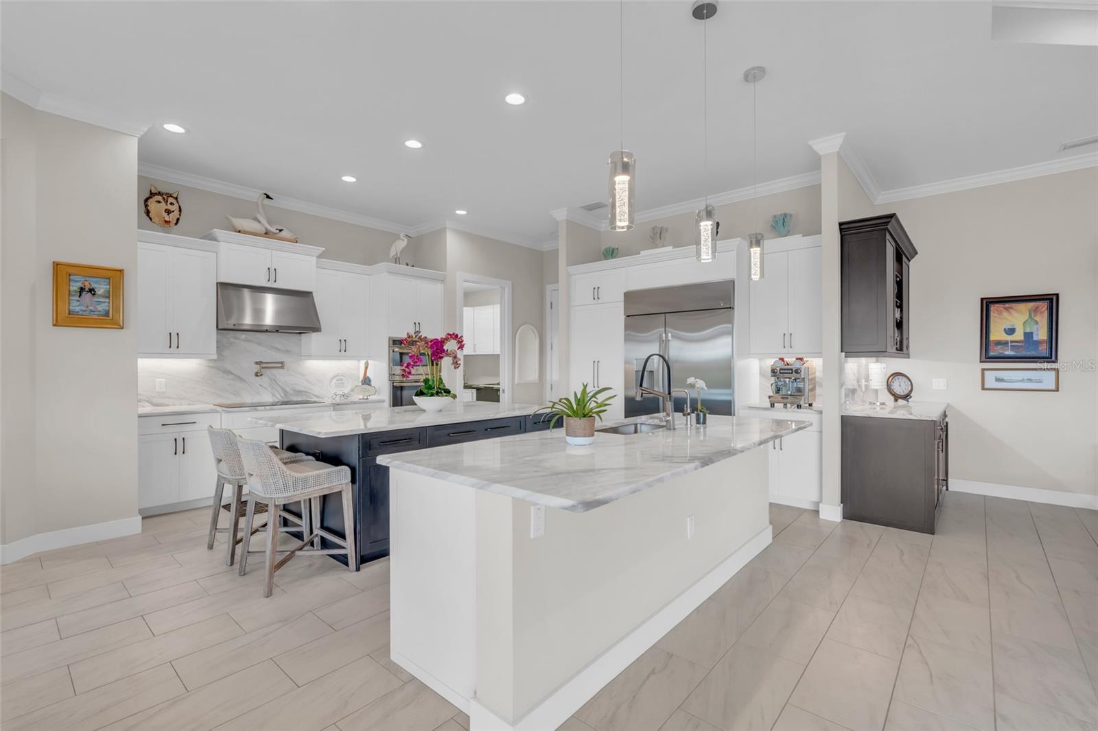 Esta residência excepcional, situada no buraco 13 do campo de golfe Twin Isles, oferece uma mistura cativante de design contemporâneo, acabamentos de alta qualidade e vistas pitorescas do sudoeste para um pôr do sol inesquecível. A partir do momento em que você chega, a ampla calçada e passarela, o paisagismo exuberante, as elegantes portas duplas de vidro e as venezianas em estilo das Bahamas criam uma primeira impressão cativante. Com uma grande planta aberta, esta casa de três quartos e escritório construída em 2020 apresenta janelas e portas de vidro de impacto e tetos altos em caixotões com sancas elegantes. Um controle deslizante de canto zero conecta perfeitamente a sala de estar ao oásis ao ar livre, onde você sem dúvida passará inúmeras noites relaxando enquanto o sol se põe sobre a grande tela da janela panorâmica. A ampla área de entretenimento ao ar livre apresenta uma bela piscina de água salgada aquecida com transbordamento, acabamento Pebble Tec, salões convidativos na piscina, além de controles Pentair, todos com vista para o amplo campo de golfe. Você vai adorar relaxar com os amigos ou jantar ao ar livre sob a ampla varanda coberta com acesso conveniente à piscina. A cozinha do chef é um sonho culinário, com abundantes superfícies de trabalho/entretenimento e armazenamento. Balcões de pedra de alta qualidade e backsplash adicionam um toque especial a esta cozinha matadora, enquanto os eletrodomésticos GE Profile, incluindo uma geladeira de 48 ”, fogão e forno duplo embutido atendem a todas as suas necessidades culinárias. O entretenimento é muito fácil com um bar dedicado com refrigerador de vinho, ilhas duplas com assentos para café da manhã e uma despensa grande e oculta. Em toda a casa, você encontrará um rico esquema de cores neutras, piso de tábuas de cores claras, iluminação personalizada, sancas, venezianas e portas de núcleo sólido. O escritório dedicado, acessado através de portas francesas, inclui um impressionante sistema de escritório personalizado integrado. Prepare-se para se surpreender com a enorme garagem para 4 carros 22x40 com ar condicionado, piso em epóxi e muito espaço para reparos e arrumação! A luxuosa suíte master é um retiro sereno com tetos planos, persianas motorizadas, acesso à varanda privativa, closets duplos e armazenamento adicional embutido. A atraente banheira tipo spa oferece pias divididas, grande banheira de imersão e box amplo personalizado. O layout de quartos divididos garante privacidade aos hóspedes, com duas suítes de tamanhos generosos... uma com acesso direto à varanda e banheiro privativo e a segunda com banheiro privativo com closet. Uma impressionante despensa completa esta casa incrível com um enorme armazenamento para mantê-lo organizado. Janelas de impacto mais uma veneziana motorizada, instalada em 2023, permitem que você passe férias com tranquilidade. Burnt Store Isles é uma comunidade de golfe e passeios de barco com escritura restrita, oferecendo grande proximidade do centro de Punta Gorda, da Vila dos Pescadores, de pesca e passeios de barco de classe mundial e de belos parques.