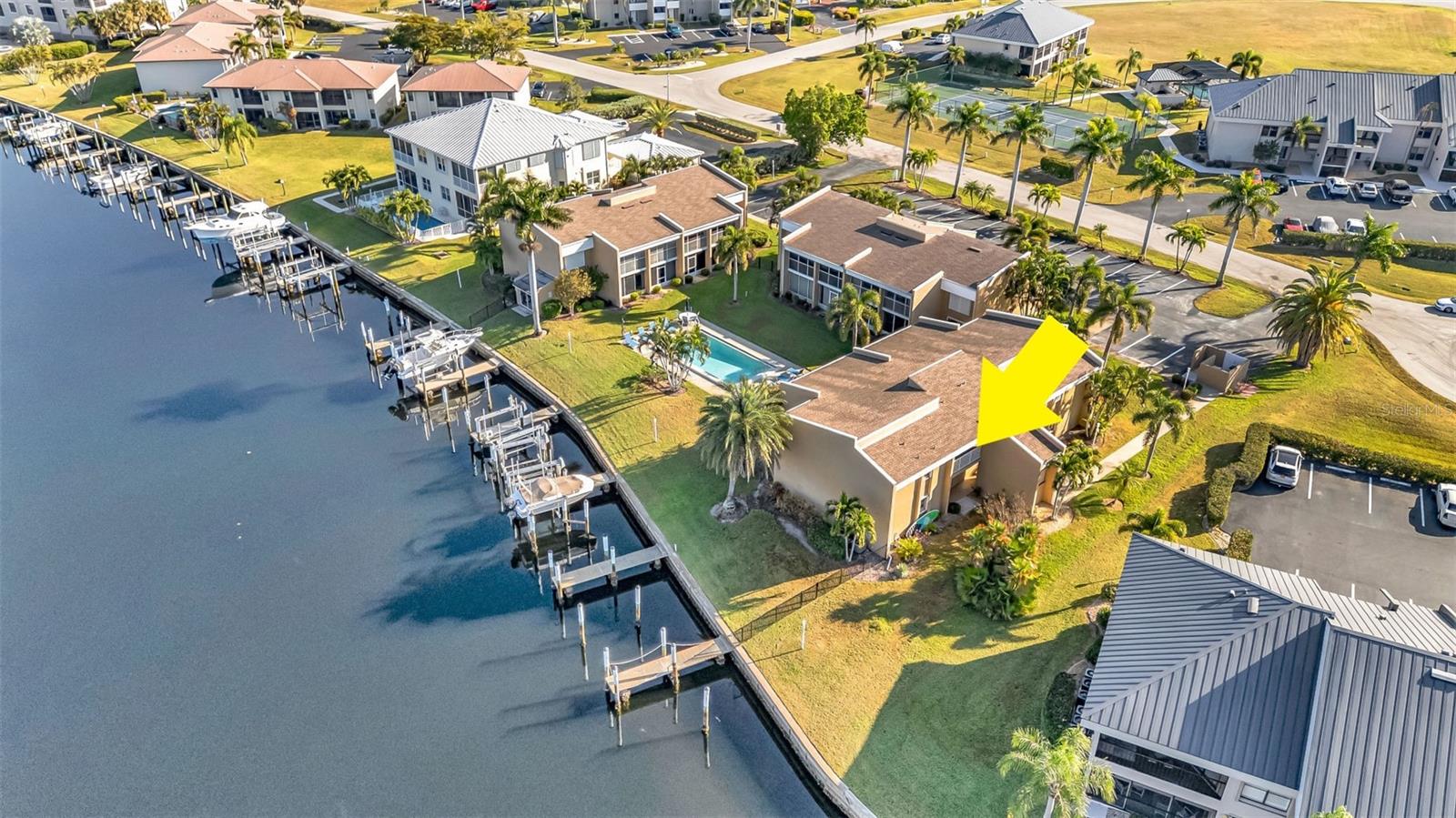Bem-vindo a este condomínio à beira-mar no segundo andar, lindamente conservado, com 2 quartos e 2 banheiros, perfeitamente posicionado para capturar vistas deslumbrantes da água e da piscina. Com uma doca escriturada e uma planta aberta e iluminada, esta casa oferece a combinação ideal de vida costeira e conforto moderno. CLIQUE NO LINK DO TOUR VIRTUAL 1 PARA O VÍDEO E NO LINK VIRTUAL 2 PARA O TOUR 3D. Entre para encontrar piso de madeira projetado e uma espaçosa área de estar e jantar aberta, perfeita para receber amigos e familiares. Um grande controle deslizante de vidro leva à varanda com tela, ampliando seu espaço de estar e convidando a brisas refrescantes. A cozinha possui eletrodomésticos brancos, bancadas de granito e uma barra de café da manhã conveniente, facilitando muito a preparação de refeições e jantares casuais. Retire-se para a generosa suíte master, completa com armários duplos, entrada privativa na varanda e banheiro privativo com pia dividida e box amplo. O layout do quarto dividido garante privacidade aos hóspedes, que desfrutarão de seu próprio quarto confortável com banheiro completo nas proximidades. Relaxe na varanda com tela, o local perfeito para seu café da manhã ou para relaxar com sua bebida favorita à noite enquanto aprecia a vista serena do mar. Esta joia à beira-mar oferece conforto, estilo e a conveniência cobiçada de seu próprio cais - tudo o que você precisa para aproveitar o melhor da vida costeira. The Rookery é uma comunidade à beira-mar com restrição de escritura e sem animais de estimação, com uma piscina comunitária para os residentes. Aproveite todas as comodidades que Punta Gorda tem a oferecer, como ciclismo, pesca, passeios de barco, restaurantes, entretenimento ao vivo e muito mais! Perto da Vila dos Pescadores, do Parque Ponce De Leon, do Parque Gilchrist e do centro histórico de Punta Gorda. Apenas uma curta viagem de carro até praias premiadas! Agende sua exibição HOJE!