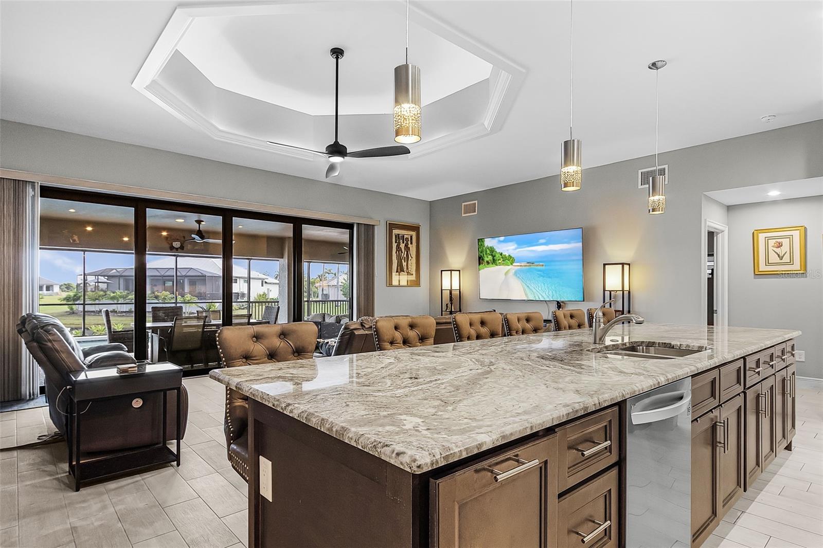 Venha experimentar esta piscina aquecida lindamente projetada para casa com uma cozinha ao ar livre com vista para um lago tranquilo - perfeito para desfrutar do pôr do sol tranquilo e entretenimento sem esforço. Esta propriedade à beira-mar apresenta exposição ao sul desejável, uma elevação estrutural elevada, entrada de automóveis, passarela e varanda da frente, todas complementadas por um teto de metal durável e janelas e controles deslizantes de impacto completo por toda parte. O hall de boas -vindas abre para uma espaçosa grande sala destacada por um teto de bandeja de 14 'com iluminação ambiente, criando um espaço convidativo para reuniões de família. A cozinha do chef é elegante e funcional, mostrando bancadas de granito de nível 4, armários de encerramento macio personalizados, uma ilha de grandes dimensões que acomoda seis ou mais e mais, aparelhos inteligentes premium, incluindo um alcance de propano com configurações de convecção, frite, assando e grelhado. A expansiva suíte do proprietário possui um teto de bandeja, paredes à prova de som para privacidade e impactar as portas francesas que levam diretamente à piscina. Armários duplos, incluindo um armário duplo personalizado, fornecem armazenamento abundante. O banho primário inspirado no spa oferece vaidades duplas, uma banheira jacuzzi com estrutura de azulejos personalizada, um chuveiro de vidro sem moldura com banco embutido e um armário de água privado. Dois quartos de hóspedes adicionais compartilham um banheiro elegante com uma combinação de banheira/chuveiro de grandes dimensões, enquanto um meio banho separado serve convenientemente como um banho de bilhar. Cada banheiro é nomeado com um bidê para o luxo adicional. Os destaques adicionais incluem ventiladores de teto personalizados, sistemas de armário de madeira sólida, uma sala de armazenamento controlada por temperatura privada com entrada codificada, gerador de espera Generac GP2200i, tanque de propano enterrado de 500 galões, conexões Ethernet por toda parte, conexões de lavadora/secadora e baixas taxas mensais de HOA. Viver em Burnt Store Lakes oferece acesso a 11 lagos panorâmicos e estocados em peixes, um grande parque comunitário, lançamento de canoa e caiaque e um píer de pesca-ideal para aqueles que amam a beleza natural da Flórida. Esta casa excepcional combina perfeitamente a elegância moderna, a conveniência de casa inteligente e o melhor da vida ao ar livre da Flórida.