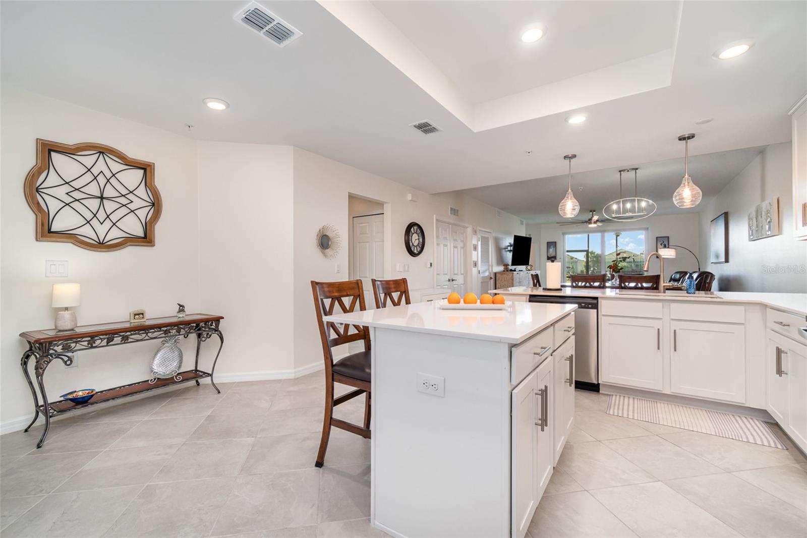 Esta unidade Arabella TWO CAR GARAGE lindamente decorada em Babcock National é a maior planta baixa de sua coleção, oferecendo um layout dividido espaçoso e cuidadosamente projetado que equilibra perfeitamente conforto e privacidade. Com quartos posicionados em lados opostos da casa, cada residente desfruta de um retiro pessoal e tranquilo. A partir do momento em que você entra, o acolhedor hall de entrada leva você a uma cozinha de tamanho generoso que flui perfeitamente para uma área de estar e jantar de conceito aberto, ideal tanto para a vida cotidiana quanto para entretenimento. Um pouco além, a área de estar se estende até uma linda varanda com vista para o buraco 11 do prestigiado campo de golfe Gordon Lewis. Com a sua exposição virada a poente, este oásis ao ar livre torna-se o cenário perfeito para desfrutar do pôr do sol deslumbrante e terminar cada dia com serenidade. Um escritório privativo fica próximo à área de estar principal, oferecendo espaço flexível para home office, sala de mídia ou acomodações adicionais para hóspedes. No interior, a casa foi atualizada com uma série de melhorias elegantes e funcionais. A porta da varanda possui persianas com filtro de luz em formato de favo de mel, facilmente controladas via controle remoto ou aplicativo de smartphone para maior comodidade e privacidade. O banheiro principal foi atualizado com uma elegante porta de box de vidro sem moldura, conferindo uma sensação moderna de spa. Ventiladores de teto de alta qualidade foram adicionados em toda a casa para garantir o conforto ideal, enquanto a pintura interna fresca e profissional dá a todo o espaço uma aparência limpa e polida. Além da casa em si, Babcock National oferece um estilo de vida excepcional. Com sua assinatura social, você obtém acesso a uma ampla variedade de comodidades em estilo resort, incluindo piscina estilo resort, piscina olímpica, academia de ginástica de última geração com aulas em grupo, saunas e vestiários. A vida ativa é ainda incentivada com quadras de bocha, pickleball e tênis disponíveis para os residentes. Após um dia de lazer, relaxe com um almoço descontraído no Watershed Grill ou saboreie uma noite elegante no recém-inaugurado restaurante Enclave. O Enclave oferece uma verdadeira experiência culinária, apresentando refeições gourmet com jantares preparados pelo chef, elaborados com os melhores ingredientes e complementados por uma seleção de coquetéis habilmente preparados. Esteja você com vontade de um lanche casual ou de uma noite refinada, as opções gastronômicas do Babcock National elevam todas as ocasiões. Esta comunidade vibrante também inclui três piscinas satélites e todas as comodidades do desenvolvimento mais amplo do Babcock Ranch, como piscinas comunitárias, parques, trilhas para caminhadas, um parque para cães, restaurantes e lojas locais - tudo a poucos minutos da sua porta. Combinando atualizações luxuosas, uma localização privilegiada no campo de golfe e acesso a uma abundância de atividades e comodidades, esta unidade Arabella oferece uma experiência de vida incomparável em uma das comunidades mais procuradas do sudoeste da Flórida.