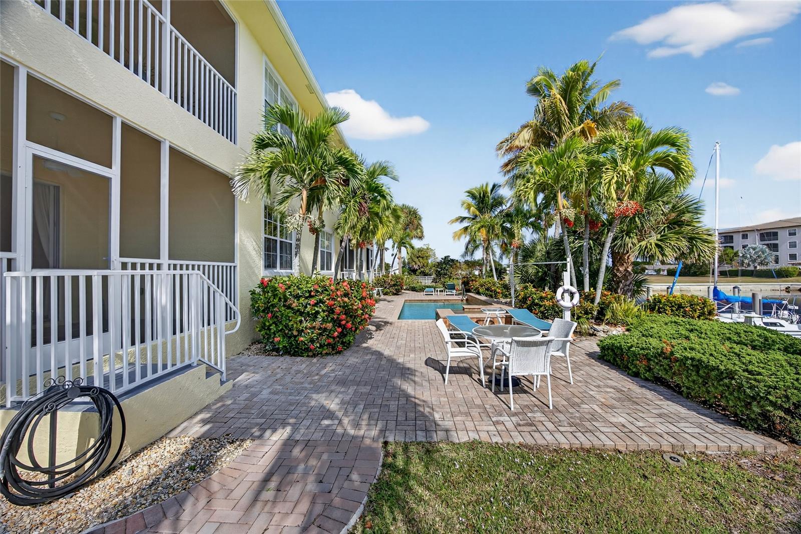 Provavelmente o condomínio com melhor preço da IGP! TRAGA OFERTAS! ACESSO À DOCA E A VELEIRO AO PORTO DE CHARLOTTE QUE LEVA AO GOLFO! Pronto para morar, 3 quartos, 2 banheiros, unidade final no 1º andar, condomínio à beira-mar com garagem individual para 1 carro. Este charmoso condomínio apresenta uma planta aberta com tetos altos, sancas, acabamentos de portas personalizados, decoração neutra, abundância de luz natural, grande controle deslizante para varanda e piso de cerâmica diagonal na área de estar principal. Cozinha espaçosa oferece bancadas de granito, eletrodomésticos de aço inoxidável, amplos armários para armazenamento e balcão de café da manhã para refeições casuais. A suíte principal oferece vista serena para o mar, teto duplo e banheiro privativo com pias duplas e box amplo. Dois quartos de hóspedes de bom tamanho, um com teto falso e banheiro completo separado, oferecem espaço para familiares ou convidados. Saia para a varanda coberta com tela e azulejos com vista deslumbrante para o canal amplo, além da verdadeira exposição oriental para desfrutar do incrível nascer do sol matinal. O deslizamento de barco com escritura oferece água e eletricidade e fica a uma curta caminhada da porta dos fundos. As características adicionais incluem lavanderia interna conveniente, janelas de impacto e porta deslizante e novo telhado em 2024. Complexo muito tranquilo com piscina comunitária e spa a poucos minutos da Vila dos Pescadores, do Yacht Club, belos parques, trilhas para caminhada e centro histórico de Punta Gorda com restaurantes finos, compras, eventos comunitários e entretenimento. Não perca esta oportunidade de fazer deste belo condomínio o seu próximo retiro para pássaros da neve ou residência permanente. Agende sua exibição privada hoje mesmo!