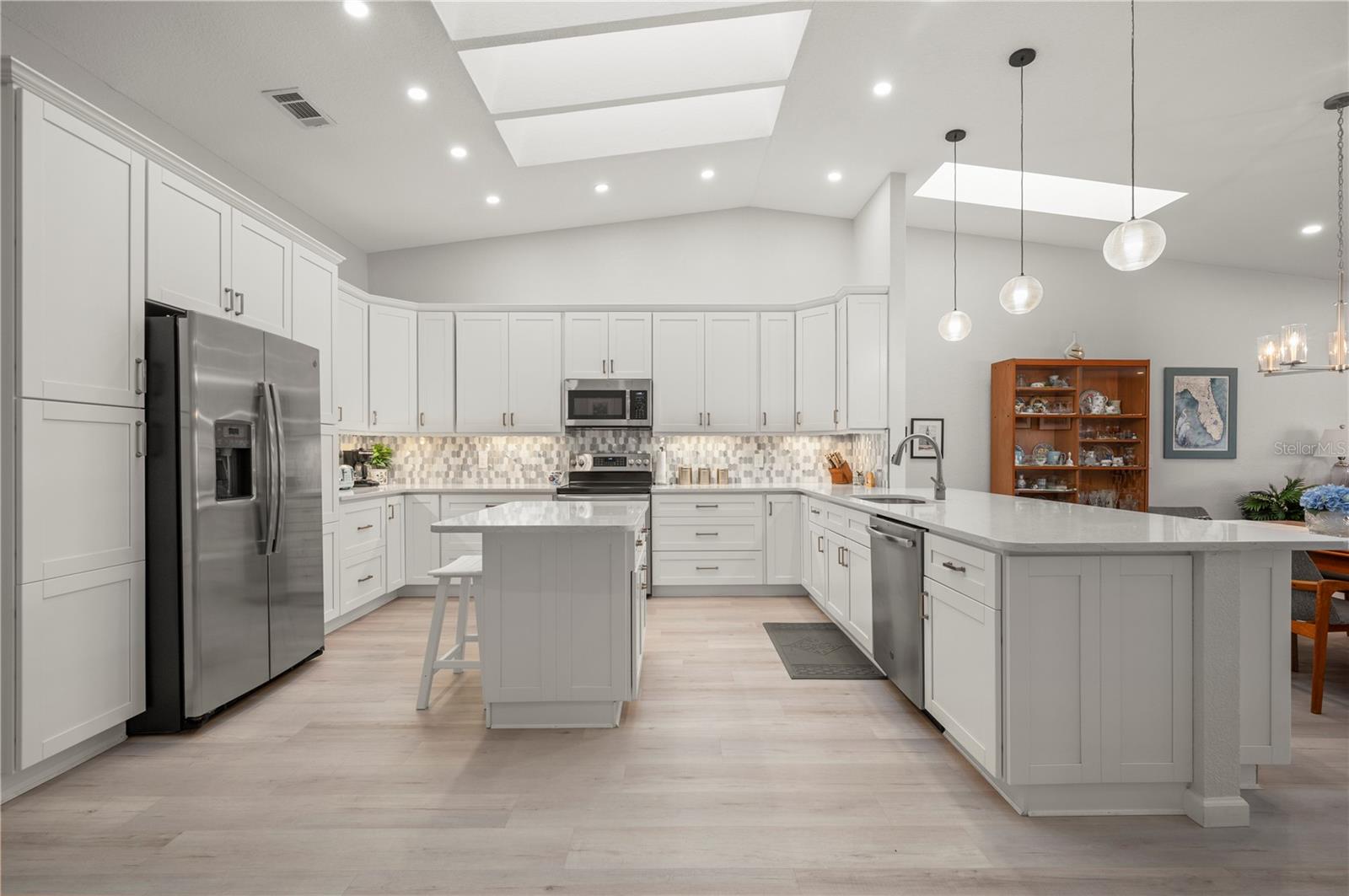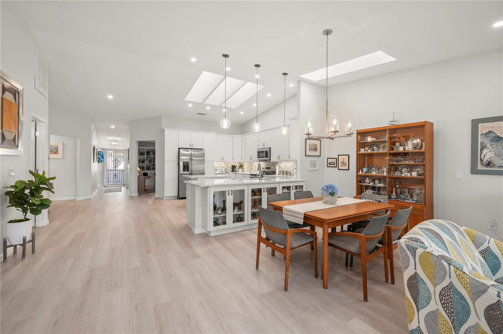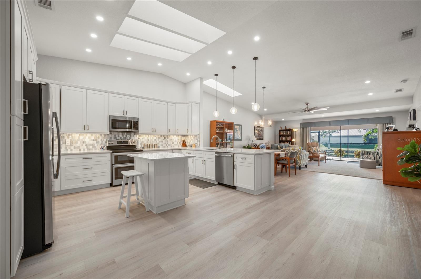 A elegância costeira combina perfeitamente com o conforto casual nesta casa Paradise Garden Villas requintadamente remodelada de 3 quartos e 2,5 banheiros em Punta Gorda Isles, uma das comunidades náuticas e de golfe mais procuradas do sudoeste da Flórida. Ao entrar por uma área de pátio privado, você será cativado pela ampla planta aberta e pelos tetos abobadados que atingem quase 3,6 metros de altura. Uma paleta de cores costeiras frescas combinada com piso laminado de tábuas estilo madeira flutuante aumentam ainda mais a amplitude desta planta baixa. Reprojetado com maestria para aumentar a abundância de espaço aberto e, ao mesmo tempo, capturar vistas frontais do lago, suas opções de entretenimento são ilimitadas. As cozinhas são um ponto focal e esta não irá decepcionar com sua atenção aos detalhes. Os armários estilo shaker oferecem muito espaço de armazenamento e são complementados com backsplashes decorativos de azulejos hexagonais com detalhes em metal, eletrodomésticos de aço inoxidável, balcões de quartzo requintados e uma ilha de preparação para exibir seus pratos culinários. Uma combinação de novas claraboias energeticamente eficientes, juntamente com iluminação suspensa embutida e decorativa, contribuem para os efeitos de iluminação dramáticos que mostram esta área focal. Seus convidados poderão desfrutar da espaçosa sala de estar que é servida por um bar com refrigerador de vinho e apresenta os mesmos detalhes decorativos da cozinha gourmet. As suítes oferecem um ambiente único, com a suíte principal abrindo para a área de varanda e capturando as vistas tranquilas do lago além. O banheiro principal foi luxuosamente remodelado e oferece uma maneira perfeita de relaxar no final do dia com um chuveiro amplo com detalhes em azulejos contrastantes e vários chuveiros, todos atrás de uma parede de vidro transparente. A pia dupla carrega a mesma paleta de cores encontrada na cozinha com seus armários estilo shaker, balcões de quartzo e acessórios e ferragens de estilo europeu. Essas mesmas atualizações de linha limpa foram realizadas no banheiro de hóspedes e no lavabo também, aumentando as acomodações luxuosas que seus convidados irão desfrutar. A suíte do segundo quarto de hóspedes, com sua mesa e vários armários embutidos, é ampla em tamanho e oferece opções multifuncionais, desde um quarto com espaço de escritório até uma sala de artesanato ou escritório. A Flórida é conhecida por suas atividades ao ar livre e encontros sociais que incluem churrascos e jantares noturnos, que você pode desfrutar em sua varanda privativa de 16'x35' com vista para um dos lagos privados da comunidade. Para os entusiastas de automóveis ou hobbyistas, a garagem de grandes dimensões de 22'x22' com piso epóxi antiderrapante é perfeita para desfrutar dos seus interesses especiais e ainda ter espaço suficiente para uma pequena oficina. Além de todas essas características e refinamentos, esta casa vem com um NOVO TELHADO DE METAL (2024), NOVAS CLARABÓIAS EFICIENTES ENERGÉTICAS (2024), PINTURA EXTERIOR (2024), AR CONDICIONADO MAIS NOVO (2020), AQUECEDOR DE ÁGUA MAIS NOVO (2019), eletrodomésticos mais recentes (2019), TUDO ALÉM DISSO E MAIS COMO PARTE DA RENOVAÇÃO COMPLETA (2019). ALÉM DISSO, NÃO HOUVE INUNDAÇÕES OU DANOS DE FURACÃO DAS TEMPESTADES RECENTES. Desfrute dos históricos parques à beira-mar, restaurantes, lojas de Punta Gorda, da famosa Vila dos Pescadores, dos mercados agrícolas durante todo o ano e do campo de golfe St. Andrews South, do outro lado da rua, com uma associação incomparável. Esta é a sua oportunidade, pois o Paradise Garden Villas é uma comunidade muito social, e esta casa é mais do que um local de espetáculos, é um local onde se criam memórias.