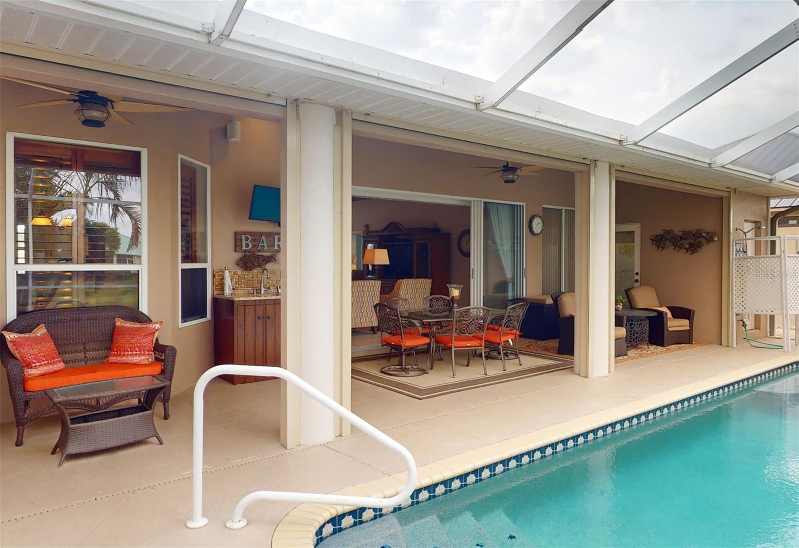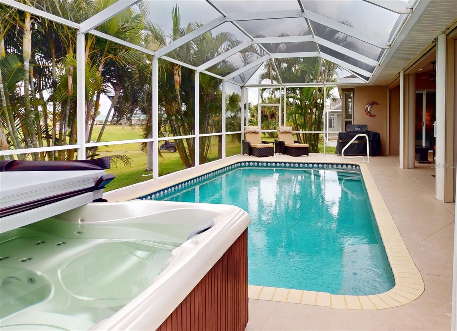 Bem-vindo à Rua Suzi 1600, nas belas ilhas de Punta Gorda. CASA PERSONALIZADA COM PISCINA DE ÁGUA SALGADA COM VISTA PARA O CAMPO DE GOLFE! Comece sua vida no paraíso com esta casa de escritório personalizada de 3 quartos/2 1/2 banheiros no IGP com vista para o 4º fairway do campo de golfe St Andrew's South. Entre pela passarela de pavimentação para uma sala espaçosa e grande e portas de vidro deslizantes que desaparecem que levam à varanda. A grande suíte master tem acesso direto à varanda, dois closets e um banheiro master tipo spa com pias duplas, WC privativo, armário de roupa de cama, banheira de jardim e chuveiro com box de vidro. A planta dos quartos divididos oferece quartos grandes que compartilham um banheiro de hóspedes. Houve muitas novas atualizações, começando com um novo telhado de metal em 2024 e a substituição do HVAC. Além disso, a piscina foi recapeada em 2018 por décadas de diversão na piscina. Persianas elétricas Storm Smart para toda a Lanai, junto com persianas elétricas para portas deslizantes de grandes salas. Sente-se também na frente e desfrute de sua própria cachoeira e lago de carpas com paisagismo maduro