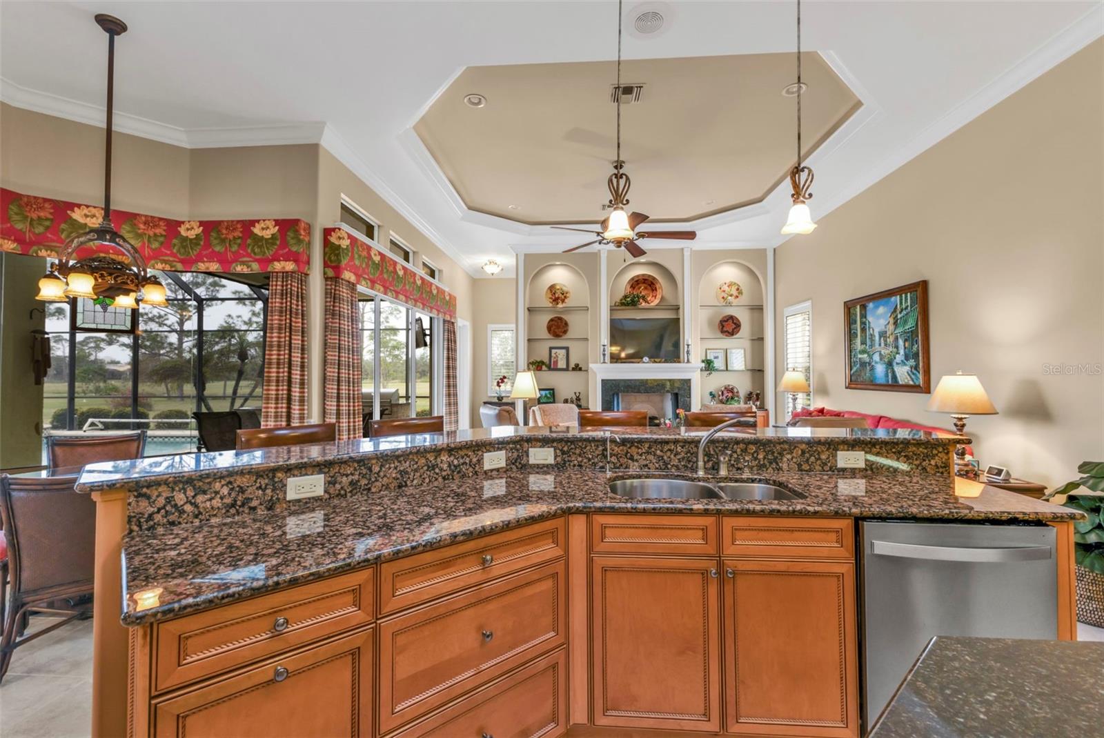 Bem-vindo à casa dos seus sonhos, onde a elegância encontra a praticidade! Situada na serena comunidade de Burnt Store Marina, esta casa "independente" construída sob medida oferece uma mistura harmoniosa de luxo e conforto. Com impressionantes 3.244 pés quadrados de área residencial refinada e uma garagem para três carros, esta propriedade atende a um estilo de vida de facilidade sofisticada. Ao passar pela porta da frente, você é recebido por uma GRANDE entrada que o leva perfeitamente a um mundo de acabamentos de alta qualidade com atenção meticulosa aos detalhes. Com três quartos espaçosos, um escritório/escritório enorme e 2,5 banheiros luxuosos, há amplo espaço para descanso e rejuvenescimento. O quarto principal serviu como um retiro, completo com seu próprio banheiro tipo spa e um enorme closet. O coração da casa, a cozinha, é o paraíso dos chefs, equipado com eletrodomésticos de primeira linha e um sistema de água quente reciclada que garante que você nunca tenha que esperar pela água quente - ela também está no banheiro principal. A cozinha abre-se para a sala de estar, adornada com uma lareira eléctrica, onde o calor e o conforto se reúnem em torno de chamas crepitantes. Quer se trate de um café da manhã casual na sala de jantar ou de um jantar festivo, este espaço lida com isso com graça. Aventure-se no seu santuário externo privado, com uma cozinha externa personalizada e recentemente remodelada. Aqui, todo fim de semana promete uma experiência gastronômica ao ar livre imbatível. A piscina e spa em estilo resort oferecem um refúgio refrescante ou o local perfeito para reuniões sociais. Com vista para um exuberante quintal com uma vista bem cuidada que se estende até o campo de golfe e um riacho pitoresco, o relaxamento está a apenas um olhar de distância. Somando-se à praticidade, há uma infinidade de comodidades, incluindo um sistema de aspiração central, sancas que adicionam o toque certo de grandeza e tetos com quatro bandejas iluminadas. O home office é uma obra-prima com sistema de armários/mesa embutidos e teto em caixotões - este pode ser o seu cômodo favorito! Em meio a todo esse luxo, a eficiência não foi esquecida. As novas unidades de ar condicionado, juntamente com o novo telhado, mantêm o calor da Flórida sob controle, enquanto os tubos solares estrategicamente posicionados garantem que sua casa esteja sempre banhada por luz natural.