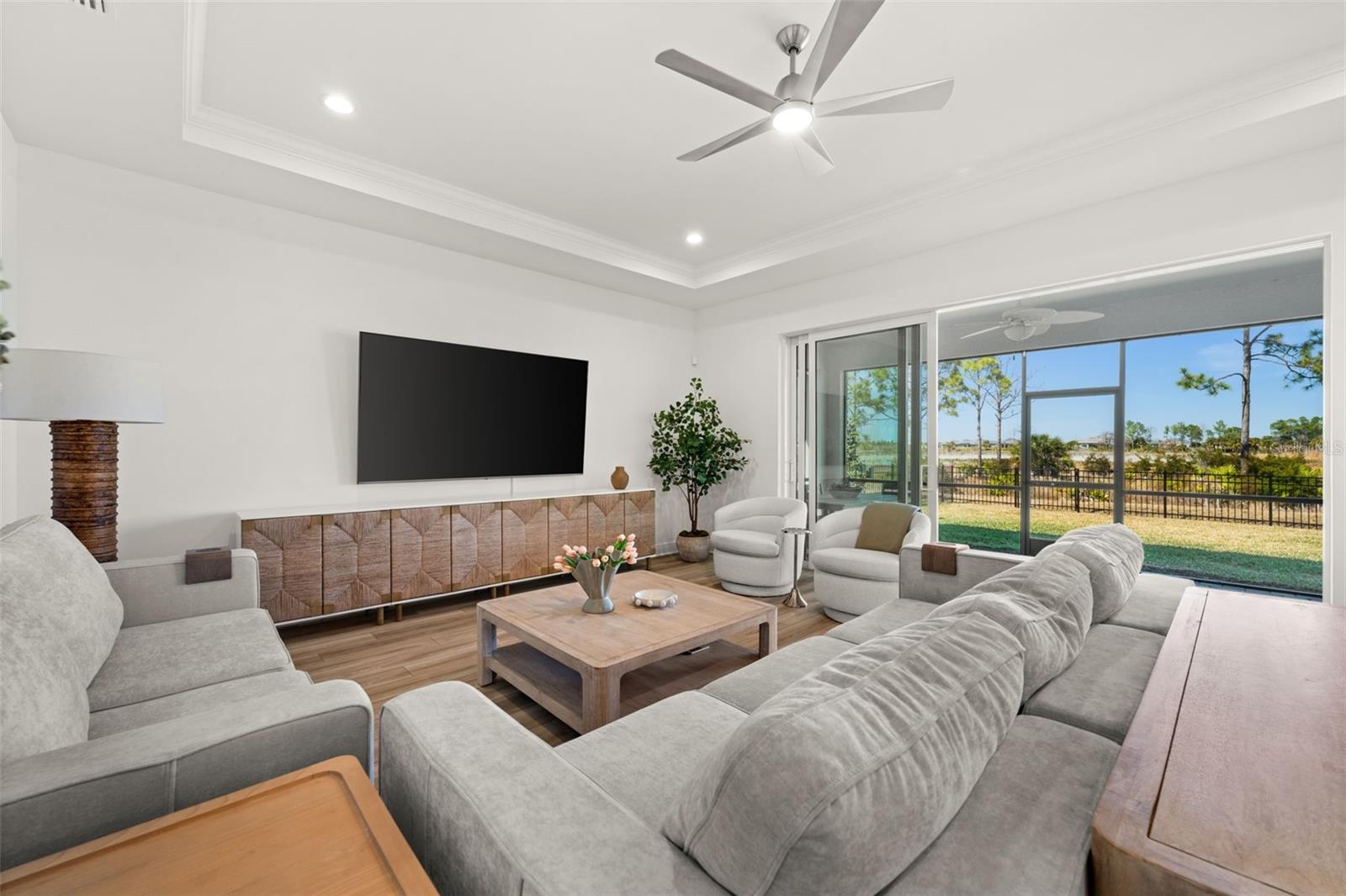 Bem-vindo a esta casa lindamente decorada localizada no procurado bairro Sanctuary de Babcock Ranch. Esta residência cuidadosamente projetada oferece 3 quartos mais uma sala, 2,5 banheiros e uma garagem para 3 carros, combinando acabamentos de luxo com o conforto moderno do dia a dia. Oferecida totalmente pronta para uso, a casa apresenta belos móveis que elevam o espaço ao mesmo tempo que permanecem convidativos e funcionais. A cozinha gourmet apresenta acabamentos de qualidade como bancada de quartzo e forno de parede. O layout aberto é perfeito tanto para entretenimento quanto para a vida diária, e é complementado por atualizações em toda a casa que refletem o orgulho de propriedade. Desfrute de uma vida interna e externa perfeita com portas de vidro deslizantes de 8', uma varanda com tela com vista para um grande quintal cercado e vistas tranquilas da reserva, criando um retiro privado ideal para relaxar ou receber hóspedes. A suíte principal é um oásis tranquilo escondido na parte de trás da casa, enquanto 2 quartos adicionais e um escritório na frente da casa oferecem uma boa separação do espaço de estar para hóspedes e trabalhadores remotos. Localizado na primeira cidade movida a energia solar da América, os moradores do Babcock Ranch desfrutam de acesso a comodidades em estilo resort, quilômetros de trilhas, lagos, restaurantes e eventos comunitários vibrantes – tudo isso ao mesmo tempo em que adotam um estilo de vida moderno e sustentável. O Santuário oferece sua própria piscina privativa, playgrounds e quadras de pickleball (em breve!). Esta é uma rara oportunidade de possuir uma casa pronta para uso de inspiração luxuosa a um preço acessível em um dos condomínios fechados mais desejáveis do Babcock Ranch.