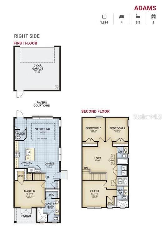 O Adams é uma planta baixa espaçosa e de conceito aberto que oferece uma suíte primária no primeiro andar com um banheiro grande com pias duplas, um chuveiro grande e armários grandes. A cozinha, a sala de jantar e a sala de reuniões têm vista para o seu pátio pessoal, que leva à garagem individual para dois carros na entrada traseira. A área do loft oferece um espaço extra para brincar ou receber convidados. Ao redor do loft há uma espaçosa lavanderia, 2 quartos com banheiro completo compartilhado e uma Suíte Junior com banheiro completo e closet! Estas imagens são apenas para fins ilustrativos e podem não representar as especificações ou detalhes exatos da casa real disponível para venda.
