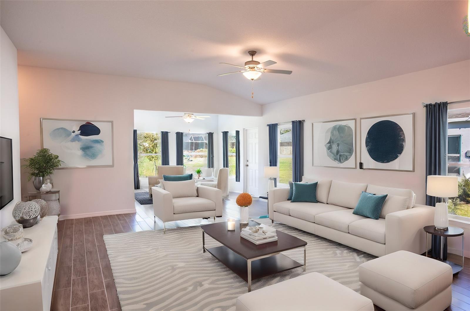 ***Nova construção, não espere, mude pronto!*** Eleve seu estilo de vida com a opulência da planta Sanibel II apresentada pela Carpenter Homes - uma obra-prima da Florida Living Series, certificada pela Florida Green Building Coalition (FGBC) . Esta residência térrea possui 4 quartos e 2 banheiros completos! Ao entrar, uma bela cozinha lhe dá as boas-vindas, com uma ilha ampla e de grandes dimensões que flui perfeitamente para a área de estar e de jantar, a elegância dos armários de 36 "de fechamento suave e as bancadas de quartzo Blanco Matrix atualizadas. Backsplash de cozinha de azulejos de metrô 3x6 imaculado do SoHo. Um pacote de encanamento atualizado com uma torneira de cozinha de aço inoxidável resistente a manchas Moen Sleek e um triturador de lixo Equipado com eletrodomésticos elegantes de aço inoxidável com eficiência energética. teto abobadado que revela um espaçoso quarto Florida, criando um refúgio interno e externo. Além disso, a Carpenter Homes oferece um pacote de iluminação de níquel escovado atualizado, incluindo pingentes sobre a ilha da cozinha e luminárias em ambos os banheiros, acentuando maravilhosamente o design geral da iluminação. completo com acabamento em estanho escovado em cada quarto, bem como na grande sala para ajudar a circular o fluxo de ar e mantê-lo fresco no clima da Flórida. Complementando a ampla área de estar está a prancha de cerâmica Glen Arbor 6x26. piso. A suíte do proprietário é um santuário de indulgência, apresentando pias duplas, paredes brancas Magnisi 8x12 impecavelmente revestidas no chuveiro e um closet de tamanho generoso. A casa possui paredes de azulejos brancos Magnisi 8x12 atualizadas na segunda banheira/chuveiro, uma penteadeira de quartzo Blanco Matrix e torneiras cromadas Moen Genta LX e kits de acabamento para chuveiro/banheira. A amplitude desta casa continua com uma despensa e adições de última geração, como isolamento R-4.1 com eficiência energética em paredes externas de concreto, tubos Taexx para controle de pragas e venezianas de tecido para todas as janelas. O quintal meticulosamente paisagístico é complementado por um sistema de irrigação de última geração com sensor de chuva para ajudar a maximizar a eficiência. A ampla garagem para 3 carros, completa com dois controles remotos e quatro controles remotos, não só oferece amplo espaço para as suas necessidades diárias, mas também garante a máxima comodidade e versatilidade para todas as suas necessidades de armazenamento e estacionamento. Entre em um mundo onde a extravagância encontra uma vida ecologicamente consciente: sua casa luxuosa o aguarda, um testemunho da elegância atemporal e da sustentabilidade moderna. Disponível para visualização a qualquer momento.