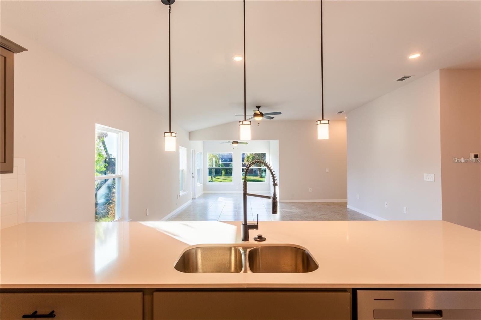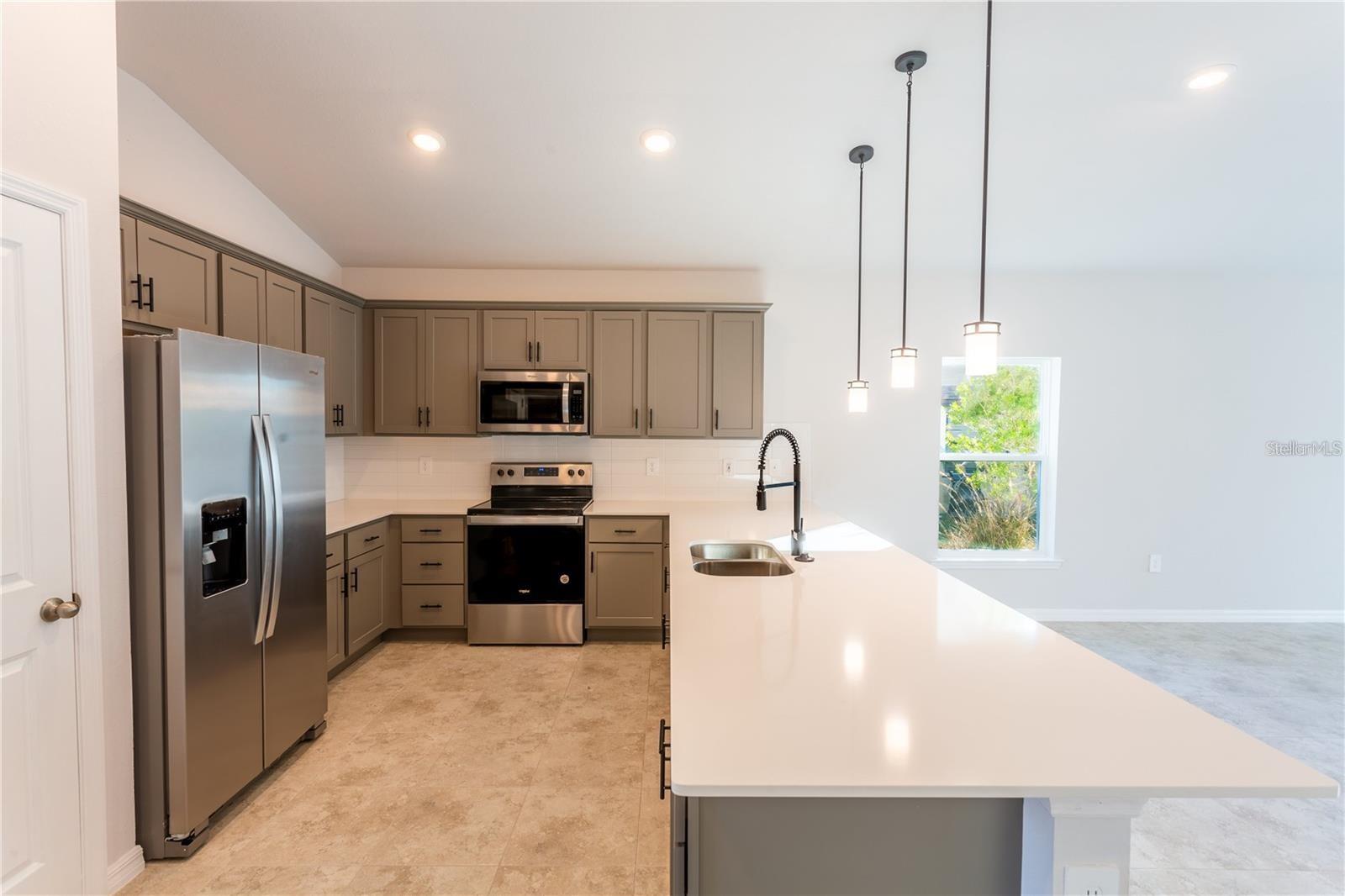 Venda a descoberto. ***NOVA CONSTRUÇÃO, NÃO ESPERE, MOVA-SE PRONTO!*** Eleve seu estilo de vida com a opulência da planta baixa Sanibel II apresentada pela Carpenter Homes - uma obra-prima da Florida Living Series, certificada pela Florida Green Building Coalition (FGBC). Esta casa dispõe de 4 quartos e 2 banheiros completos. Esta casa dos sonhos foi projetada e construída para mergulhar você no luxo! Ao entrar, uma bela cozinha lhe dá as boas-vindas, com um amplo bar que flui perfeitamente para a área de estar e de jantar. A elegância dos armários de ardósia pintada de 36 "de fechamento suave, backsplash de ladrilho de metrô SoHo Canvas White 4x16 e bancadas de quartzo Miami White atualizadas adicionam um toque funcional de luxo à cozinha. As atualizações de cozinha incluem uma torneira de cozinha preta fosca Moen Align, triturador de lixo e eletrodomésticos elegantes de aço inoxidável com eficiência energética. Esta casa exala sofisticação com um teto abobadado que revela um espaçoso quarto Florida, criando um refúgio interno e externo. Além disso, Carpenter Homes oferece um pacote de iluminação em preto fosco atualizado, incluindo pingentes sobre a barra da cozinha e luminárias em ambos os banheiros, acentuando o design de iluminação geral com acabamento em preto fosco em cada quarto, bem como na grande sala, ajuda a circular o fluxo de ar e mantê-lo fresco no clima da Flórida. A suíte do proprietário é um santuário de indulgência, apresentando pias duplas, paredes impecavelmente revestidas de Magnisi Silver 8x12 no chuveiro e um closet de tamanho generoso. A casa possui paredes de azulejos Magnisi Silver 8x12 atualizadas na segunda banheira/chuveiro, um tampo de quartzo Miami White e torneiras pretas foscas Moen Align e kits de acabamento para chuveiro/banheira. A amplitude desta casa continua com uma despensa e acréscimos como isolamento R-4.1 com eficiência energética em paredes externas de concreto, tubos Taexx para controle de pragas e venezianas de tecido para todas as janelas. O jardim paisagístico amigável da Flórida é complementado por um sistema de irrigação com sensor de chuva para ajudar a maximizar a eficiência.
