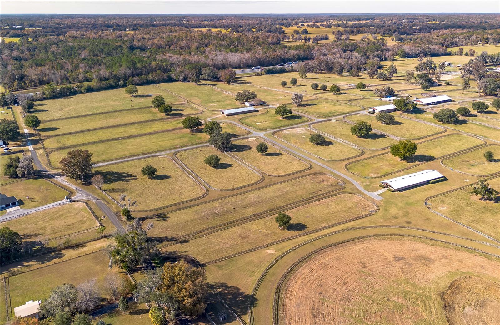 Sonha em levar a sua aventura equestre para o próximo nível? Bem-vindo a esta extraordinária fazenda de 100 acres, onde a infraestrutura pronta para uso encontra a vida tranquila no campo! Situada a uma curta distância de carro do HITS e do Centro Equestre Mundial (WEC) e a poucos minutos de Ocala e I-75, esta propriedade está perfeitamente posicionada para aproveitar tudo o que Ocala tem a oferecer. A propriedade possui várias entradas fechadas, cada uma seguindo uma entrada pavimentada que continua por toda a propriedade para garantir acesso tranquilo a todas as partes da fazenda. Pastagens verdejantes e piquetes se estendem em todas as direções, cada um cuidadosamente projetado para incluir seus próprios carvalhos maduros para a sombra necessária. Cinco celeiros de alta qualidade estão instalados na fazenda, oferecendo atualmente um total de 64 baias combinadas, incluindo um celeiro menor com 7 baias que seria ideal para garanhões ou partos. Uma pista de galope de grama é ideal para condicionamento durante todo o ano, e a fazenda também inclui eurocizer, curral redondo e amplo espaço aberto para treinar. Esta quinta foi concebida tendo em mente operações equestres sérias do início ao fim. As residências incluem uma casa principal aconchegante e acolhedora em forma de A com tetos abobadados, lareira de pedra e espaços de reunião iluminados pelo sol. A cozinha aberta flui facilmente para as áreas de estar e jantar, enquanto a suíte principal no andar principal proporciona privacidade e retiro. Um prédio de escritórios separado oferece suporte às operações comerciais, e uma casa móvel de largura dupla serve como residência do gerente no local, completando o layout cuidadoso da propriedade. Esteja você lançando uma operação de treinamento, expandindo um negócio equino existente ou procurando um refúgio privado com infraestrutura incomparável, esta propriedade é uma oportunidade rara em uma das regiões equestres mais prestigiadas da Flórida. Opções de áreas menores podem estar disponíveis – entre em contato com o agente da lista para obter detalhes.