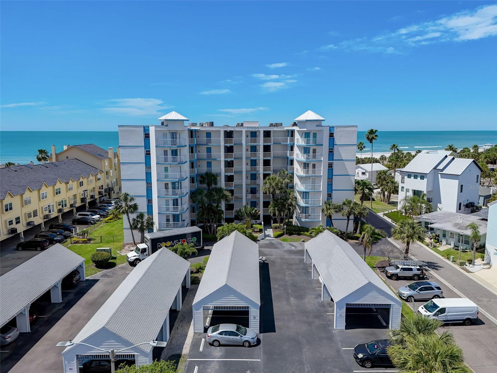 Bem-vindo ao seu pedaço do paraíso em Redington Shores! Este deslumbrante condomínio de 2 quartos e 2 banheiros à beira do Golfo em Lighthouse Point oferece vistas deslumbrantes do Golfo de todos os ângulos. Saia para a varanda privada e descubra a conveniência de uma escada em espiral que leva diretamente à piscina comunitária e ao acesso à praia, garantindo o prazer do sol, da areia e do surf sem esforço. Localizado a poucos quarteirões do Johns Pass em Madeira Beach, este condomínio oferece a combinação perfeita de tranquilidade e entretenimento. Passe os seus dias relaxando à beira da piscina ou explorando as inúmeras lojas e restaurantes a uma curta distância. Quer você esteja em busca de relaxamento ou aventura, este condomínio oferece o retiro ideal. No interior, você encontrará uma área espaçosa e bem decorada, perfeita para receber ou simplesmente relaxar após um dia na praia. A cozinha possui eletrodomésticos modernos e bancada de aço inoxidável, facilitando o preparo e a limpeza das refeições. Cada quarto oferece conforto e privacidade, garantindo uma noite de sono tranquila. Não perca a oportunidade de possuir um pedaço do paraíso em Redington Shores. Agende hoje mesmo sua exibição e comece a viver a vida na praia que você sempre sonhou! Por favor, pergunte ao Agente sobre o forte histórico de aluguel da unidade!