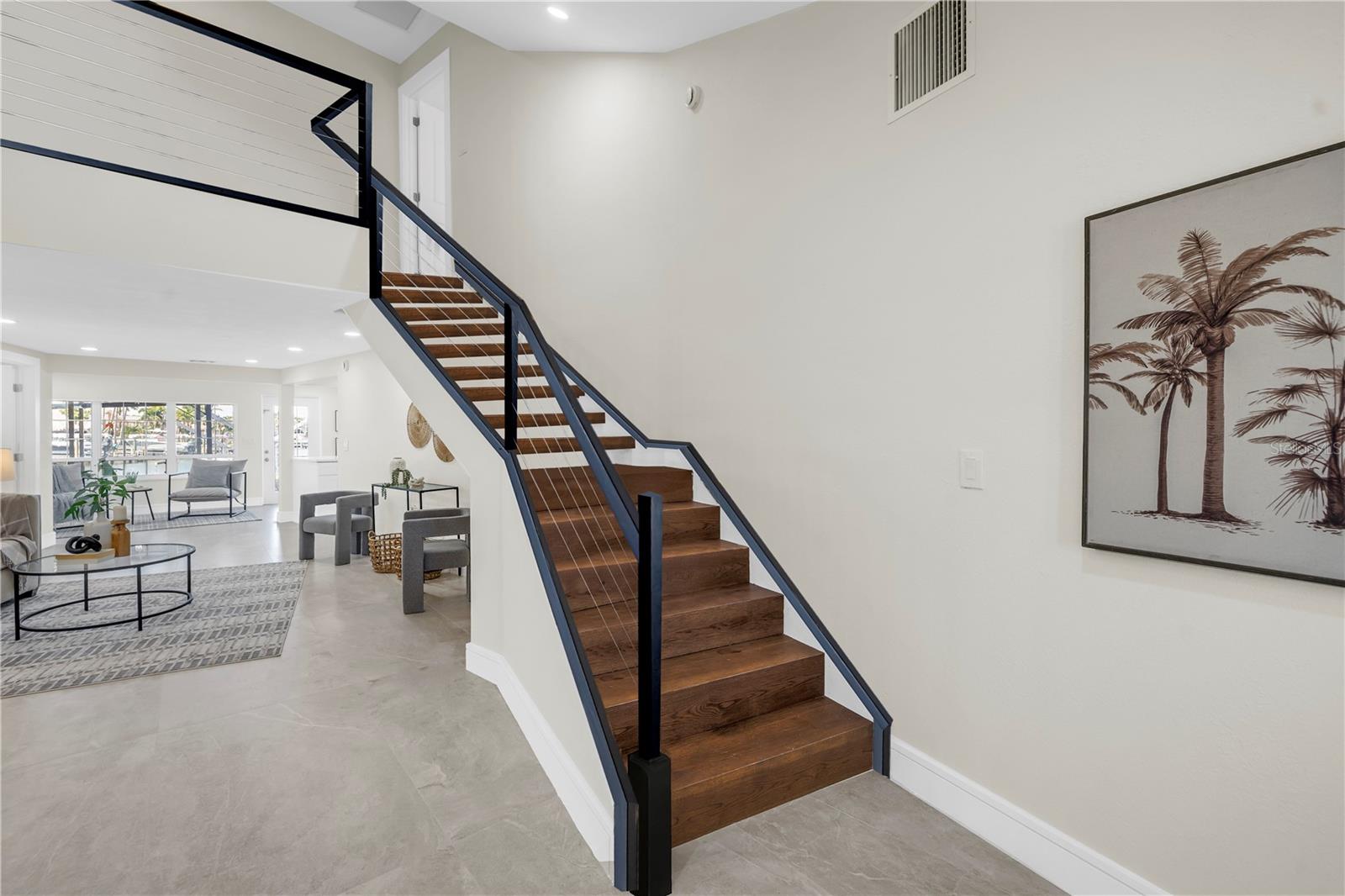 Uma ou mais fotos foram virtualmente encenadas. Esta casa também está disponível para locação! Bem-vindo ao seu elegante retiro costeiro - uma casa à beira-mar lindamente atualizada com 4 quartos e 4 banheiros em um cobiçado terreno de esquina, a apenas uma curta caminhada ou passeio de bicicleta até a costa arenosa de Redington Beach. A partir do momento de sua chegada, a entrada circular e o paisagismo bem cuidado dão o tom para esta residência de luxo. No interior, você encontrará acabamentos de alta qualidade, incluindo bancadas de mármore totalmente novas, eletrodomésticos de última geração e espaços de estar cuidadosamente projetados que apresentam vistas panorâmicas do mar. O nível principal oferece uma sala de estar iluminada, uma sala de jantar formal e uma área de estar versátil ao lado da cozinha gourmet com assentos de bar – ideal para refeições casuais ou entretenimento. Dois quartos e duas casas de banho (incluindo uma privativa) completam o primeiro andar. Uma grande lavanderia com pia e armazenamento acrescenta comodidade ao dia a dia. No andar de cima, dois quartos adicionais com banheiro privativo o aguardam. A ampla suíte do proprietário é um verdadeiro retiro com closets duplos, pias duplas, chuveiro com efeito de chuva, banheira de imersão com vista para a água e acesso à varanda privativa - também compartilhada com a segunda suíte no andar de cima - perfeita para o café da manhã ou vista para o pôr do sol. Ao ar livre, aproveite o melhor da vida à beira-mar com seu cais privativo para passeios de barco, uma churrasqueira coberta para entretenimento e vários espaços para relaxar e mergulhar no estilo de vida costeiro. As fotos dos corrimãos das escadas foram renderizadas virtualmente com um design elegante e moderno. A pedido do comprador, o vendedor instalará uma grade semelhante atualizada antes do fechamento. Cada detalhe desta residência reflete o luxo costeiro, pronta para morar para seu próximo proprietário.
