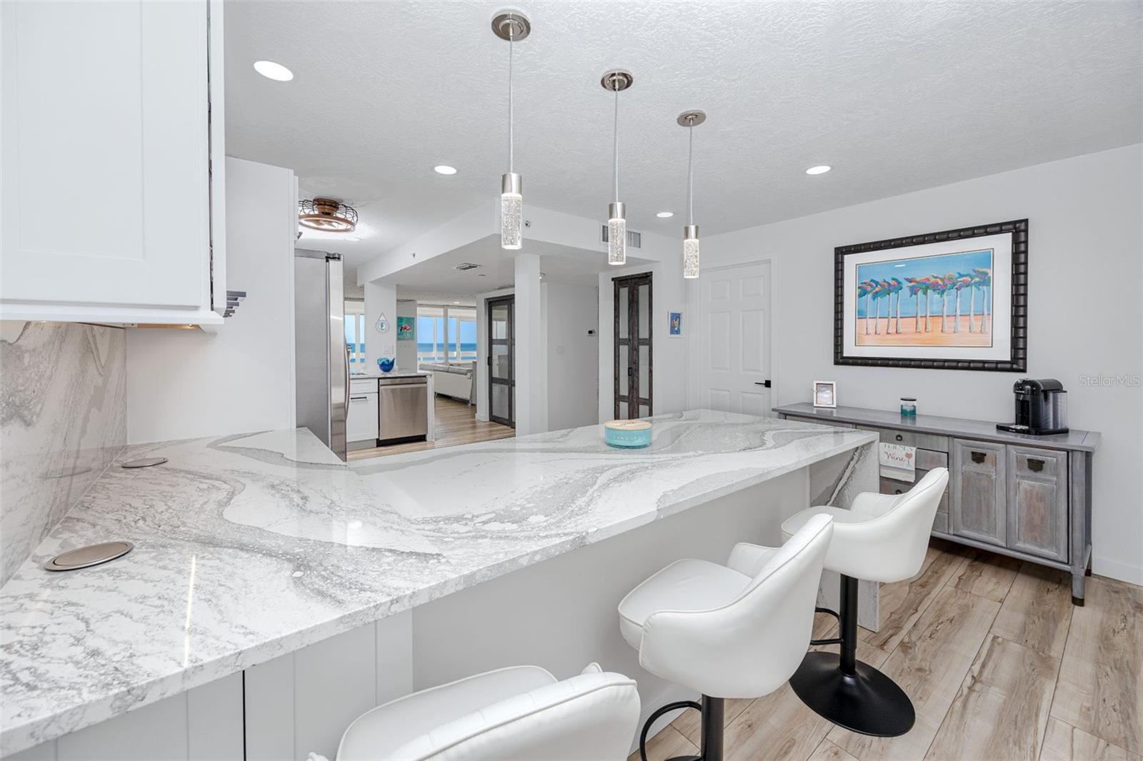 Se você estava esperando por aquele condomínio perfeito e raramente disponível de 3 quartos e 2 banheiros na UNIDADE DE CANTO FINAL à beira-mar, com varanda envolvente e vista direta para o Golfo da América, esse dia chegou! O nascer e o pôr do sol são abundantes em aprox. Varanda de 350 pés quadrados com vista direta para a praia. A entrada frontal do condomínio oferece outra varanda privada com 123 pés quadrados para vistas da Baía de Boca Ciega e do belo horizonte das cidades próximas. Aqui você obtém o melhor dos dois mundos com vistas diretas à beira-mar e intracoastal. Todas as varandas possuem venezianas que também ajudam a manter o condomínio fresco nos dias quentes de verão. Os proprietários renovaram extensivamente os tetos das unidades até os pisos. A cozinha muito grande oferece não 1, mas 2 ilhas de altura de balcão com espaço suficiente para 6 pessoas. Balcões de quartzo com backsplash de quartzo correspondente e o altamente desejado recurso de cascata e saídas pop-up. Todos os armários inferiores possuem gavetas extraíveis com soft close, iluminação sob o armário, 2 armários de despensa e iluminação embutida. Todos os 3 quartos são de bom tamanho, iluminação embutida em toda a casa, sprinklers mais novos (2023), Ethernet CAT 5e, sala de jantar e sala de estar em tamanho grande, todos os pisos combinam com LVP em toda a casa, vista para o mar em todos os cômodos, exceto banheiros. O 16º andar possui apenas outras 3 unidades. Existe até uma unidade de armazenamento de 4,5' x 5' para suas cadeiras de praia, guarda-sóis, decorações de Natal, etc., localizada no nível da garagem, facilitando a manutenção da areia fora do condomínio. Este condomínio oferece segurança vigiada e fechada 24 horas por dia, 7 dias por semana, estacionamento para visitantes, bicicletários na garagem, piscina com temperatura controlada. O Beach Clubhouse está passando por reformas que incluem sala de bilhar, academia, salão de festas, sala de jogos e biblioteca. O Edifício 3 encontra-se em fase de pintura exterior caso se observem andaimes em diversas zonas. Todos os tamanhos dos quartos são aproximados e devem ser verificados pelo comprador.