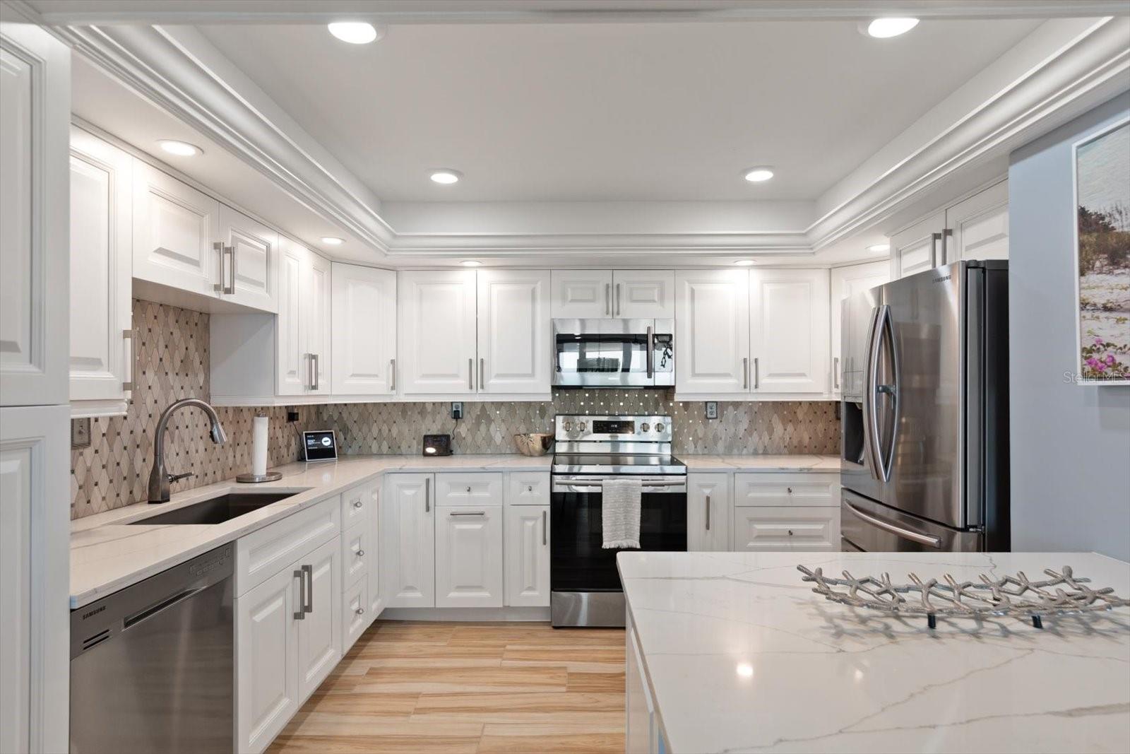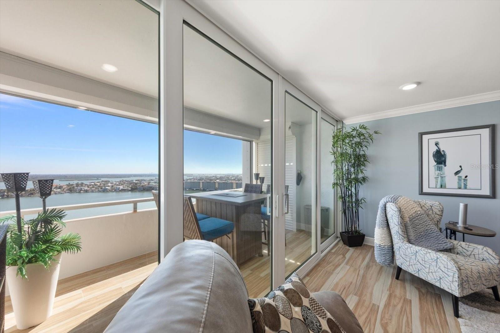 AMPLAS VISTAS ABERTAS PARA O MAR a partir do 19º andar do edifício mais alto de Redington Shores. Da sua confortável varanda pode-se ver todo o caminho até o centro de St Pete. Recentemente remodelado sem nenhum detalhe poupado. Cozinha nova com armários soft close, despensa e eletrodomésticos em inox. Balcões de granito fluem para um elegante backsplash de meados do século. Armário inferior com iluminação suave e iluminação da bandeja superior. Assentos de cozinha para dois com amplo espaço atrás para uma mesa de seis. Vistas amplas a partir de portas e janelas telescópicas de vidro deslizantes com classificação de furacão. Varanda coberta com estores eléctricos. Áreas comuns completas com piso cerâmico, rodapés atualizados e iluminação embutida. Moldagem de coroa por toda parte. Cada interruptor e tomada foram substituídos por tampas e tampas de metal exclusivas. Ambos os banheiros foram modernizados para incluir embutidos personalizados, azulejos exclusivos, penteadeiras e iluminação de bandeja. Do carpete macio no quarto principal de grandes dimensões até um banheiro moderno com porta de celeiro, pias duplas e closet, todos meticulosos. Persianas brancas em ambos os quartos cobrem janelas com proteção contra furacões. Vendido como decorador totalmente mobiliado até a foto pessoal longitudinalmente sobre o sofá do antigo Redington Shores Long Pier. Redington Towers oferece uma piscina aquecida à beira-mar com 600 pés de fachada em terreno fechado. Do outro lado da rua do Parque Natural Del Bello, com cais de pesca, amarração para barcos e áreas de piquenique cobertas. A poucos quarteirões da quadra de tênis e pickleball de Redington Shores, com uma pequena doca atrás. A cidade de Redington Shores oferece alguns dos frutos do mar mais frescos da região e restaurantes à beira-mar. Vale a pena visitar!